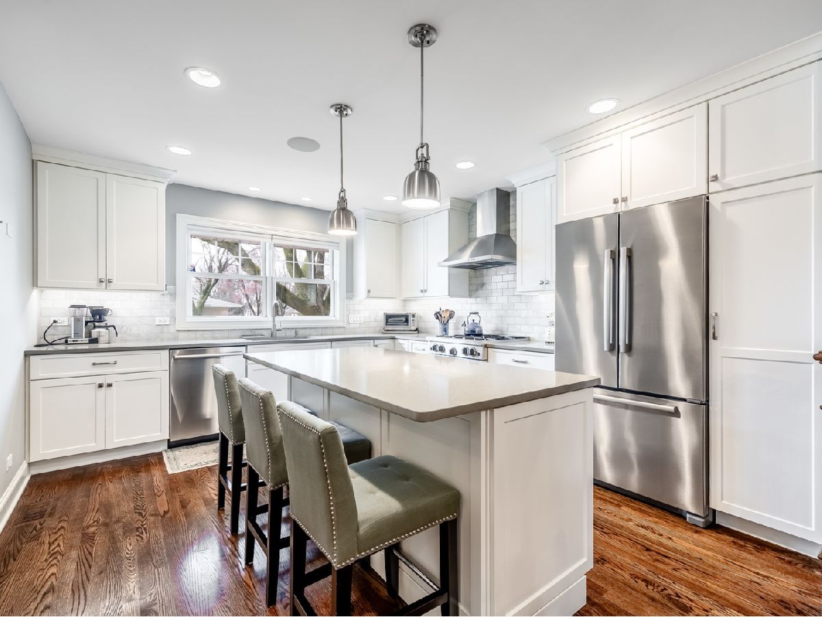 Prepare to fall in LOVE with the luxury and sophistication of this all brick ranch located in the HANA district. This completely custom, rehabbed (2015) home showcases nearly 2300 sq feet of finished spaces, STARRING gorgeous white kitchen with stainless appliances and quartz counters, marble subway tile, hardwood floors throughout, tray ceilings, primary en suite bathroom with heated floor and walk in closet, an expansive living room with stately fireplace, an additional powder room, and first floor laundry. Lowel level features wet bar complete with beverage fridge, generous finished space and equally bountiful storage room. Backyard oasis is graced with expansive paved patio, fully fenced yard and manicured, professionally designed landscaping. This truly single level living home was spared no expense and the impeccable attention to quality and craftmanship is evident throughout. Located within Olive/Thomas/Hersey boundaries and moments from downtown. You could be enjoying al fresco dining, an award winning public library, quick access to Metra, and one house down from a front row to the parade route this summer!