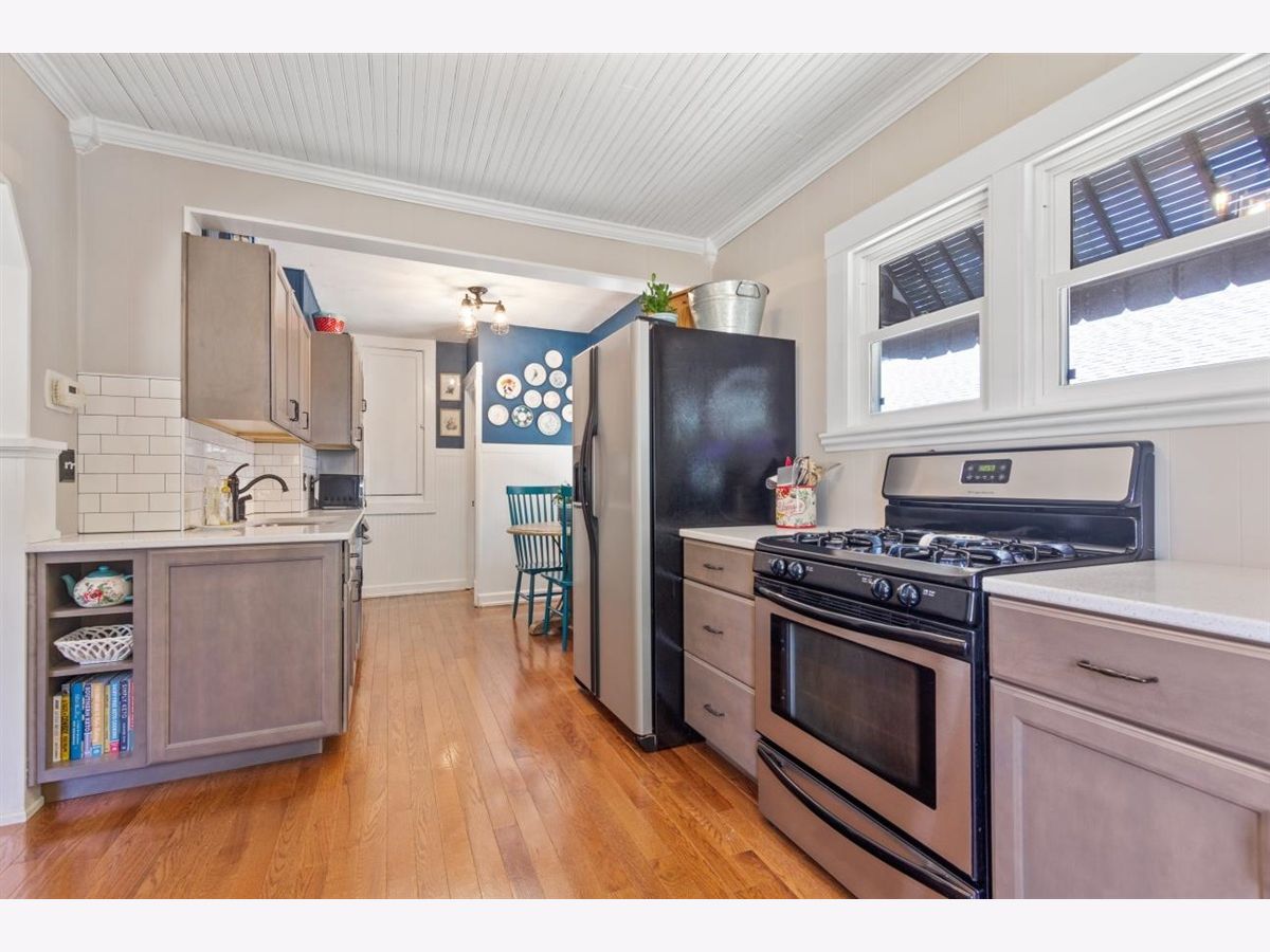 A great 2 bedroom 1.5 bath home. Beautiful oak hardwood floors throughout living room, dining area, and both bedrooms. 2017 - new windows on the main floor and the Kitchen remodeled with quartz counters and soft close hardware on great cabinets! There is plenty of counter space and an eat in kitchen. 2016 - bathroom remodeled! The basement has a half bath with 2 extra bonus rooms. Large backyard with 1-car detached garage. Roof replaced in 2010. Sit and relax on a covered porch. Don't wait to tour or you might miss this home!