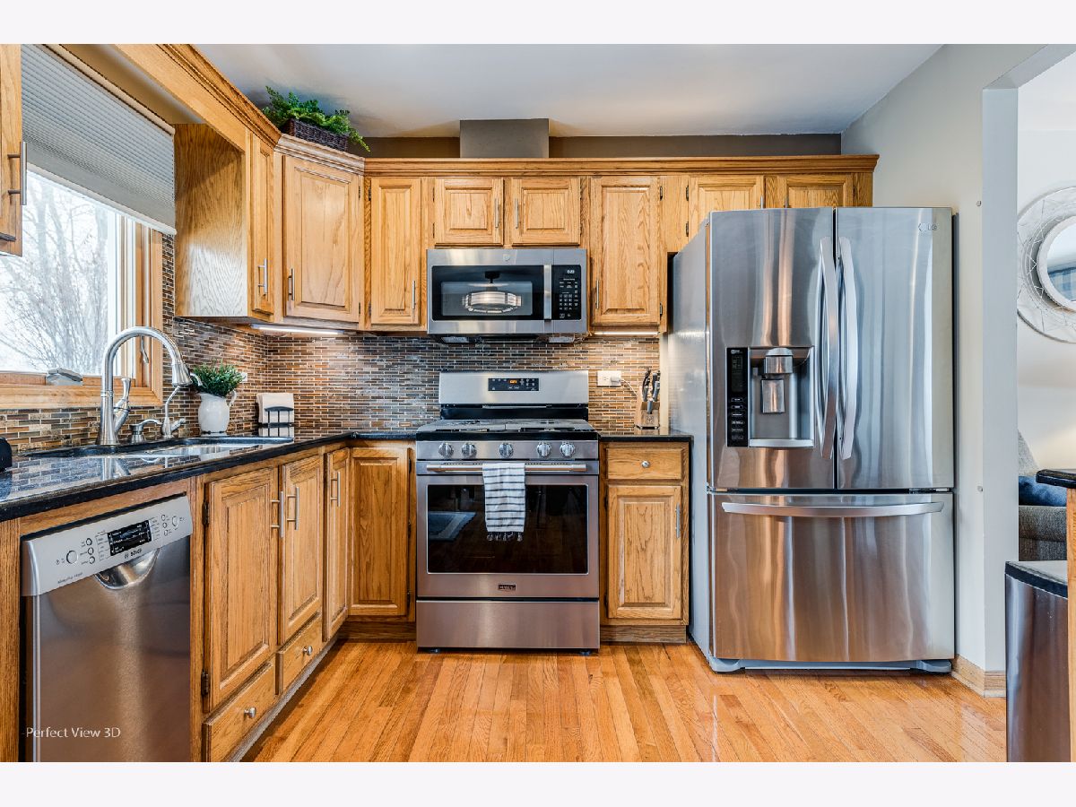 Pride of ownership abound in this lovely home conveniently located in east side Bartlett. Details set this home apart from the moment you step into the open concept living room/kitchen which flows seamlessly a few steps down to the warm and cozy family room. Enjoy your winter days and nights by the fireplace, sip a glass of wine from the bar, surf the web at the corner desk, entertain by the high top table, access your mechanicals behind the shutter doors, do your laundry while working on crafts or wrapping presents. Built-ins in multiple places, the sellers thought of everything and made it happen in this home. As you walk through, pay close attention to the light fixtures and ambient lighting throughout even the window sill! Well-planned kitchen comes with top of the line SS steel appliances, granite countertops & large island. Solid oak cabinets have upper and lower lights, in addition to can lights and modern ceiling fan and fixtures. Check out the pull-outs for your kitchen wares.The dining area has a bay window with seating. The master bedroom has double closets and a huge built-in armoire with organizers. The 2nd bedroom is large enough for a king size bed, a rare find. Then there's the 3rd bedroom or a possible home office for remote workers. Harwood floors on main & 2nd floors, LVF in lower level. Six panel solid oak doors throughout (no cheap hollow doors here!), large coat closet with frosted glass sliders & built in display cabinet in the front room. Attic access in upstairs hallway and there's a huge crawlspace in the lower level for your storage needs. The garage with epoxy flooring is 24 x 25! It's a handyman's dream with huge work bench. The concrete driveway takes you through the oversized patio with decorative privacy trellis. The landscaping from the front porch to around the house and into the backyard is well manicured and loaded with flowering shrubs and bushes that embellish the lush green grass. There's a large maple tree in the front and another one in the back that's been professionally maintained throughout the years. Premium siding, new brick, top of the line windows, architectural roof, and mechanicals have been all updated. And there's so much more...download the list from the the drop down menu. There's nothing to do but move in. A delight to preview. This will not disappoint.This is what you've been waiting for!