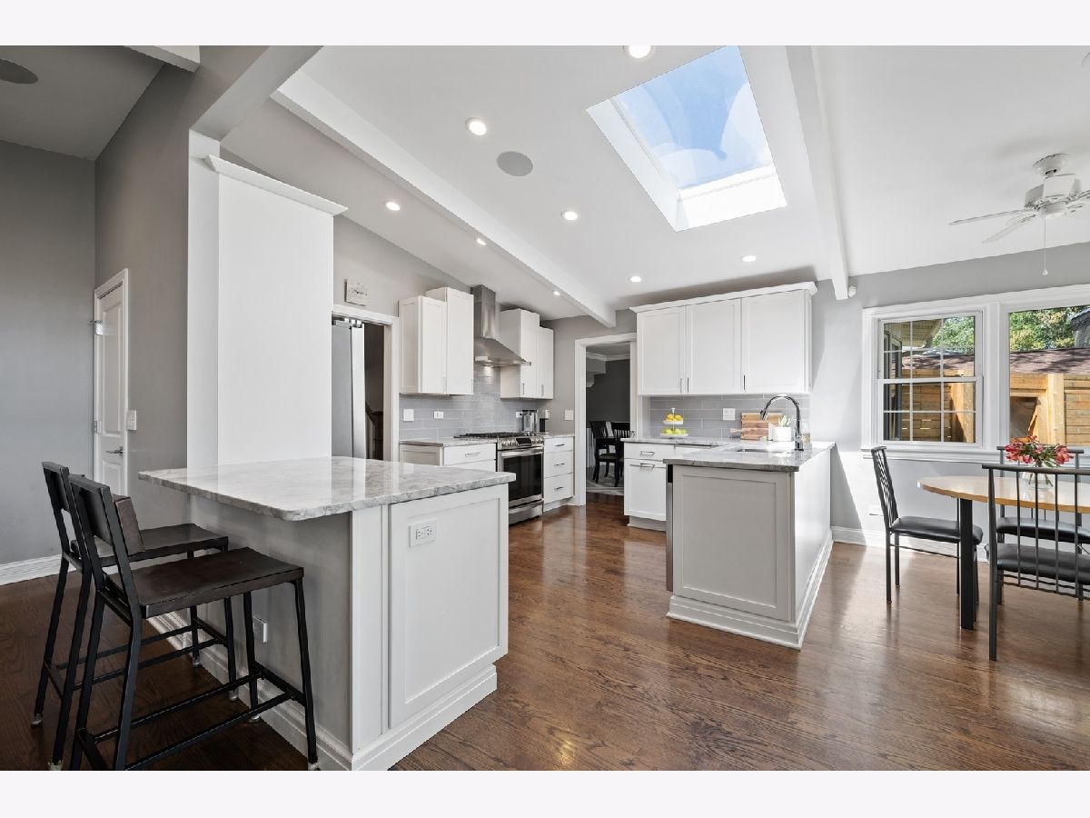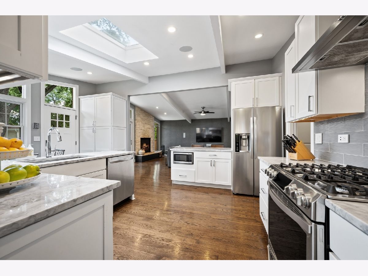 Move right in to this updated and spacious colonial on a beautiful tree-lined street! You will love what 1005 Rolling Pass has to offer. On the main level, you will find plenty of space and great flow with the large living room & separate dining room both with lovely crown molding and wainscoting and a gorgeous kitchen and family room with an ideal open layout featuring cathedral ceilings and a skylight - a bright & beautiful space that is perfect for both living and entertaining! Quartz counter tops, white cabinetry and stainless steel appliances add to the stunning look and feel of the kitchen that has both a breakfast bar and table space! Head upstairs to find 4 bedrooms, all with hardwood floors and crown molding, including a primary bedroom with an updated private bathroom with heated floors plus an additional bathroom shared by the other bedrooms. The lower level offers a finished basement with tons of storage and an updated full bathroom. An attached 2 car garage, first floor laundry/mudroom & fully fenced-in yard complete the package! Move-in ready and a convenient and centrally located neighborhood - 1.5 miles to downtown Glenview and the Metra Station and 2 miles to The Glen Town Center. Close to schools and beautiful Flick Park where you can swim, play tennis, go sledding, ice state, fish and more!