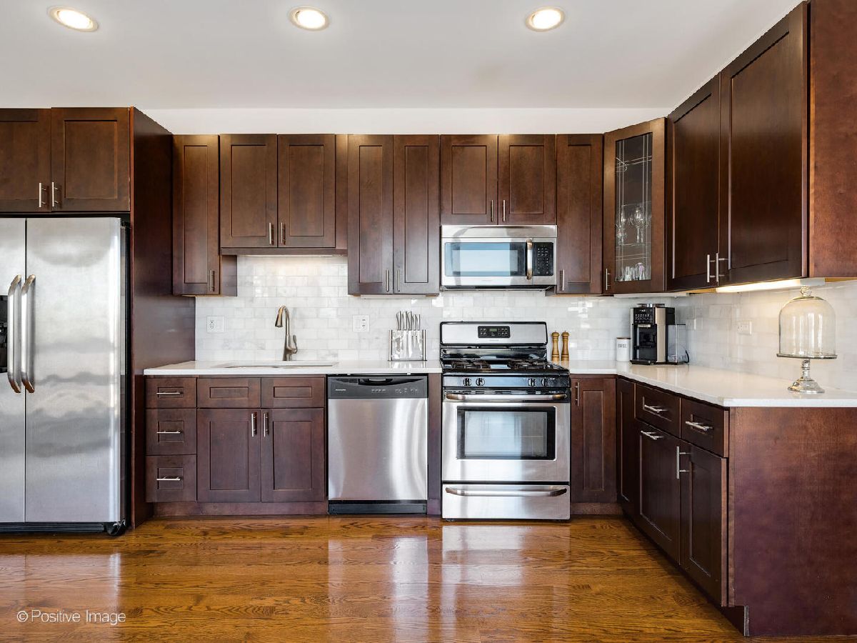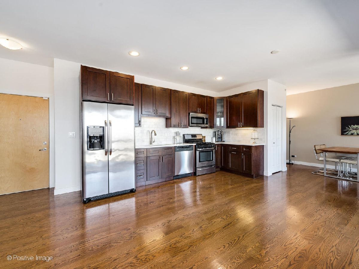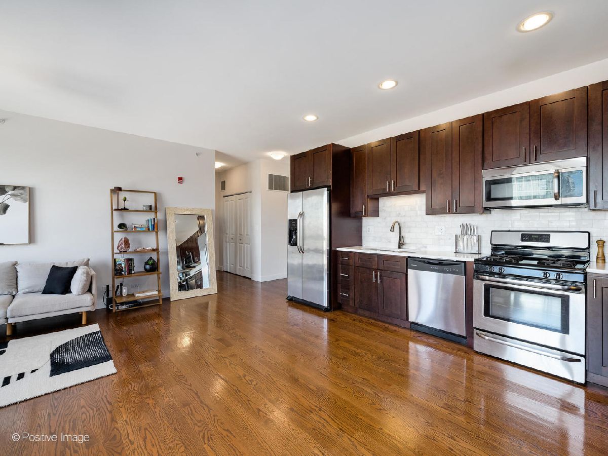 Multiple offers received - highest and best by 3/17 at noon! Move right into this beautiful home in Downtown Oak Park! This rarely available, over-sized one bedroom plus office penthouse condo checks all the boxes! This updated unit features luxury finishes, floor to ceiling windows with custom shades, tons of natural light, hardwood floors throughout, in unit washer and dryer, and a spacious balcony offering great views of Downtown Oak Park. The modern gourmet kitchen has custom cherry shaker cabinets, quartz countertops with a full backsplash, a pantry closet and stainless steel appliances. There is also an additional half bath for guests! The primary suite has plenty of space and closets. You don't need storage, but if you do, there is a separate storage unit! This home also has an attached heated garage parking spot included! Your new home is steps from the green line, Metra, restaurants, bars, parks, theater and Downtown!