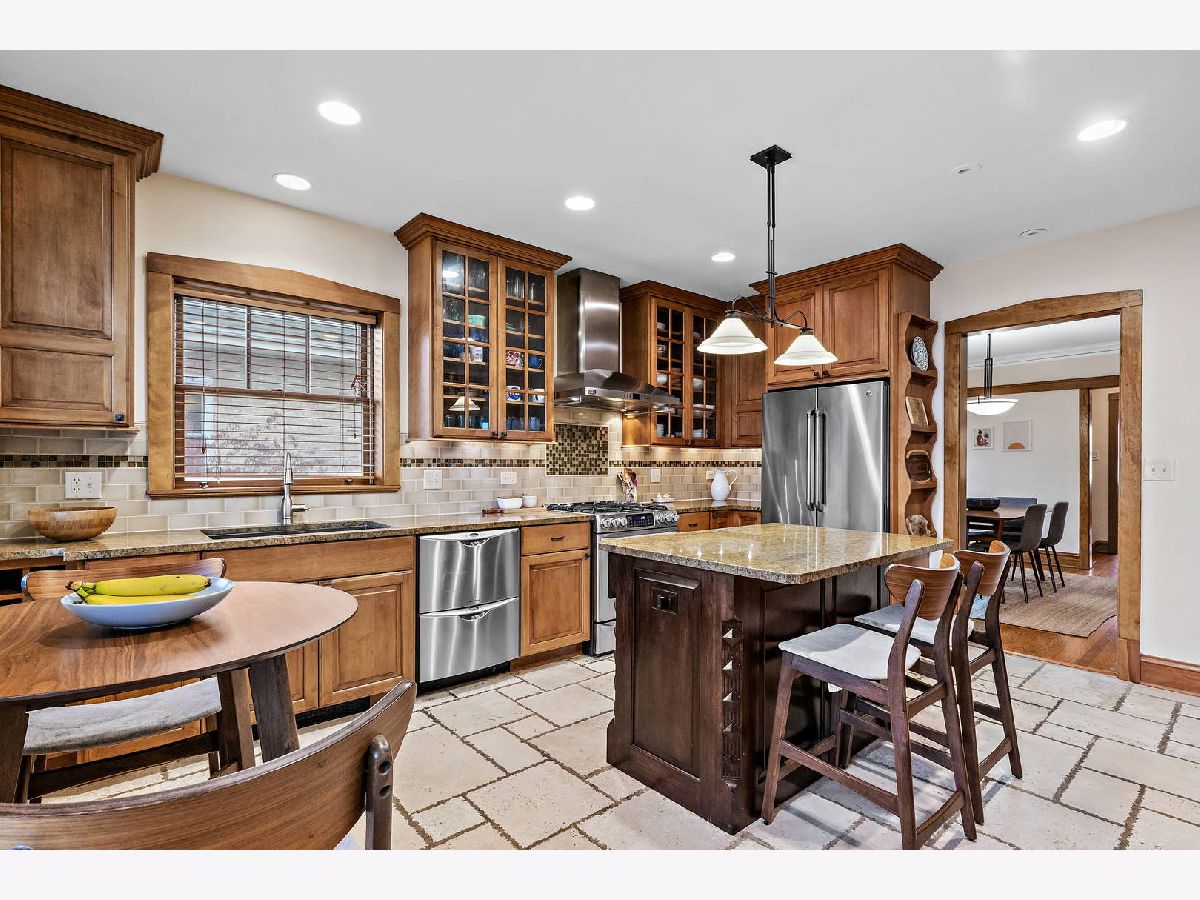 It's in the details and this home has it all! Upon entering you are immediately greeted by a bright and welcoming living room including a gas starter fireplace, original lead glass windows and built-in bookshelves. There is plenty of additional space to also include an in-home office or family room, you decide. The spacious, separate dining room is perfect for all occasions and opens into the large chef kitchen. This kitchen boasts granite counter tops, stainless steel appliances, plenty of cabinet storage as well as a dedicated office center and heated floors. Completing the first floor, is a bedroom/additional room, full bath and sunroom. The second floor offers the primary bedroom as well as two additional bedrooms and a second full bath. More space needed, no problem! The basement offers a family room, an additional room/bedroom, separate laundry room, a third full bath and an exercise room. Don't forget the beautiful outdoor space and brick paver patio on an oversized lot. This home is conveniently located to schools, shops, parks, pool and the Blue Line.