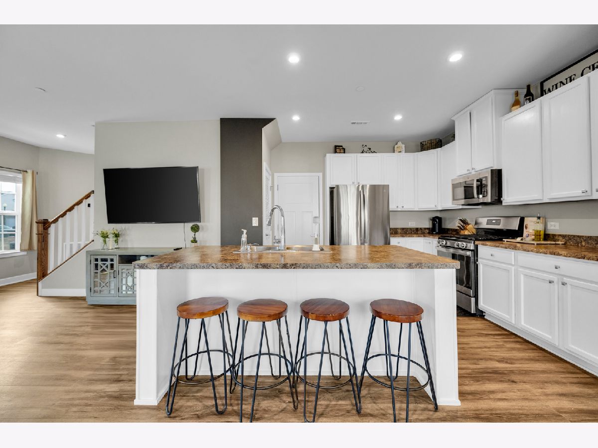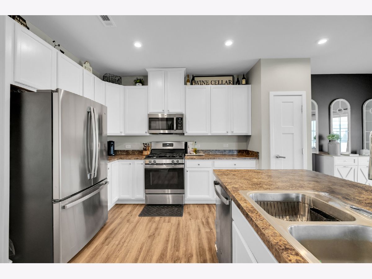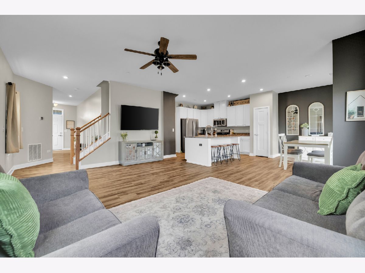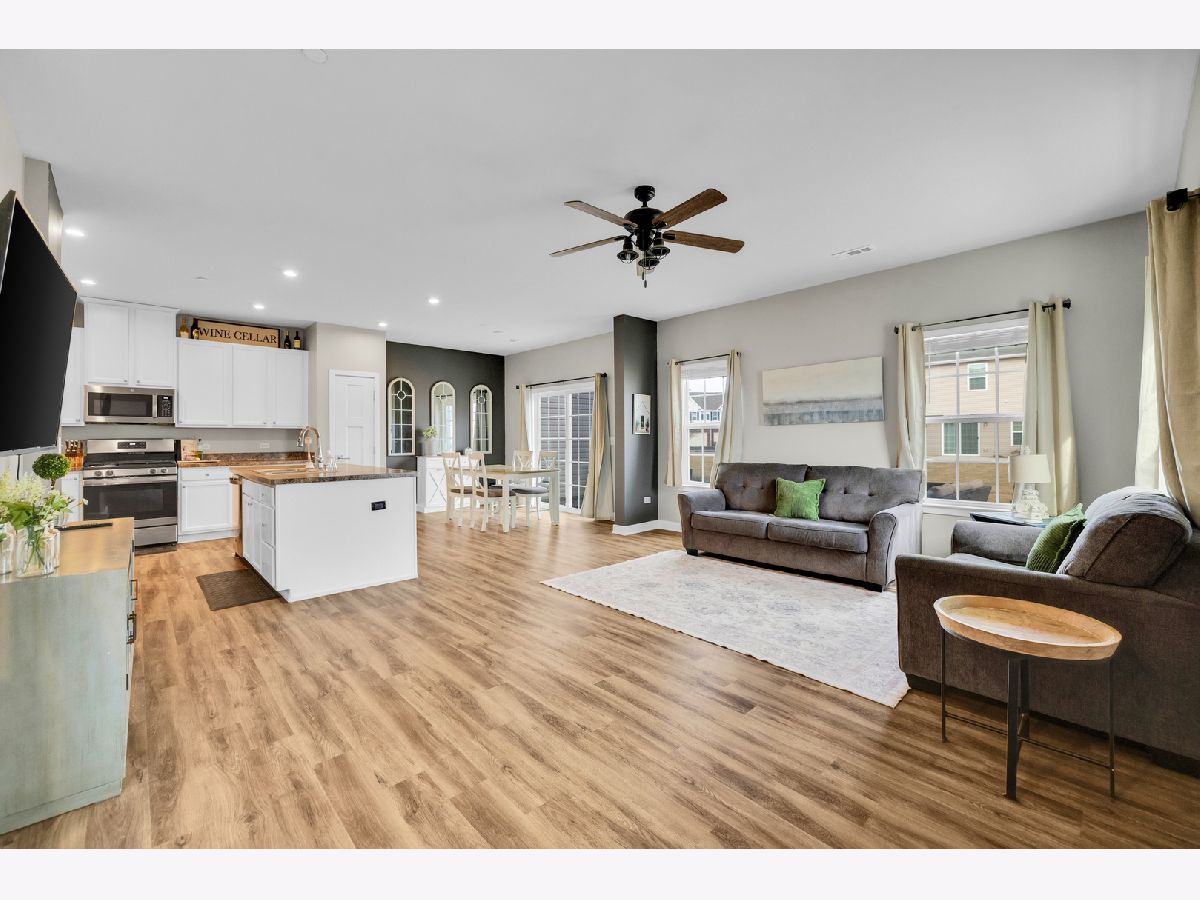 Welcome to this charming 3-bedroom, 2.1-bathroom townhouse in the highly sought-after Blackberry Creek subdivision in Elburn! With just under 1,800 sq. ft. of living space, this home blends modern updates and cozy comfort. The open floor plan offers freshly painted white cabinetry paired with sleek stainless steel appliances, perfect for the home chef. The main level also features vinyl flooring, adding a clean, contemporary feel throughout. Take a step upstairs and check out the generously sized bedrooms with the master bedroom featuring a full bathroom and walk-in "his and hers" closets! Enjoy the outdoors with a newer patio and walkway that connects the front of the house to the backyard, ideal for relaxing or entertaining. The location is unbeatable-within walking distance to Blackberry Creek Elementary School and just a short drive to dining and shopping options in nearby Campton Hills. Whether you're hosting gatherings or enjoying quiet moments at home, this property offers the ideal blend of style, convenience, and modern living. Don't miss the opportunity to join this growing community and make it this townhome yours!