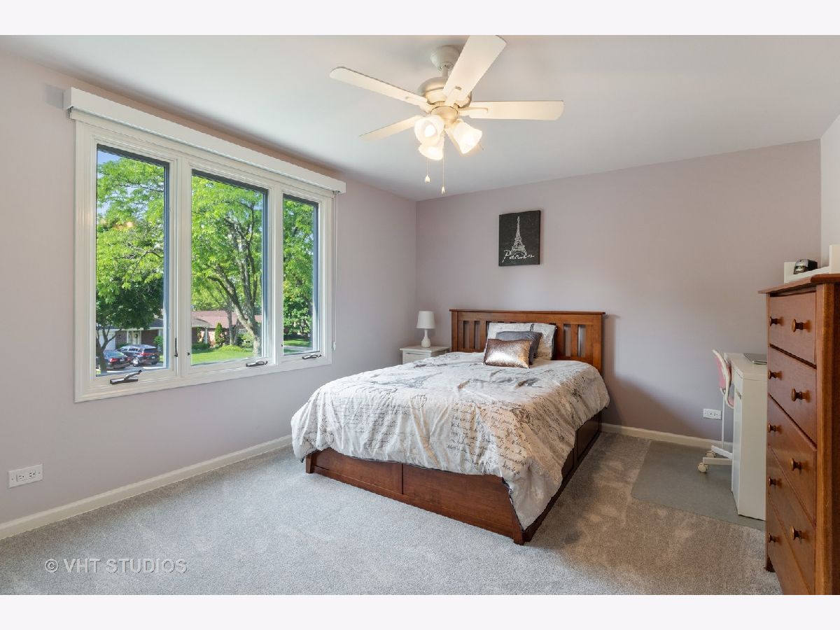 Stunning attention to detail awaits you in this gorgeous 4-bedroom, 2.5 bath Colonial home with full finished basement! A custom portico welcomes you into the Living Room & separate Dining Room which feature an inviting decorative fireplace with surrounding bookshelves, Crown Molding & distinguished framing details to Dining Room entry. In the kitchen has lovely Birch cabinetry, granite counters, stainless appliances (refrigerator has cabinet front) and a 5-panel bow window to enjoy your park-like back yard. Refinished hardwood flooring throughout main level, Master & Guest Bedrooms. Brand new carpeting upstairs. Remodeled Recreation Room with recessed lighting and laminate flooring has a small area that will be prefect for exercising or a potential office space. Remodeled Powder Room on main level, nicely appointed guest bath on 2nd floor & updated full Master Bath with dressing area. Guest Bedroom has it's own HVAC unit installed 2017, so your guests will always be comfortable! New Marvin Windows in Living Room, Dining Room & Kitchen. Windows on 2nd floor have also been replaced. Family room has wood burning fireplace refaced w/new stonework & sliding glass doors to patio. Shed has concrete pad complete with electric. Garage is insulated, drywalled & painted, new insulated Garage Door with additional lighting installed. Entire yard has been professionally landscaped in 2017 and has a front & back irrigation system with a transferable warranty. Close proximity to downtown Arlington Heights, transportation, shopping, and restaurants. Come see this beautiful home today - you won't want to leave!