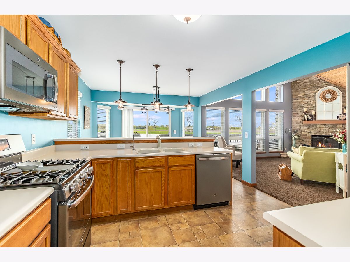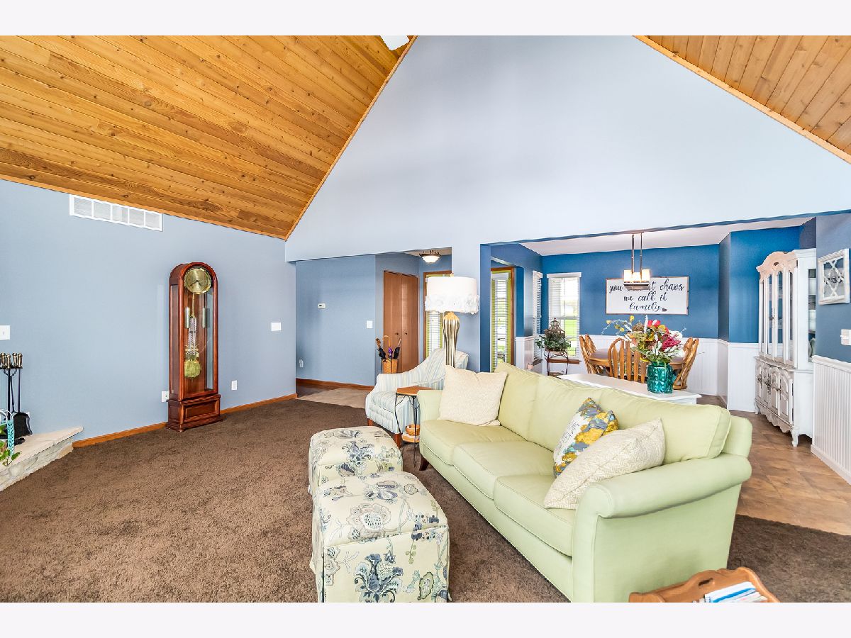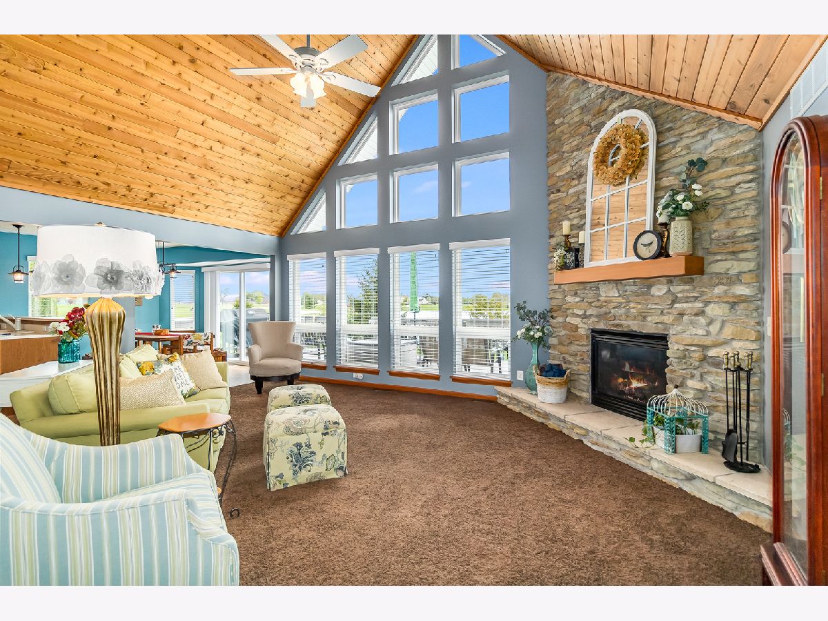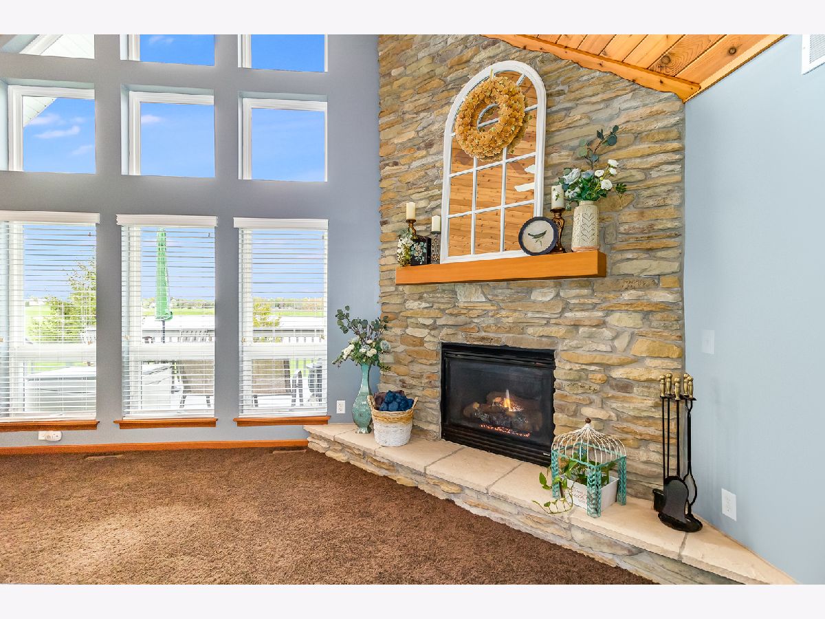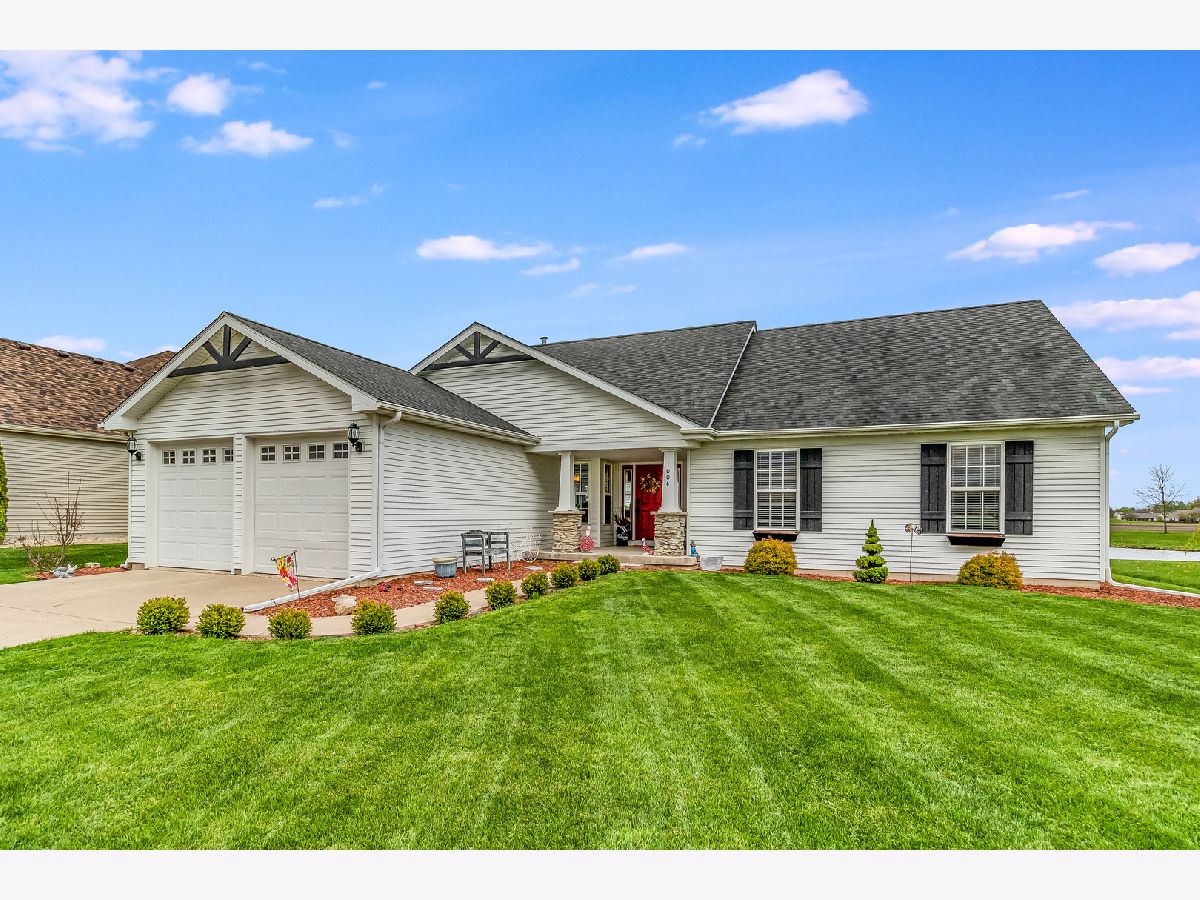 Welcome home to a wonderful open concept home on a premium private lot that backs up to a pond~The view is breathtaking when you walk in the front door and see the large stone fireplace, a vaulted wood planked ceiling and a wall of windows that showcases the outdoors~You will feel like you are in a resort in the Northwoods! Wildlife is no stranger to this homesite as it is not uncommon to see several species of birds as well as deer~Country setting but so close to town~Also featured in this terrific ranch is a large master suite and 2 spacious bedrooms, two baths upstairs and the third bath in the fantastic finished lower level get away~The basement has a second kitchen with full size stove and fridge, quartz counters and the family room has a wood planked accent wall~It is so inviting and the perfect spot for entertaining family and friends~A short distance away are several ball diamonds, a park and the fairly new Sandwich addition - the family friendly Splash Pad with pavilion that is enjoyed by all ages! SS appliances in the first floor kitchen~New lighting throughout~First floor laundry~Crown moulding accents~Oversized deck~Don't let this one get away!