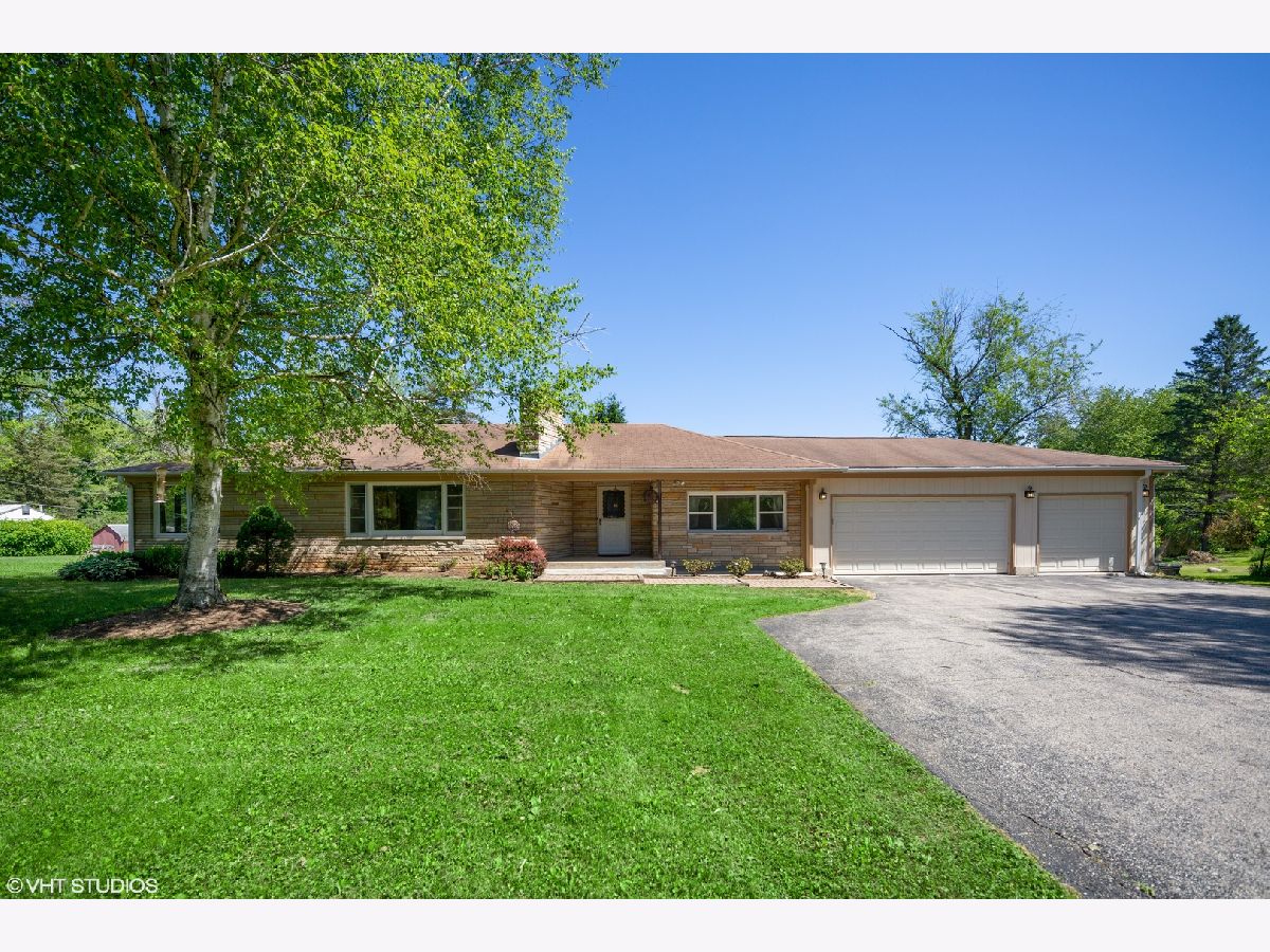 Amazing all stone ranch house with finished basement, on a large lot (0.85 acres) with Barrington schools plus Fox River Grove train station & shopping nearby! Bright and spacious living and dining rooms with large window views to enjoy the expansive front and back yards. 4 total bedrooms plus 2 beautifully updated bathrooms. The kitchen features brand new stainless steel appliances! Brand new granite countertops! and a spacious eat-in area leading out to the raised deck which is perfect for entertaining. Some other features in the house include a 3 car attached garage. Hardwood floors. Ceiling fans. Newer lighting fixtures, hot water heater (2020), and water purification system (2017). A full basement with family room, office, and guest bedroom & bathroom renovated in 2017. A built-in staircase to the attic waiting for the possibility of a second story. Low taxes in the Barrington school district. Come and see!