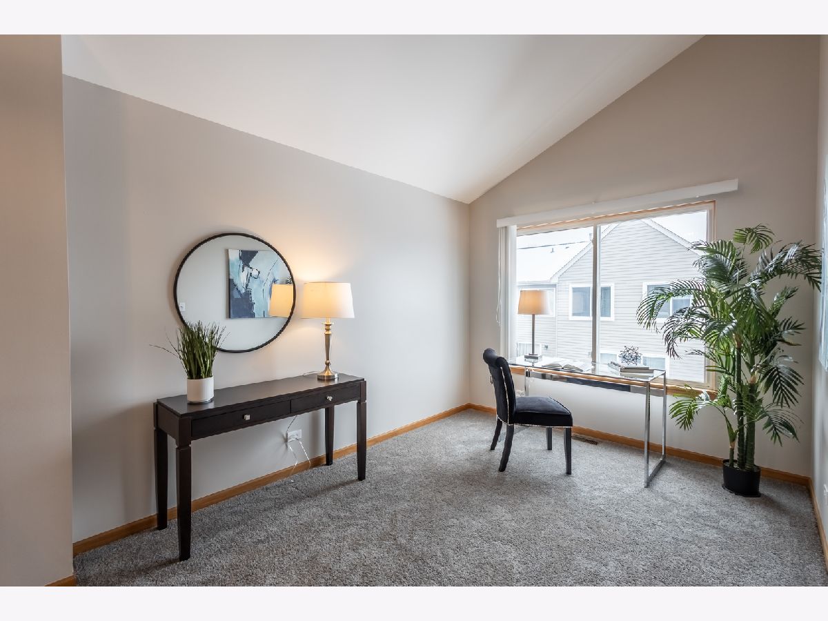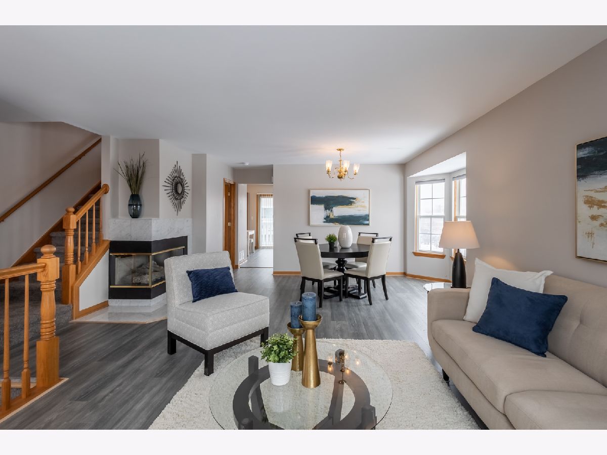 Welcome to this exquisite College Trail 3-story townhouse End unit overlooking ponds forest preserve light and brite thru out . Step into this remarkable home and be prepared to be captivated by large rooms, the property features new flooring freshly painted 3 bedrooms and a bonus loft. Family size gourmet kitchen with island and quartz counters new stainless appliances it opens to balcony kitchen views living room dining room combo bay window marble fireplace with gas starter master bedroom vaulted ceilings beautiful trim all around The master bath is a sanctuary of relaxation and sophistication. many upgrades Convenient to excellent schools ,shopping transportation come make this home yours