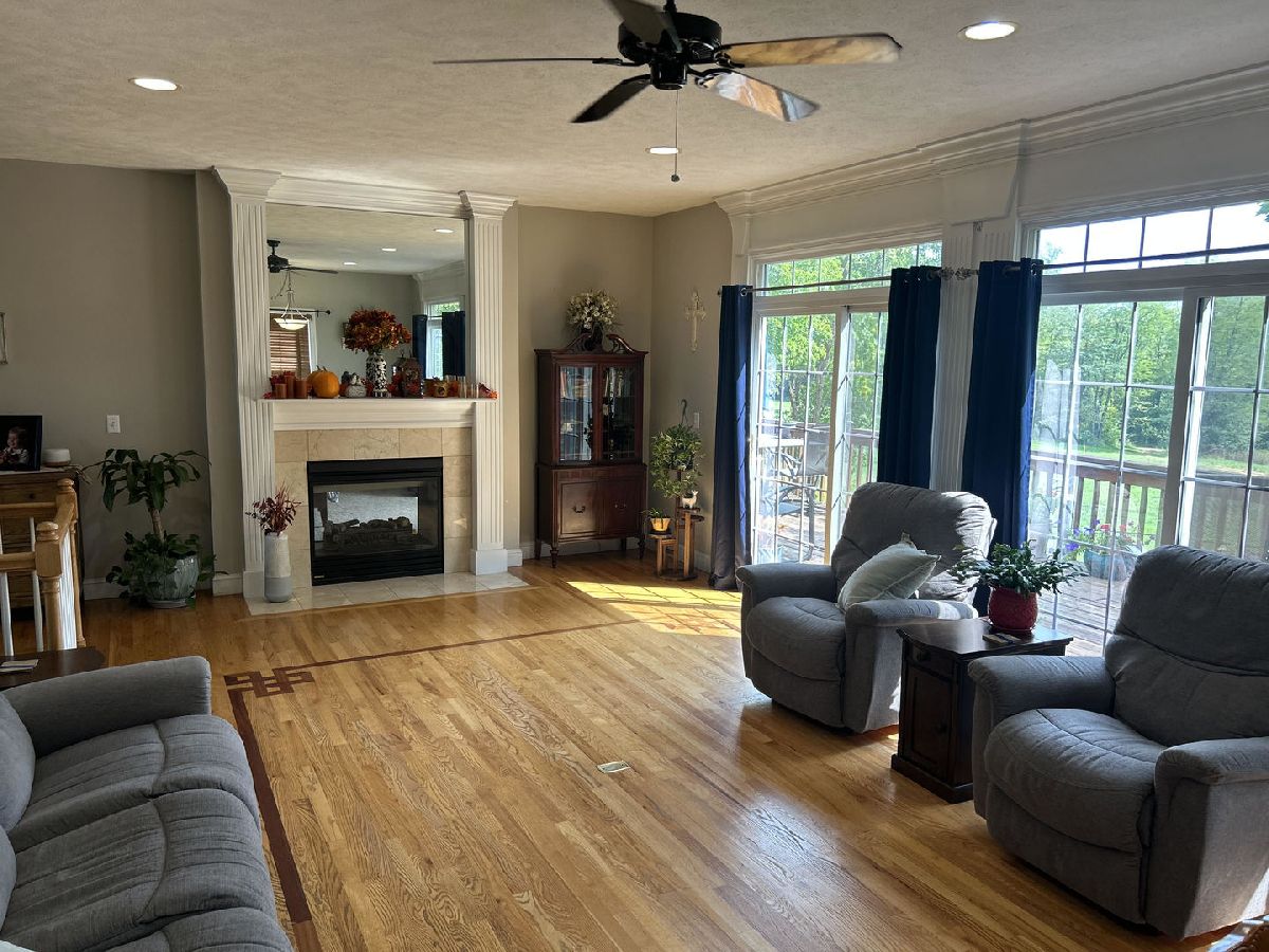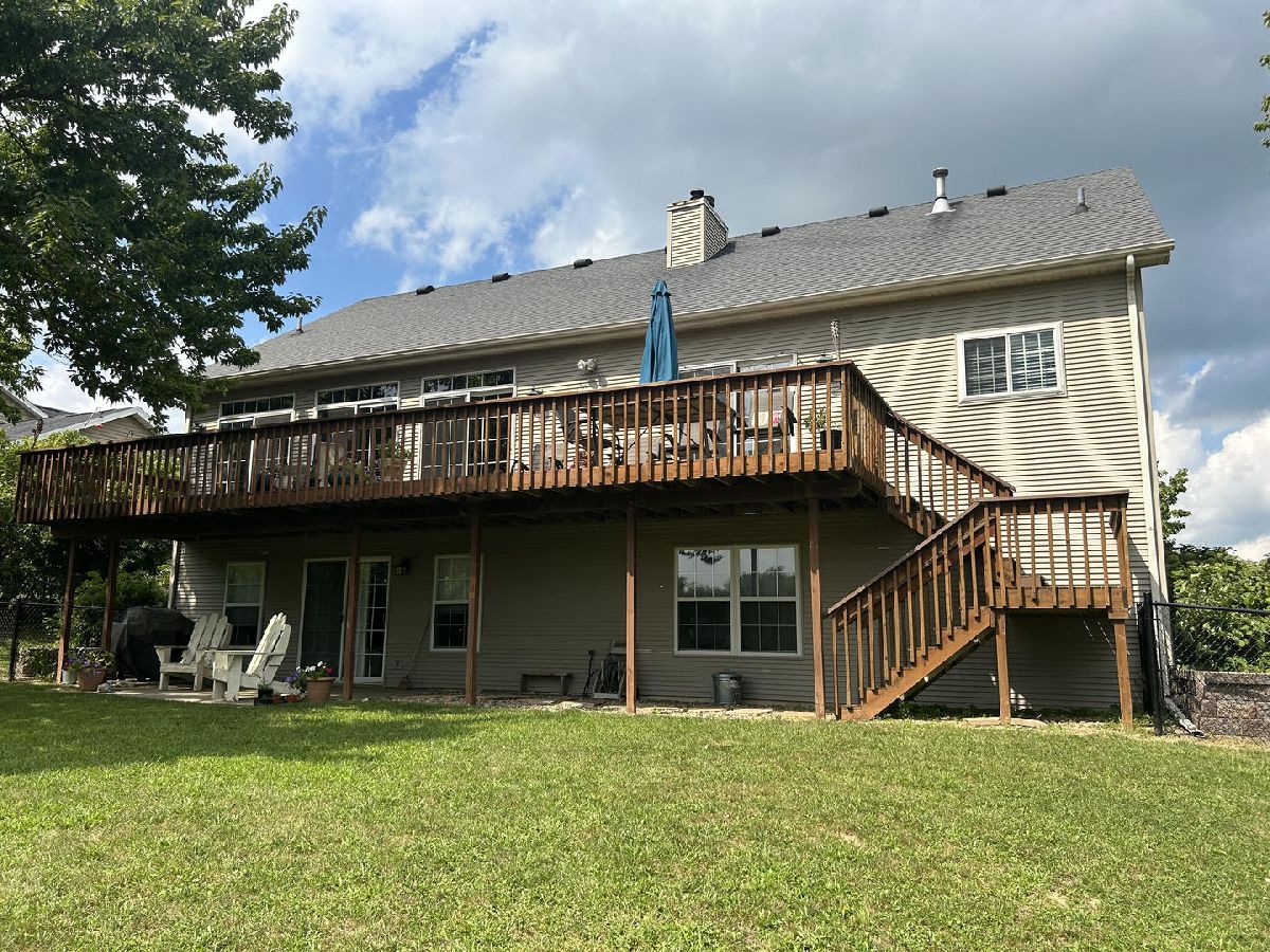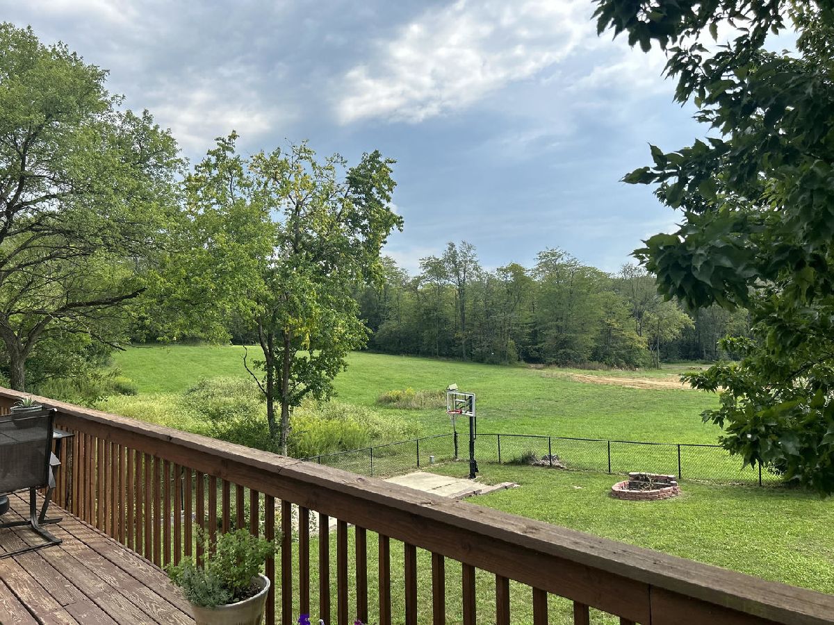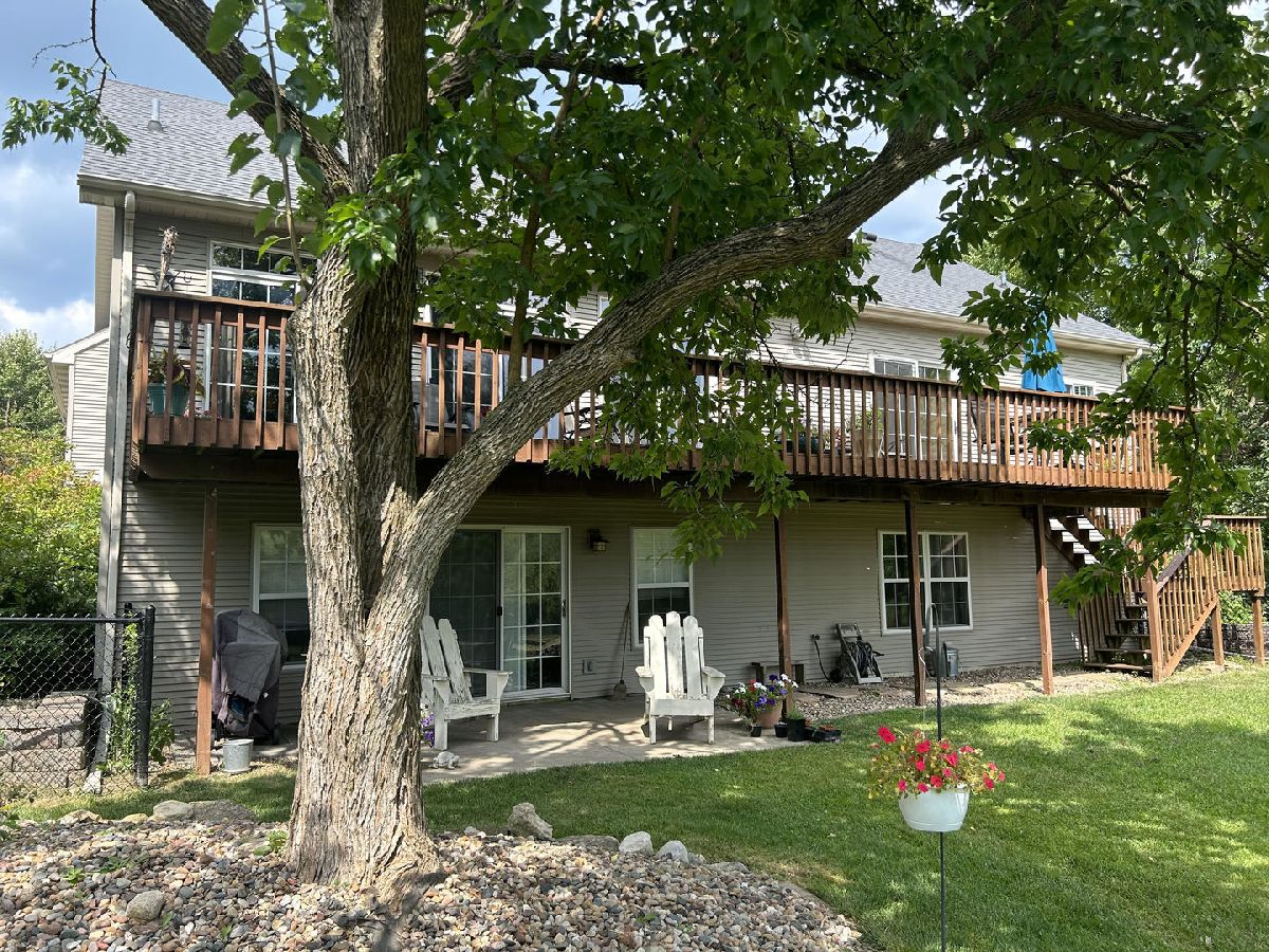 So, you want a park to play on & a "park-like" setting in your backyard? We have both! Abuts the public park in the Wyndhaven development with a wide-open backyard with mature trees. Large 10' x 42' deck off the first floor & a 12' x 14' patio off the walk-out basement. Additional 16' x 28' basketball court in the fenced rear yard! 9'+/- first floor ceiling height, extensive crown molding in the common areas with fluted window/door casing, breakfast bar & a backsplash in the kitchen, intricate hardwood flooring in the living & dining rooms, double hearth fireplace between the living room & owner's bedroom. Double vanity, whirlpool tub, shower, trayed ceiling in the owner's suite. Additional fireplace in the basement, two rec. rooms, two bedrooms & a bathroom in the walk-out finished basement, lots of natural light. Well maintained home in Heyworth.