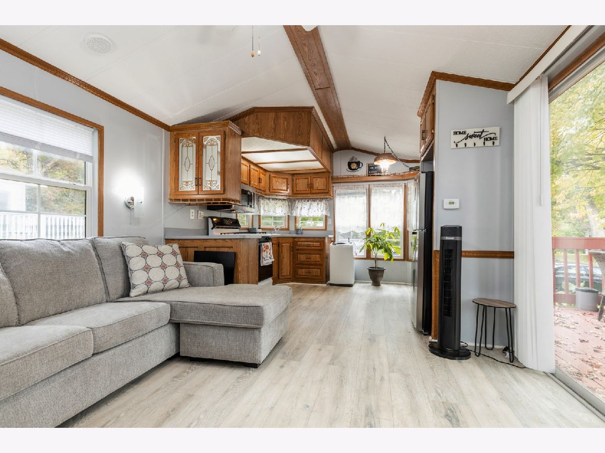 Priced To Sell ~ Modern Comfort and Scenic Serenity! Discover tranquility in this charming 1-bedroom mobile home with exclusive lake rights and access pier slips to Chain-O-Lakes available for extra fee. The sleek vinyl flooring flows seamlessly throughout, providing both style and easy maintenance. Stay comfortably cool with central air, and enjoy the convenience of appliances like the stove, microwave, and washer making daily living a breeze. Entertain and bask in nature's beauty on the expansive deck, a perfect spot for relaxation. Additional perks include ample storage in the shed, making this home a delightful retreat. A true gem for those seeking comfort and quick accessibility to the lake. Monthly lot rent of $760 includes snow removal, lawn care, storage lockers & water, and lake rights. Additional fees may apply, including: application fee ($50), background check fee ($25), administration fee ($150), and 1st month lot fee ($760). "Sold As Is." All occupants over 18 must have good credit and no criminal record to be approved by Harbor Lites Park Management Association, acceptance required prior to sale. Highly motivated seller.