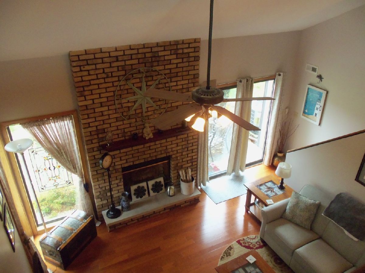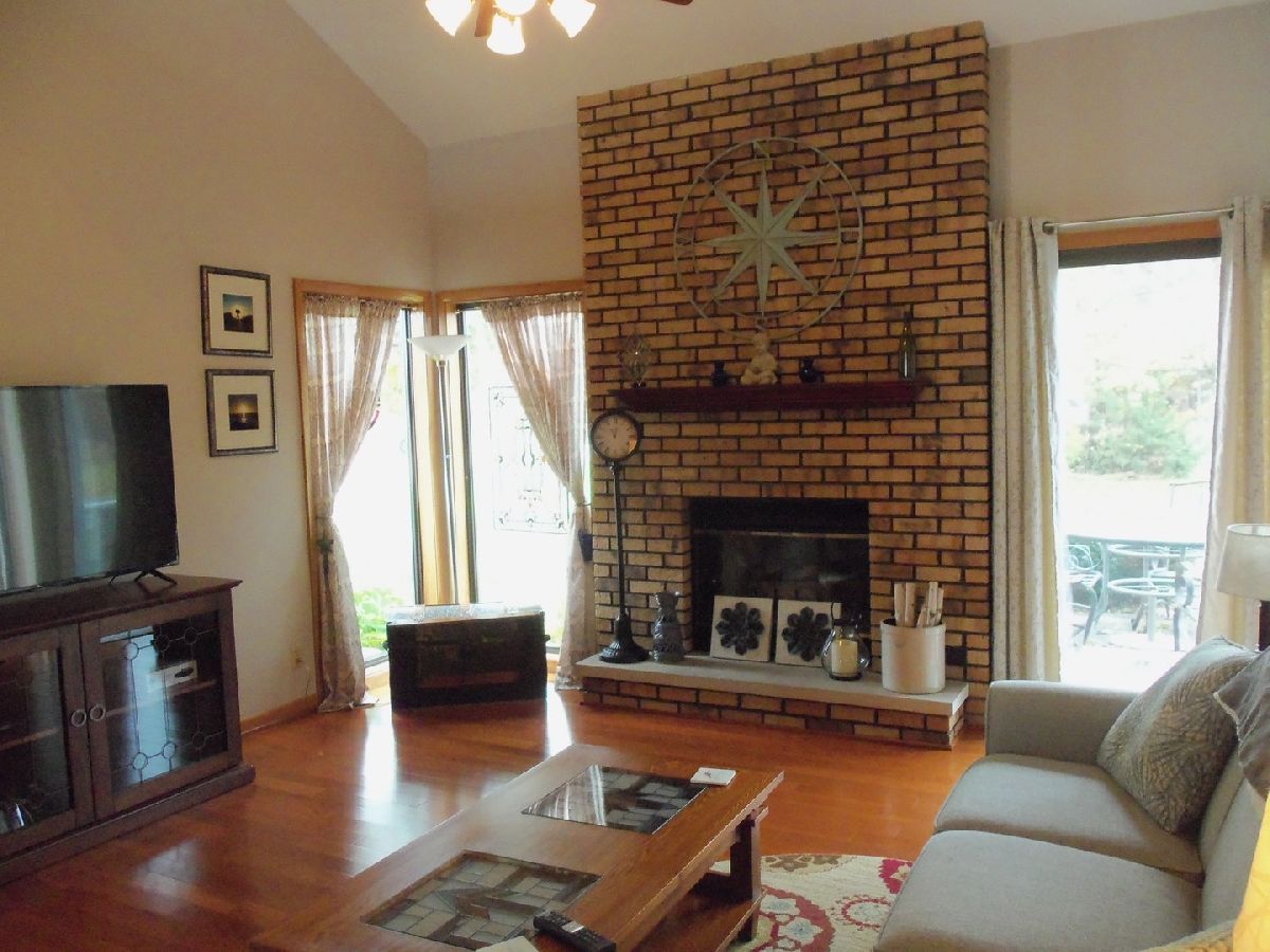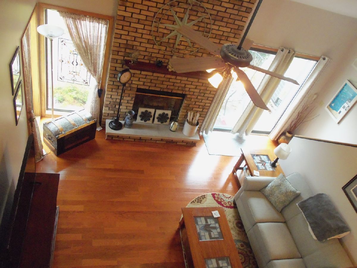 Highly sought after 3 bedroom, 2 bath Burla end unit townhome. Unit features cherry hardwood floors in the vaulted living room with a floor to ceiling gas start fireplace. Nicely equipped kitchen with all appliances. Main floor bedroom with access to full bath and laundry closet. Second level features two additional bedrooms with newer carpeting, hall linen closet and full bath. All freshly painted. Two car garage to keep the elements off your car. Come take a look today. You will be glad you did.