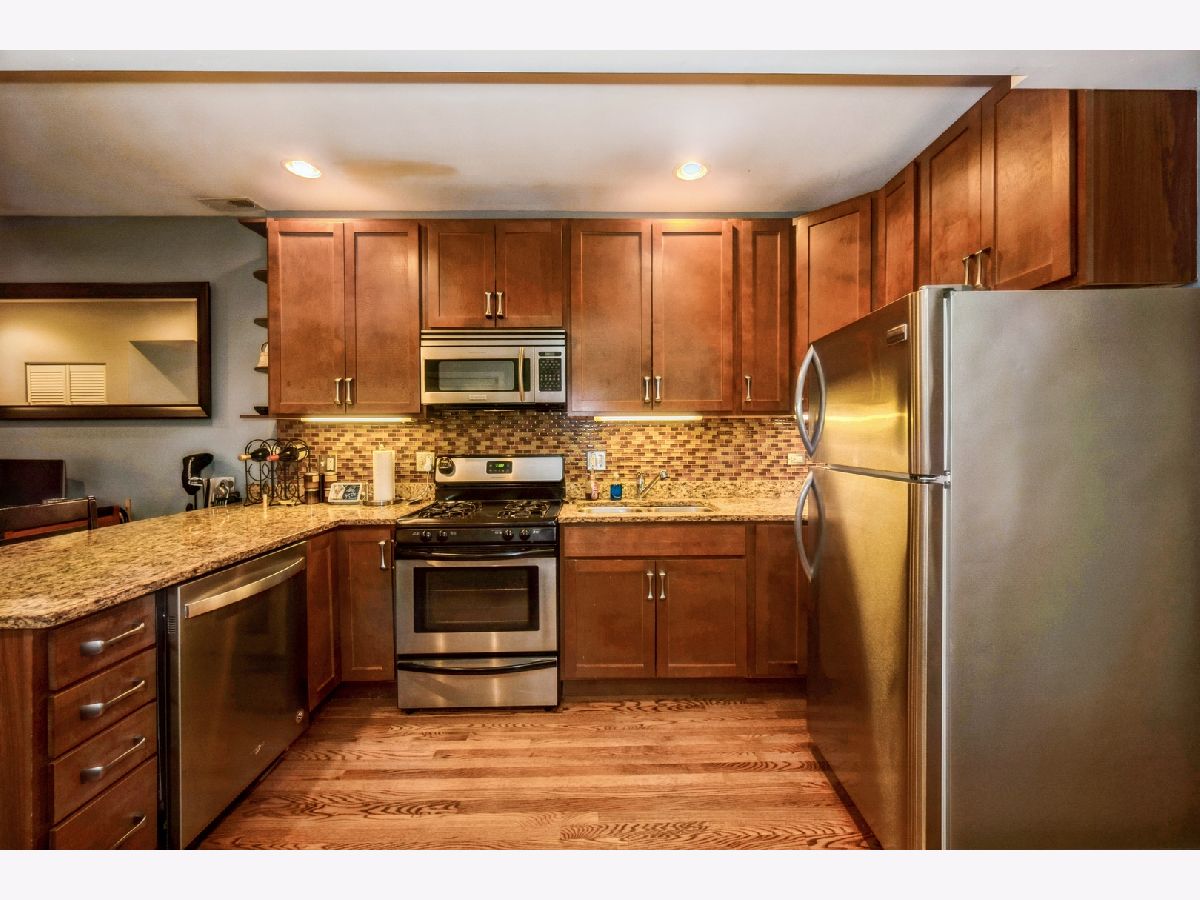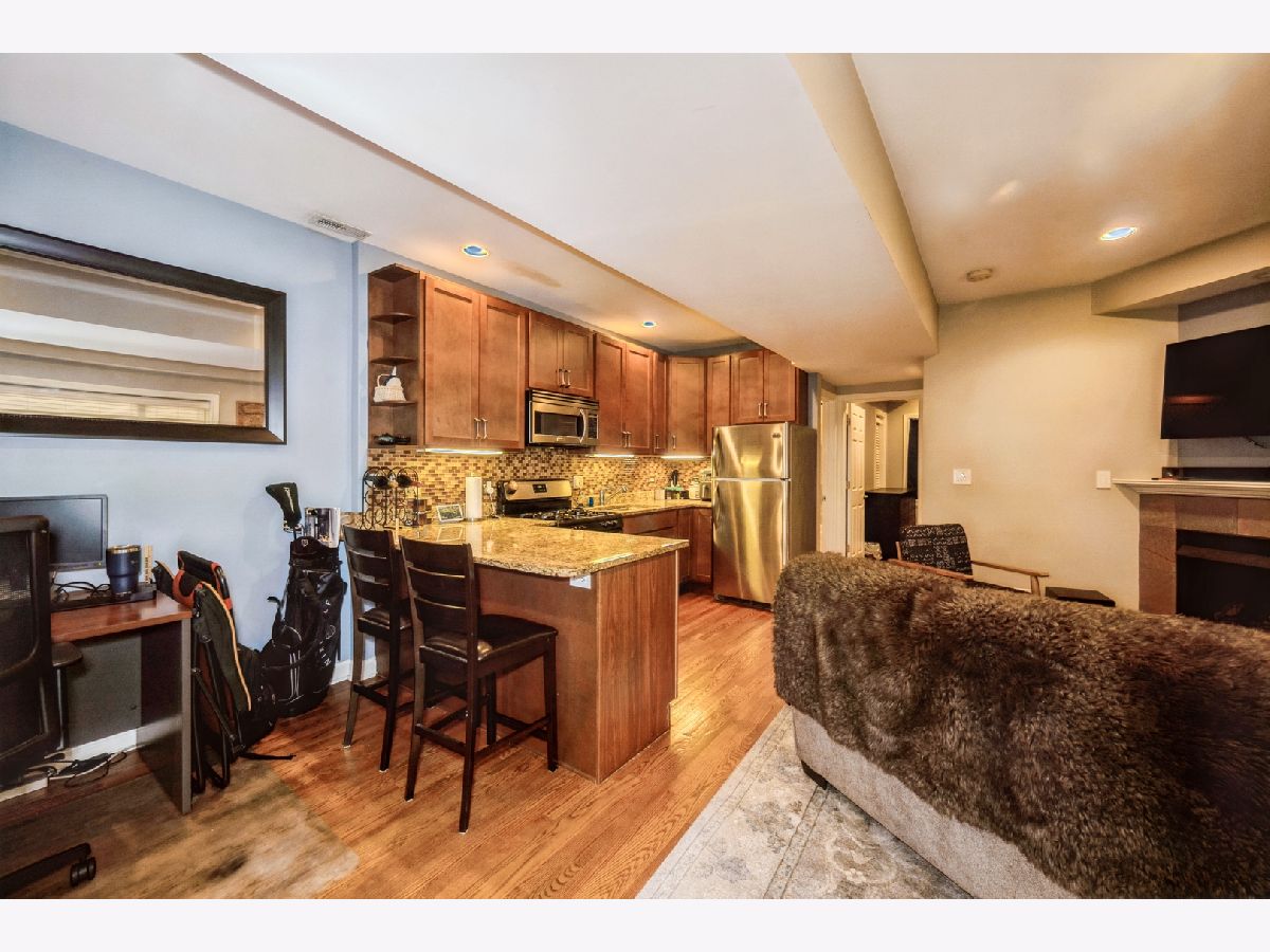 Luxurious English Garden condo on a tree-lined street in the heart of Ukrainian Village/Wicker Park. This 1 bedroom condo features hardwood floors throughout, in-unit laundry, combo living dining room and open concept kitchen, which has 42 cherry cabinets, granite countertops, stainless steel appliances and a designer backsplash. Gas forced heat and central A/C compliment the high ceilings with recessed can lighting, living room gas fireplace and mantle that is pre-wired to mount flat screen. There is a large storage closet on the main level included with the unit. Located 2 blocks south of Division St & 2 blocks north of Chicago Ave, walk to restaurants, shopping & nightlife.