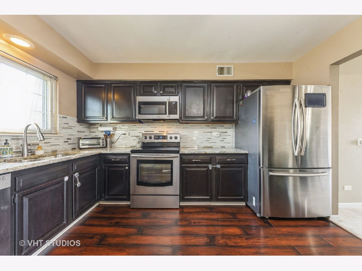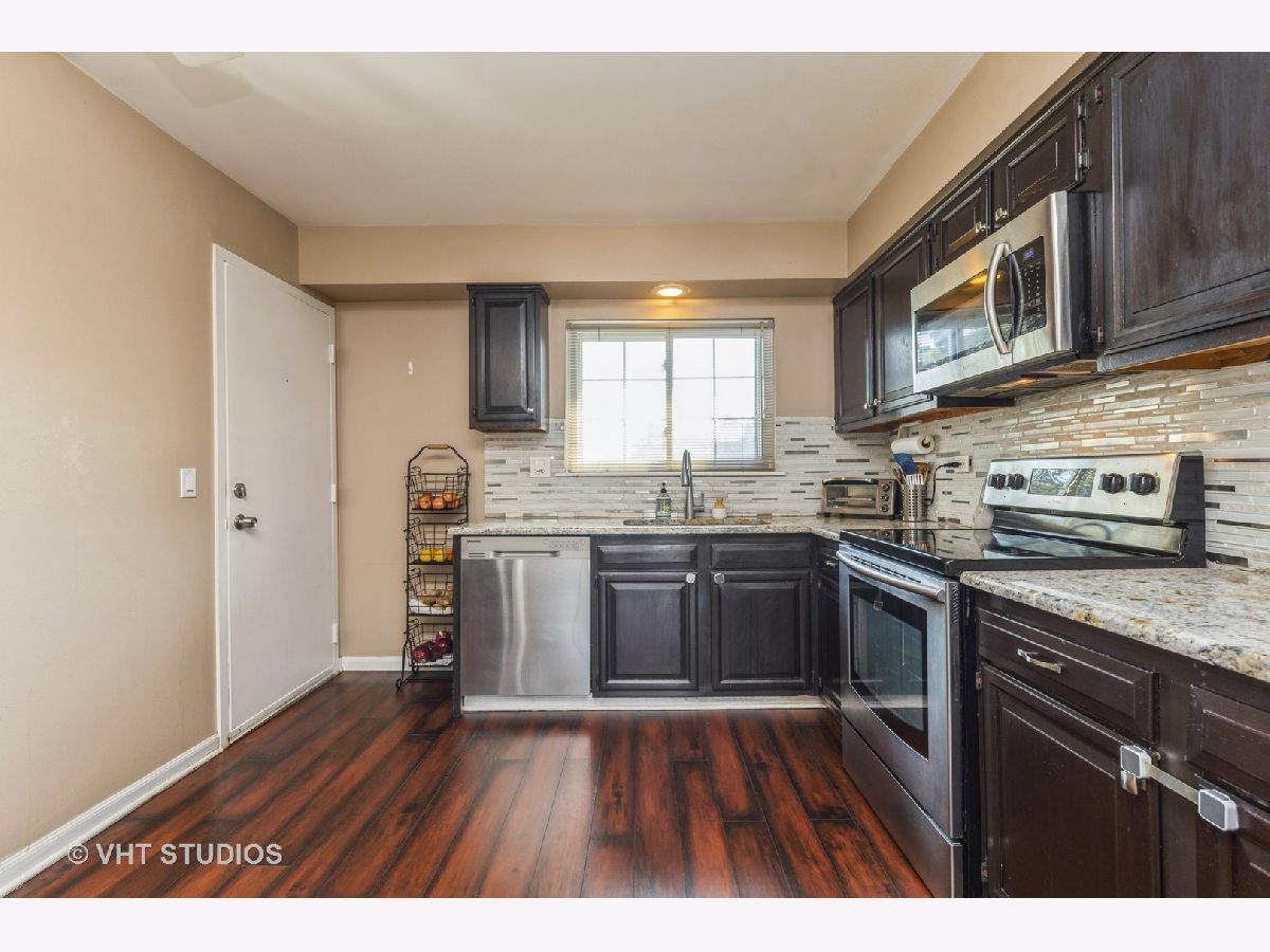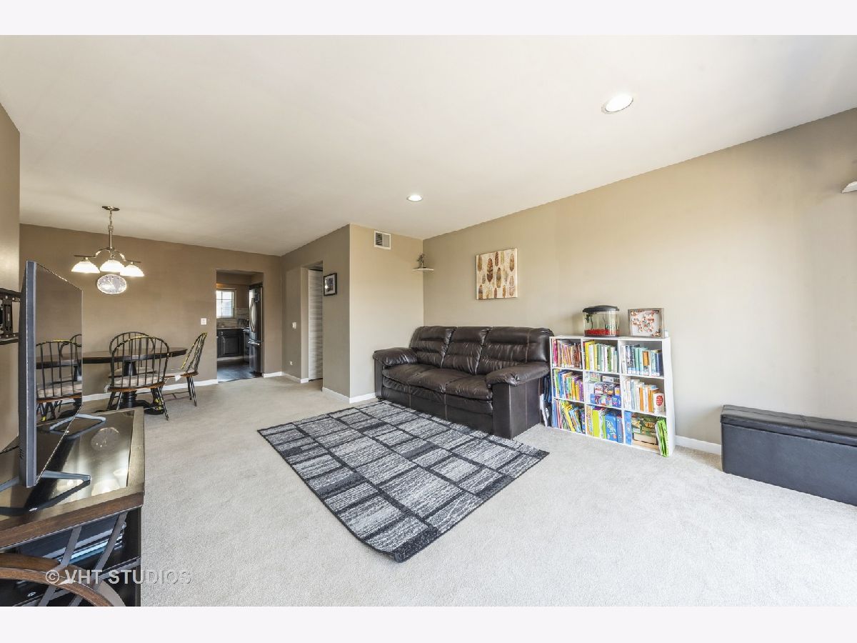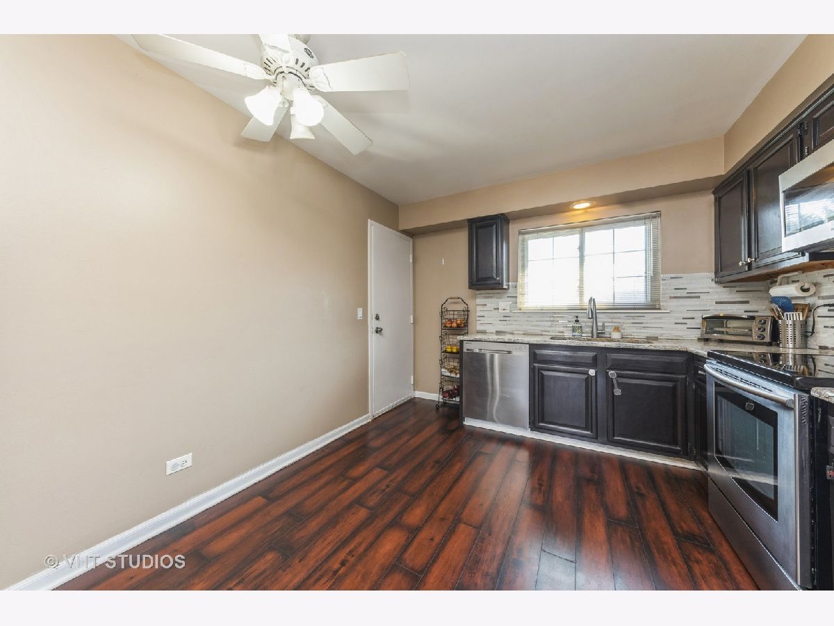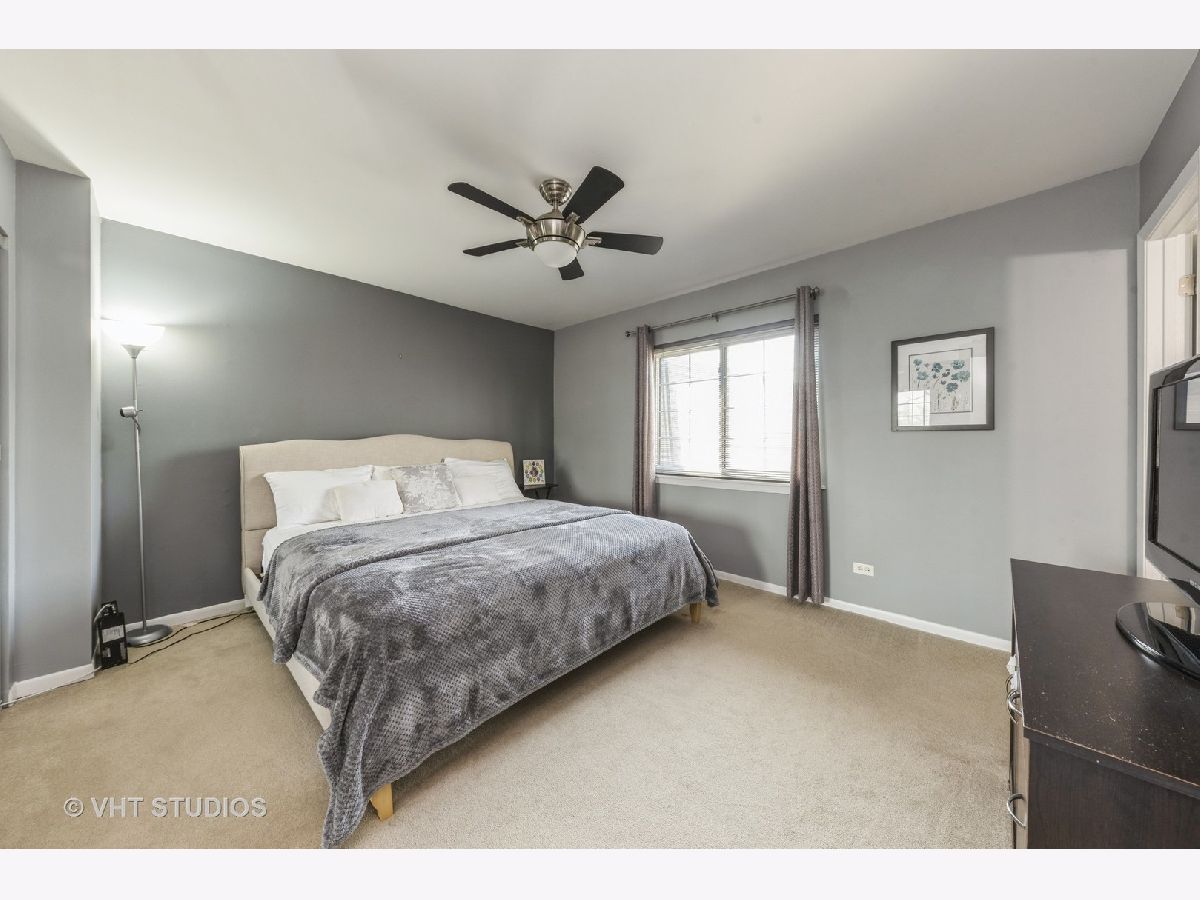 Have you been searching for an affordable home in Buffalo Grove? This top floor unit will check off everything you are looking for! Kitchen has expresso colored wood cabinetry, granite counter-tops with tile backsplash, undermount sink w/ pull-out faucet, stainless steel appliances and wood laminate flooring all updated in 2017. Living room is bright and cheerful with can lighting and new neutral carpet in 2021. Primary bedroom has a ceiling fan and an entire wall of closet space with a private 1/2 bath. 2nd bedroom has overhead light, large closets. Main bath updates include modern oversized subway tiling, floor tile, vanity in 2019. Neutral paint goes with everyone's decorating. Balcony for grilling. A/C replaced 2018. Furnace replaced 2020. One assigned parking spot with additional unassigned spots for 2nd car. Newer vinyl windows. Basement storage unit. Low electric utility bills. Assoc. installed new coin laundry machines Dec 2021. Building interior to the complex and does not face busy Lake-Cook Rd or Weiland Rd. Large common green space behind the building to enjoy. Walkable to shopping, restaurants. Award winning district 102 & 125 schools. Convenient commute to I-294 or 53 corridors. Don't miss this opportunity!