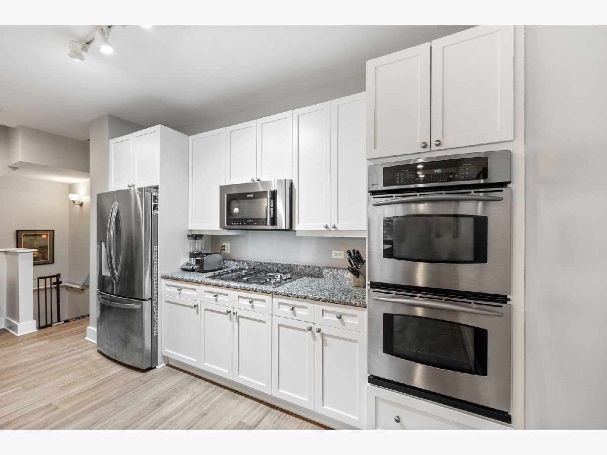 Fantastic townhome in the heart of Oak Park! Featuring hardwood floors throughout, an open concept kitchen and 4 levels of living -- you can live and entertain in comfort. The large entryway opens to the living room and gas fireplace, and faces the dining area and kitchen, which is drenched with eastern sun and a green view. A half bath greets you on the stairs as you head upstairs to the primary suite complete with large dual-sink vanity primary bath and walk-in closet. The bonus room connected to primary bedroom makes a perfect home office, nursery, or exercise space. The laundry closet is also located on this level. On the 3rd level, you will find 2 large bedrooms, another full bath, and a large rooftop deck (with access from both bedrooms). Access your 2 indoor parking spaces (directly outside the door) downstairs via the family space/recreation room, office space or workout space. There is nice storage (+ crawl space) under the lower-level stairs as well as in front of the parking spaces. Newest updates include hot water heater (2023); sink garbage disposal (2023); A/C, including roof-top condenser unit (2022); Ecobee smart thermostat (2022); primary suite top-down/bottom-up blinds and ceiling fan. Situated in a serene oasis near central downtown Oak Park; within your reach are the Hemingway District shops, restaurants, transportation, Farmer's Market, high school, library, parks and more. This gated, courtyard community has beautifully landscaped views out every window. Don't miss this special place! Check out the drone tour!