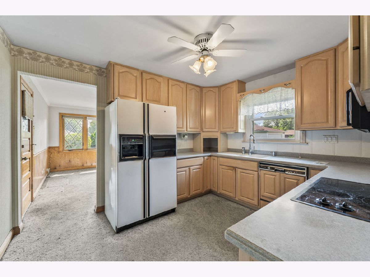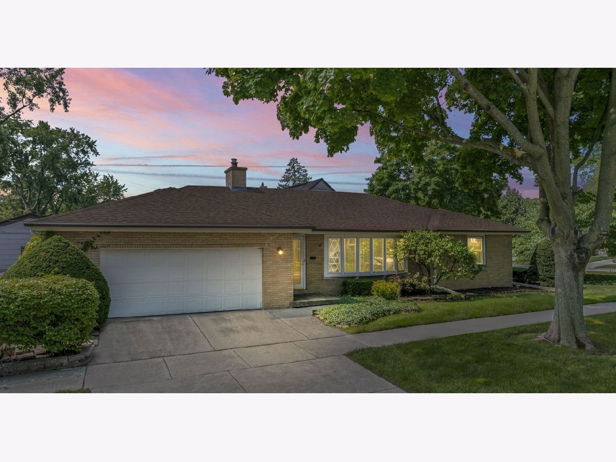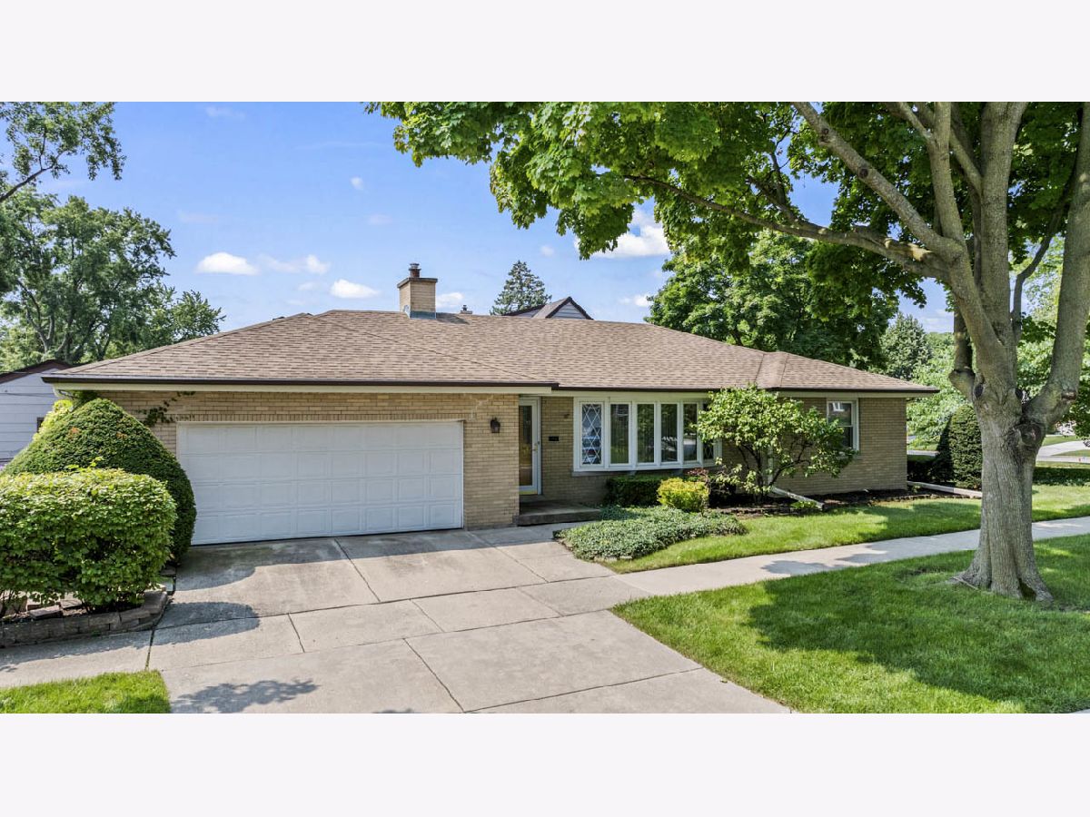 This sturdy brick 2-bedroom ranch home on a corner lot is ready for a new owner. The spacious living area flows into a separate formal dining room, perfect for gatherings. The kitchen has been updated with maple 42" cabinets and solid surface countertops, offering both style and function. You'll also find an office/small den along with two comfortable bedrooms on the main floor. The generously sized primary bedroom features a full-wall closet, as does the second bedroom. The main floor bathroom includes a tub/shower combo for convenience. The basement is partially finished, complete with a bar and a full bathroom with a shower, offering extra space for relaxation or entertaining. Outside, the private side yard is beautifully landscaped with natural hedge fencing, creating a peaceful retreat. The attached 2-car garage provides ample parking and additional storage space. This home is being sold as-is, offering a great opportunity to make it your own.