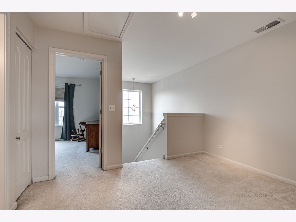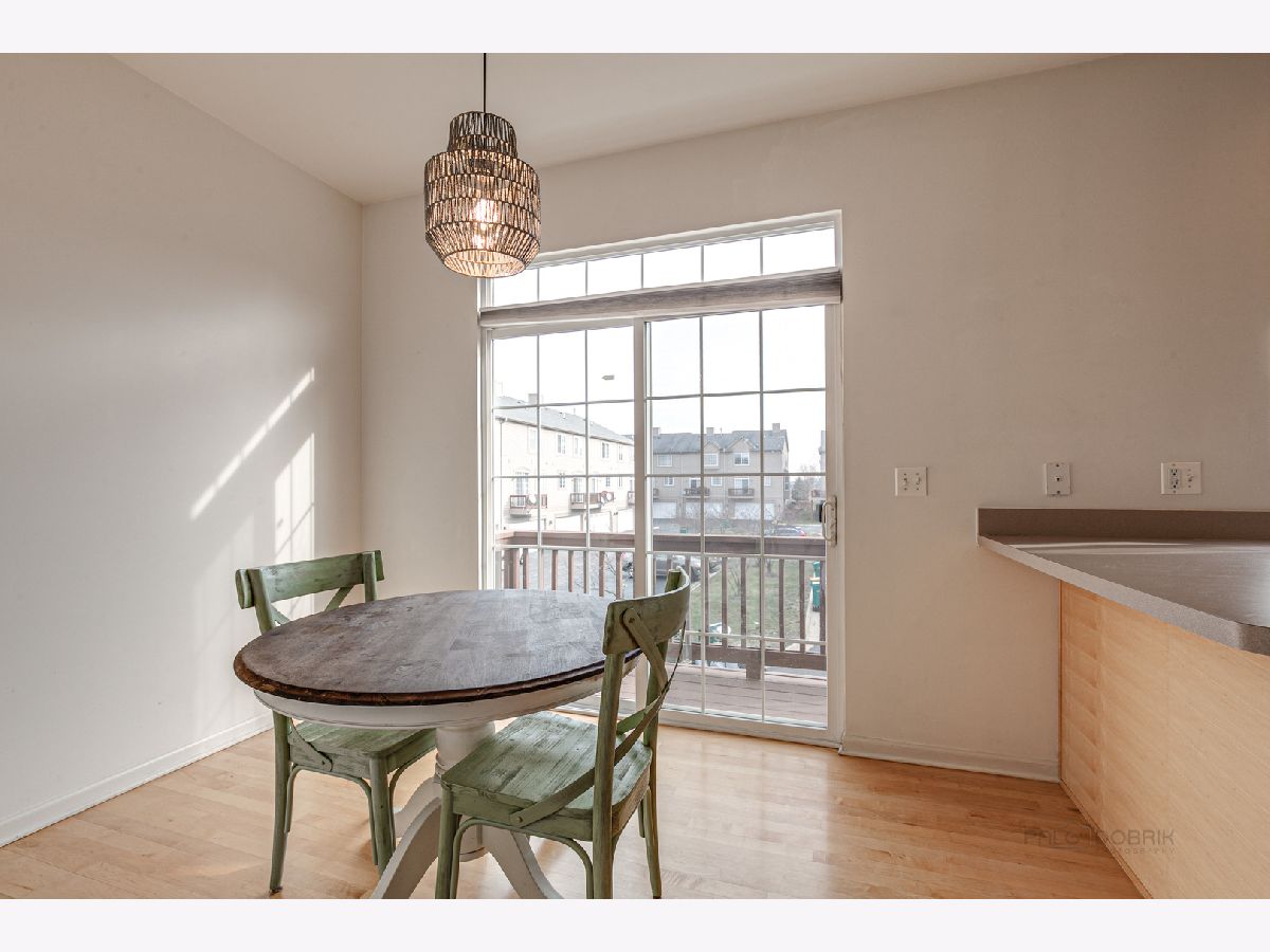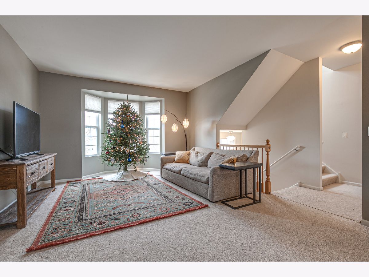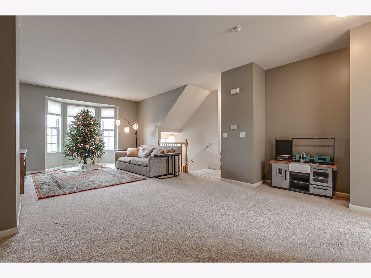 This beautiful 2 bedroom 2.5 bath Chicago model townhome with 2 car garage is move-in ready! Townhome features spacious living room with plenty of natural light, plus a bay window and panoramic views of Village Station's park and gazebo. Hardwood floors in the bright kitchen and breakfast room, with ample cabinet, counter and breakfast bar space. Sliding glass doors lead to a balcony for your grill and patio table. Convenient main floor laundry room with washer and dryer. Upstairs loft is perfect for a home office or child's play area. Large, relaxing master bedroom suite with walk-in closet and full bath with dual-sink vanity. Finished English basement with additional bay window offers a 3rd bedroom or family room. Quick walk to Metra and Lake Street Bean Coffee. Award-winning Grayslake schools nearby. (Taxes do not reflect homeowner exemption). Priced to be an exceptional value. See it today!