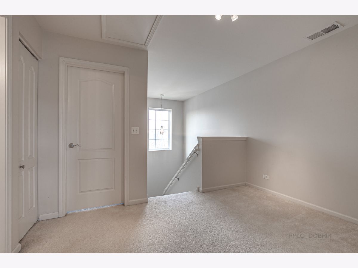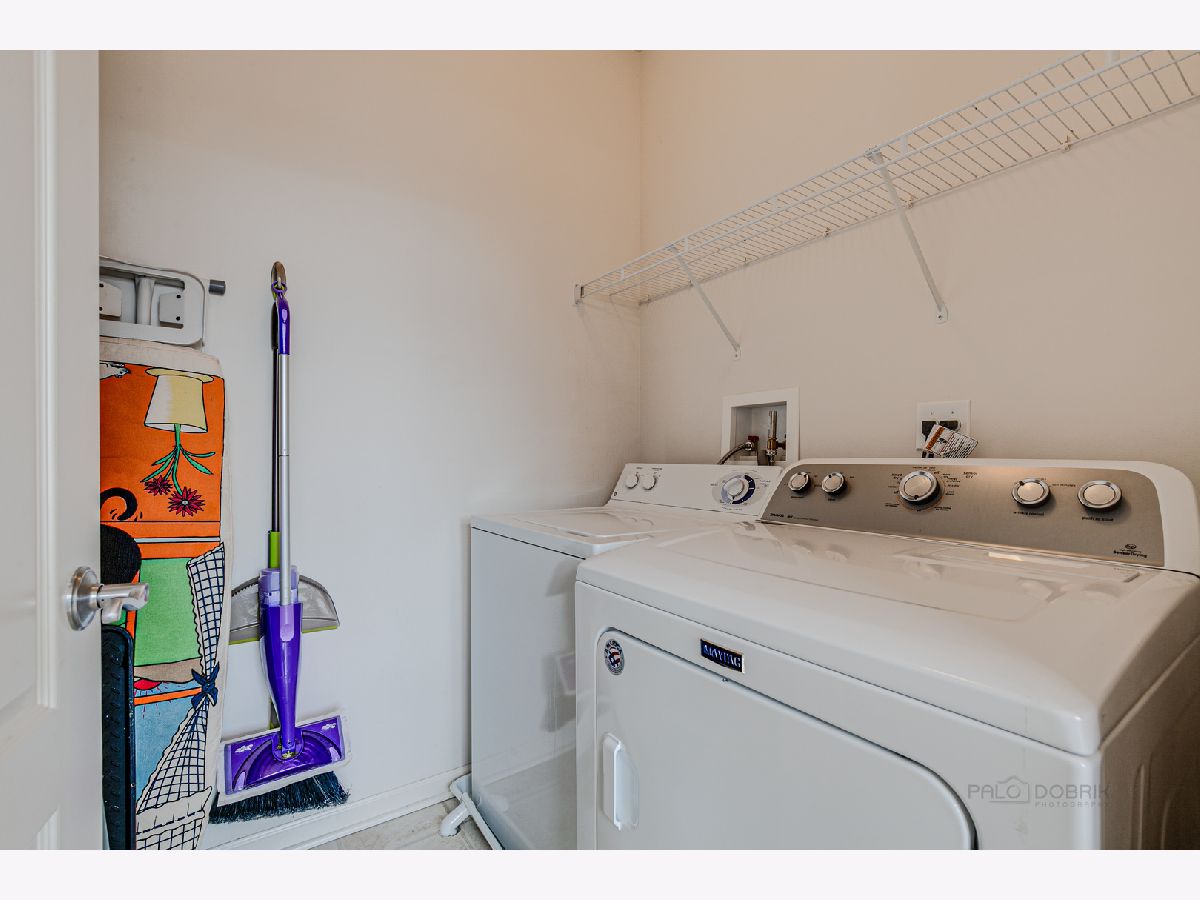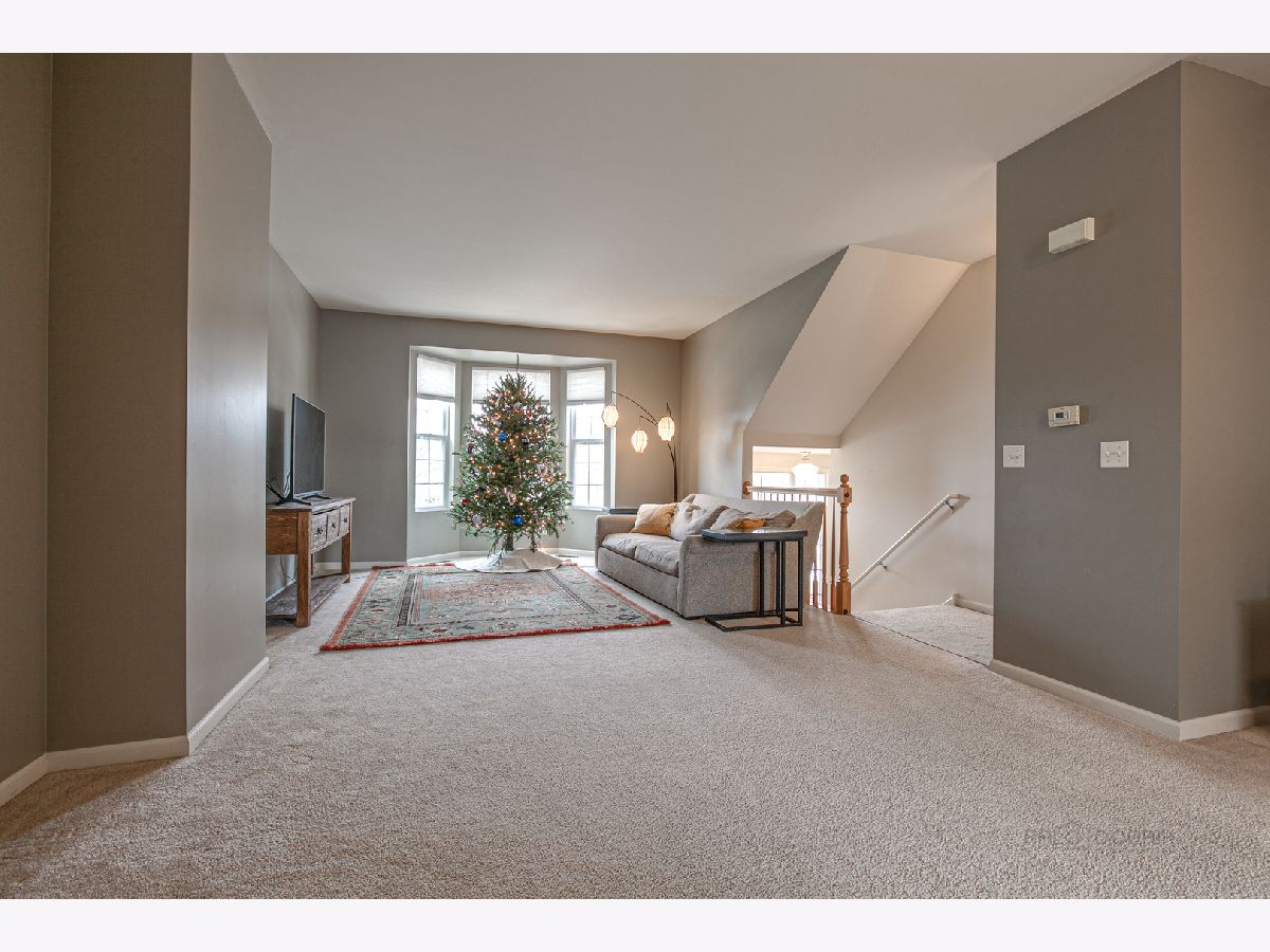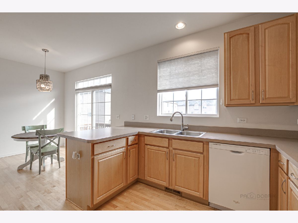 This beautiful 2 bedroom 2.5 bath Chicago model townhome with 2 car garage is move-in ready! Townhome features spacious living room with plenty of natural light, plus a bay window and panoramic views of Village Station's park and gazebo. Hardwood floors in the bright kitchen and breakfast room, with ample cabinet, counter and breakfast bar space. Sliding glass doors lead to a balcony for your grill and patio table. Convenient main floor laundry room with washer and dryer. Upstairs loft is perfect for a home office or child's play area. Large, relaxing master bedroom suite with walk-in closet and full bath with dual-sink vanity. Finished English basement with additional bay window offers a 3rd bedroom or family room. Quick walk to Metra and Lake Street Bean Coffee. Award-winning Grayslake schools nearby. (Taxes do not reflect homeowner exemption). Priced to be an exceptional value. See it today!