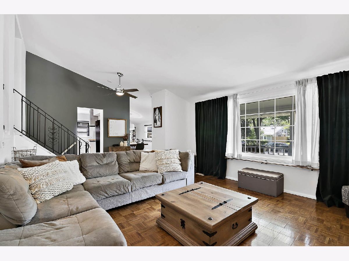 Wonderful 4 BR home with lovely front porch and gardens located in the Ballantrae neighborhood! Welcoming entry opens to the spacious Living Room featuring a vaulted ceiling, beautiful parkay floors and large picture windows letting in plenty of light! You'll enjoy cooking in the updated open concept Kitchen offering white cabinetry, stainless steel appliances and Belgium slate floors! The Kitchen opens to the Dining Room with vaulted ceiling, parkay floor and large windows! The second level offers the spacious Primary Bedroom and 2 additional bedrooms with generous closet space/organizers, as well as a beautifully remodeled Bathroom! The lower level offers a flexible floorplan! It has a fourth Bedroom with a large closet located at the entry, this room can alternately be used as a fantastic Family Room! The Office with built-ins in the lower level has a closet so could alternately be used as a Bedroom! There is a 2nd full Bathroom which has been recently remodelled as well! Lots of closets, storage/crawl space and a large Mudroom/entry from the large fenced backyard!! Full size laundry! Attached 2 car garage! Convenient location!