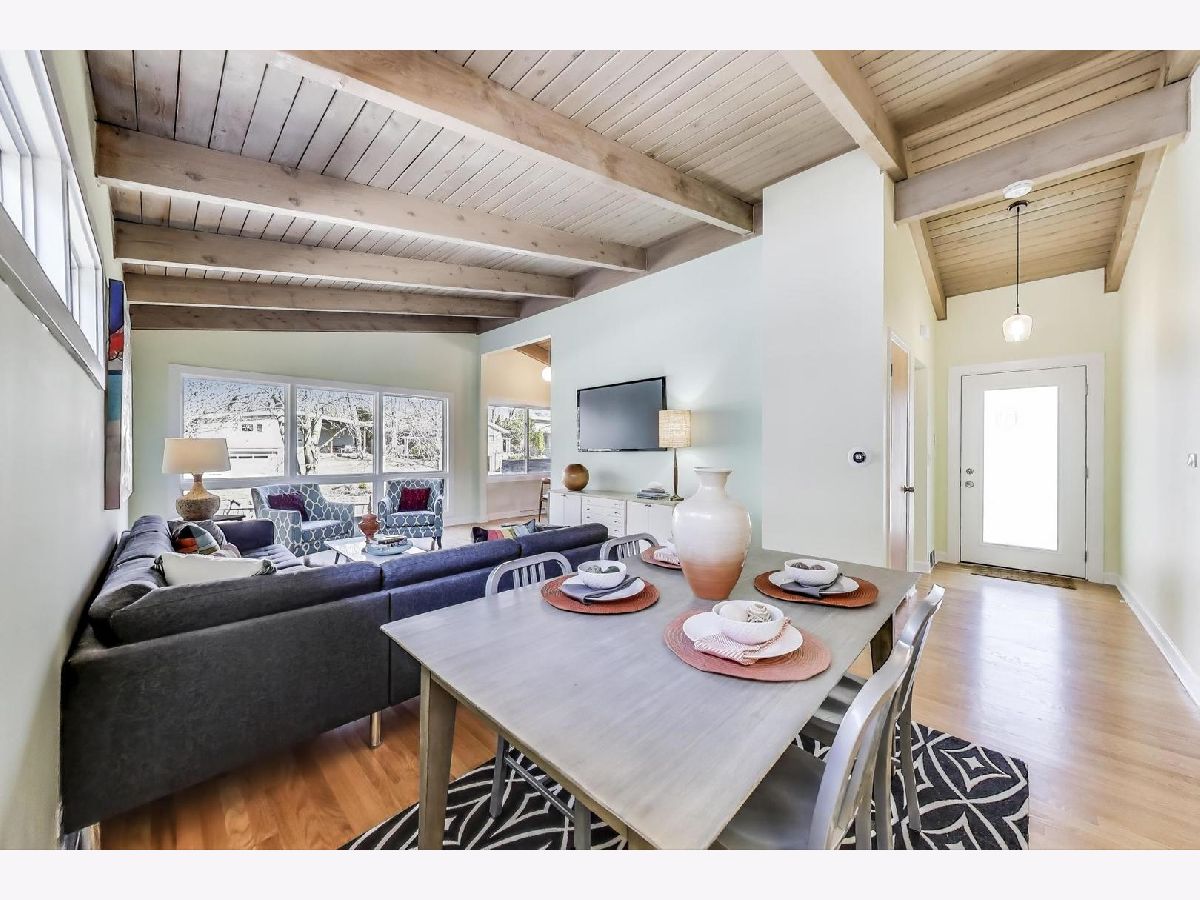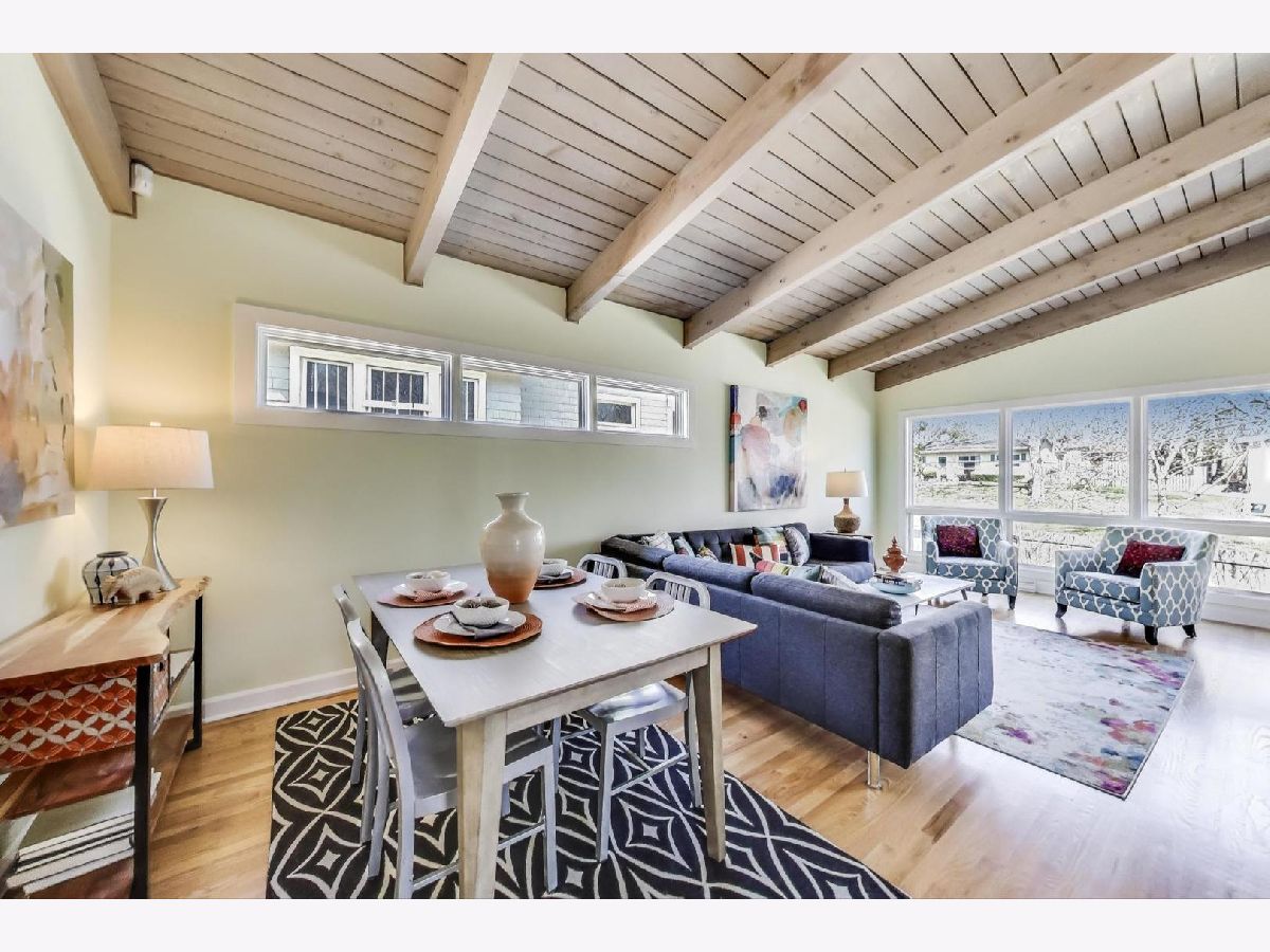 Sunny Corner Retreat in Ravinia - Beautifully Updated & Walkable. This inviting mid-century, three-bedroom, corner home welcomes you with streams of natural light, vaulted ceilings with wood beams, warm hardwood floors, and a thoughtfully designed kitchen, which opens to a spacious gathering area perfect for family and friends. Step outside to discover the joy of location - stroll to Ravinia shops, restaurants, and the train in just minutes. Enjoy morning walks to Rosewood Beach, St. Johns Trail, the summer Ravinia Farmers' Market, or evening walks to Food Truck Thursdays. On the weekend head off to nearby adventures at Ravinia Festival, the Chicago Botanic Garden, or Highland Park's charming downtown. Or stay home and enjoy your garden, full of native plants - a natural sanctuary from the hustle of daily life. Tucked away on the quiet, non-track side of the street, this move-in ready home offers carefully selected updates such as new energy-efficient Marvin windows and ProVia doors (2024), a new Bosch dishwasher (2024), and a newer roof (2019). In a lovely neighborhood, near wonderful schools, and all the North Shore has to offer, this house is a perfect blend of comfort, convenience, and peace of mind.
