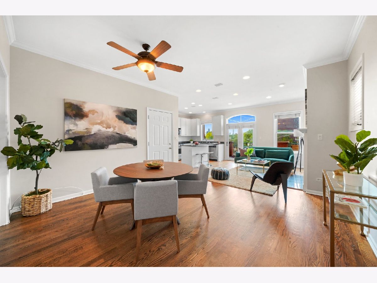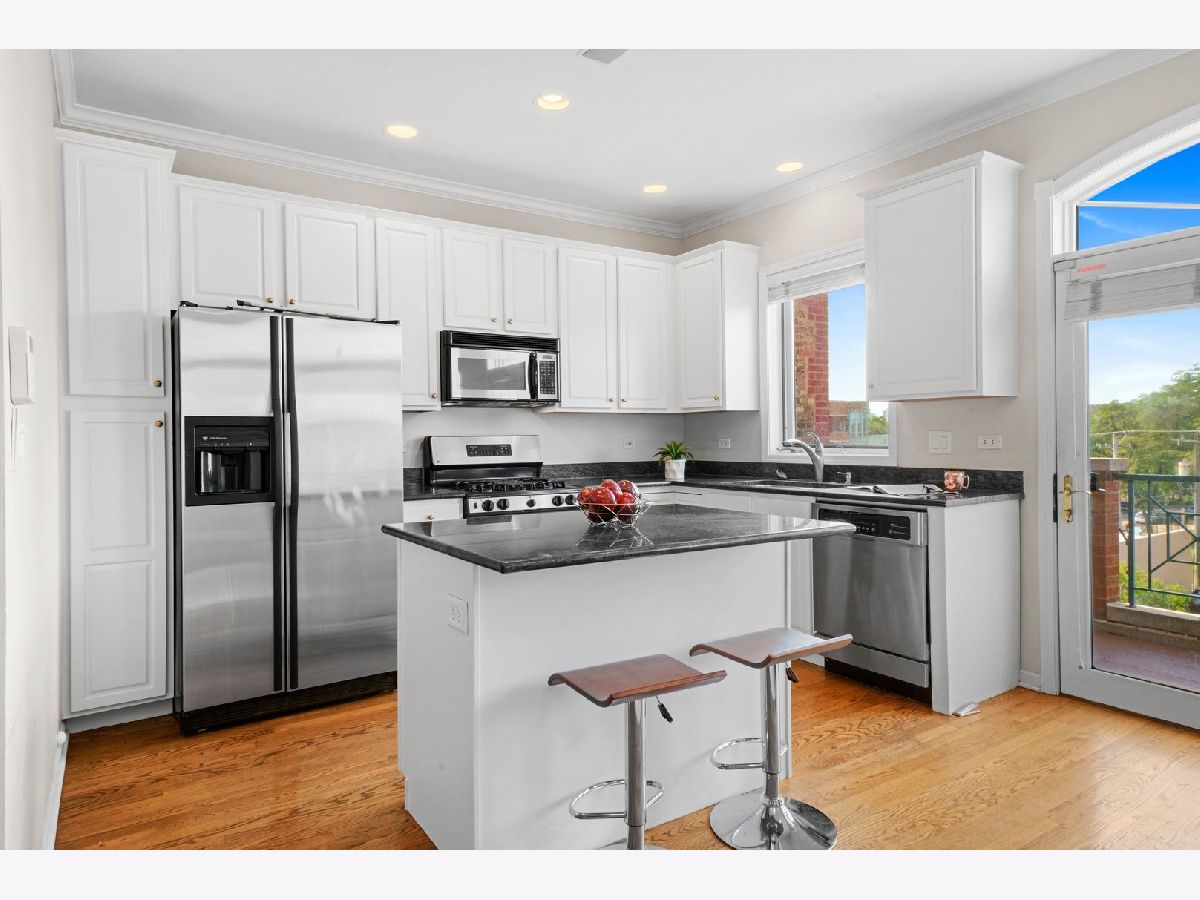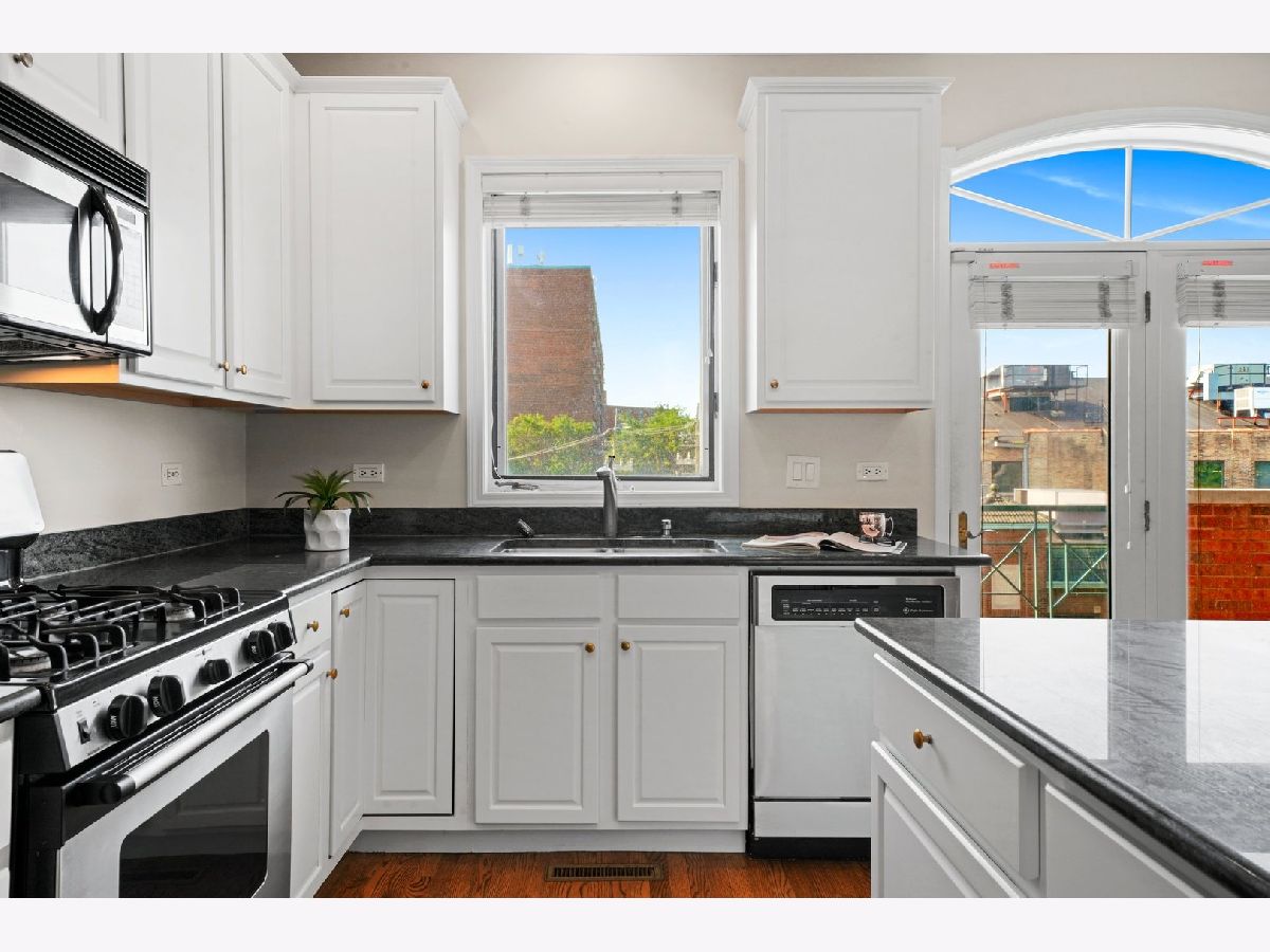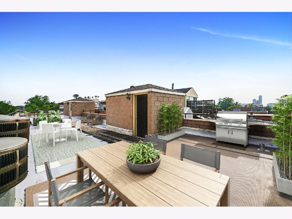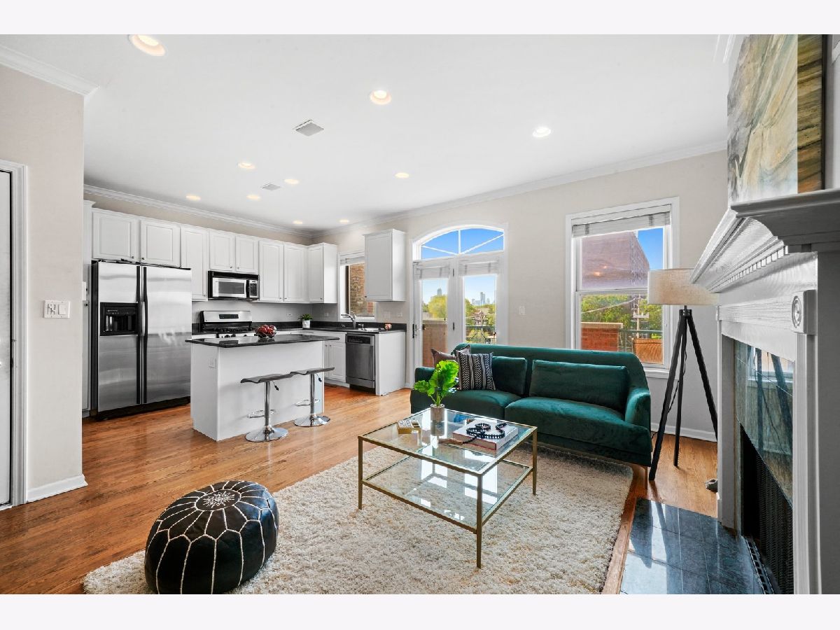 Super bright, impeccably maintained Lincoln Park penthouse- 3 bedroom/ 2 bath with 3 outdoor spaces including a private, rooftop deck. White cabinetry, granite countertops, stainless steel appliances with breakfast bar. The kitchen opens to a separate dining area and large living room with fireplace and front terrace spanning the entire width of the condo. The primary bath includes a dual vanity with separate shower and soaking tub. 3 private outdoor spaces including front terrace, private deck off the primary bedroom, and a top floor, private rooftop deck with incredible skyline views [new tile decking over a brand new roof in 2020]! Additional private storage in building; in-unit washer/ dryer and 3-car parking including 1 attached garage and 2 back-to-back outdoor spaces [tandem]. This condo is steps to everything that Lincoln Park and Lakeview offer: from public transportation a block away, restaurants, shops, Trader Joes, and Depaul University.