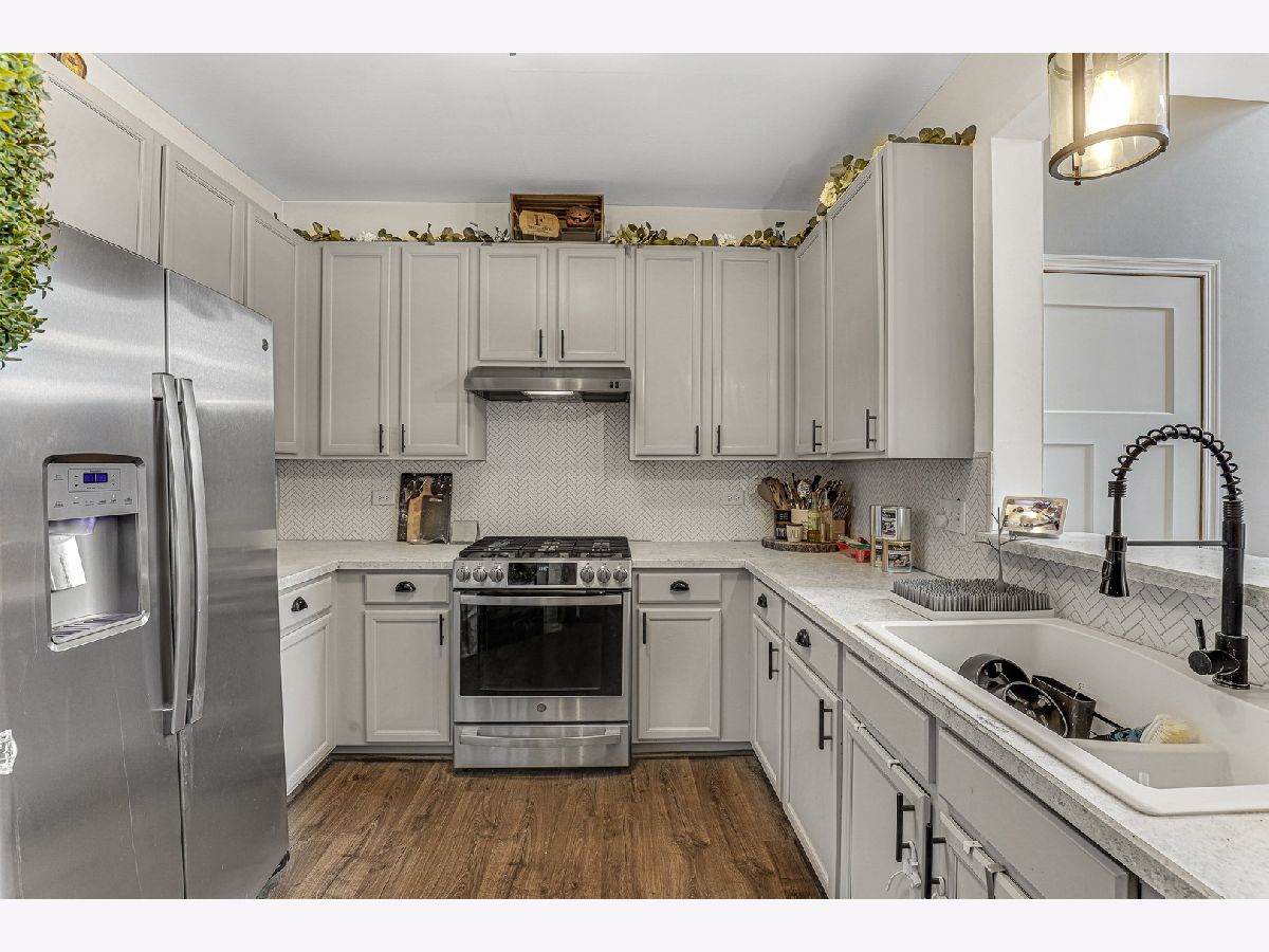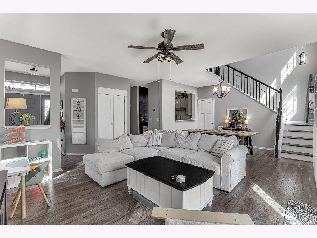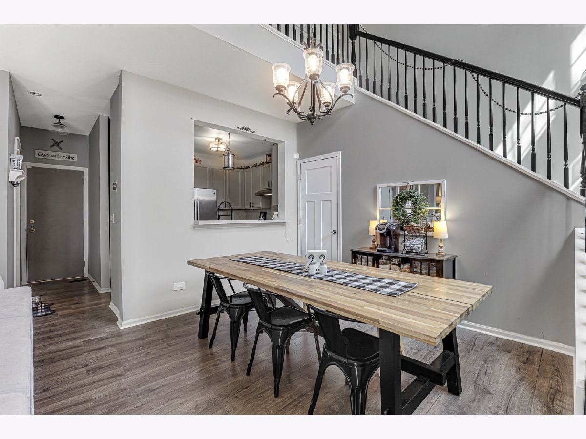 MULTIPLE OFFERS RECEIVED, OFFER DEADLINE 3/27 at 6pm This premium end unit has been lovingly maintained and updated and is ready for a new owner! Enjoy fresh, modern colors with tons of natural light and a backyard and porch that opens to an expansive green space! Inside the volume ceilings extend the open concept main floor to new heights, while the farmhouse style decor - including shiplap accent wall, craftsman style trim, and rustic LVP floors - keeps the vibe closer to earth. Comfort and style continue their dance into the kitchen, with a custom pantry, stainless steel appliances, new backsplash, and country-modern cabinetry! The pass through window to the dining room makes for easy entertaining and allows the cook to remain part of the conversation! The first floor finishes with a fully remodeled powder room, including new vanity and sink in the same charming style! Upstairs the master suite will surprise and delight, vaulted ceiling, newer bathroom with shower and soaker tub, and finishing with an ample walk in closet with organization system! Bedrooms 2 and 3 are ample and equally charming, and the whole second floor features brand new carpeting! Close to I355, I80, walking trails, and New Lenox grammar schools, this is the perfect starter home or dapper downsize - come see it soon, homes don't last long in this neigborhood!