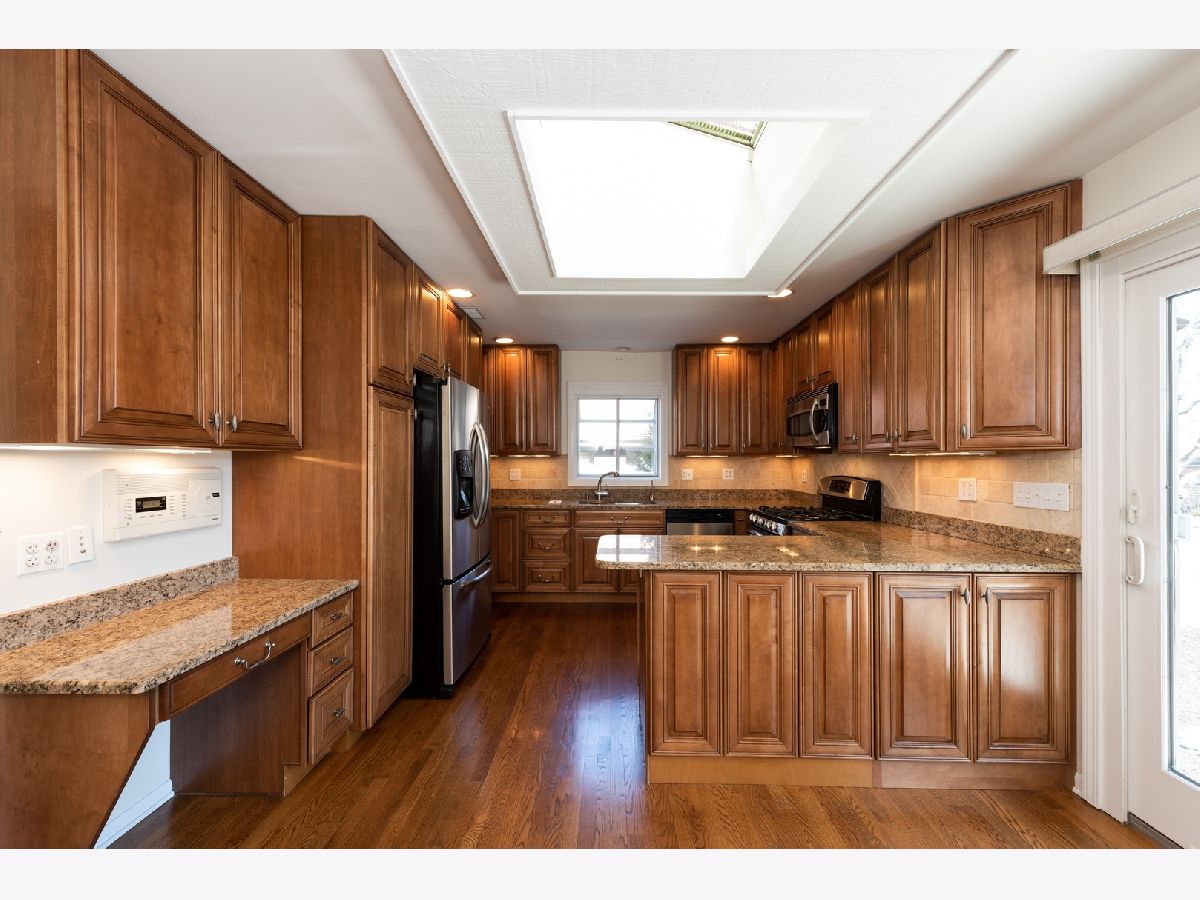 Perfect Park Ridge Family Home! Freshly updated and completely move-in ready. Come in and enjoy your family friendly, stunningly finished and abundantly sunny home. First, be impressed with the welcoming entry way, elegant living room and dining room with cathedral ceilings and large bay window. Then, you are drawn to the inviting gourmet kitchen with stainless steel appliances and granite counter tops. Meals are delicious in your spacious eat-in breakfast room, as you overlook the generously sized family room with wet bar and fireplace. If it's the outdoors you want, then use the large sliding doors from either the family room or kitchen and step out onto your lush backyard with lovely patio that will make you not want to come back inside. There are hard wood floors throughout the first floor, as well as, a private office/fifth bedroom. The second floor doesn't disappoint with four spacious bedrooms, two full baths and very generous closets. Enjoy the large master bedroom with fireplace and ensuite bath. Finished lower level has a fireplace, full bath with steam shower and laundry room. Circular drive and deep, two car garage with adjacent mud room. In Franklin school, Emerson school and Maine South High School district.