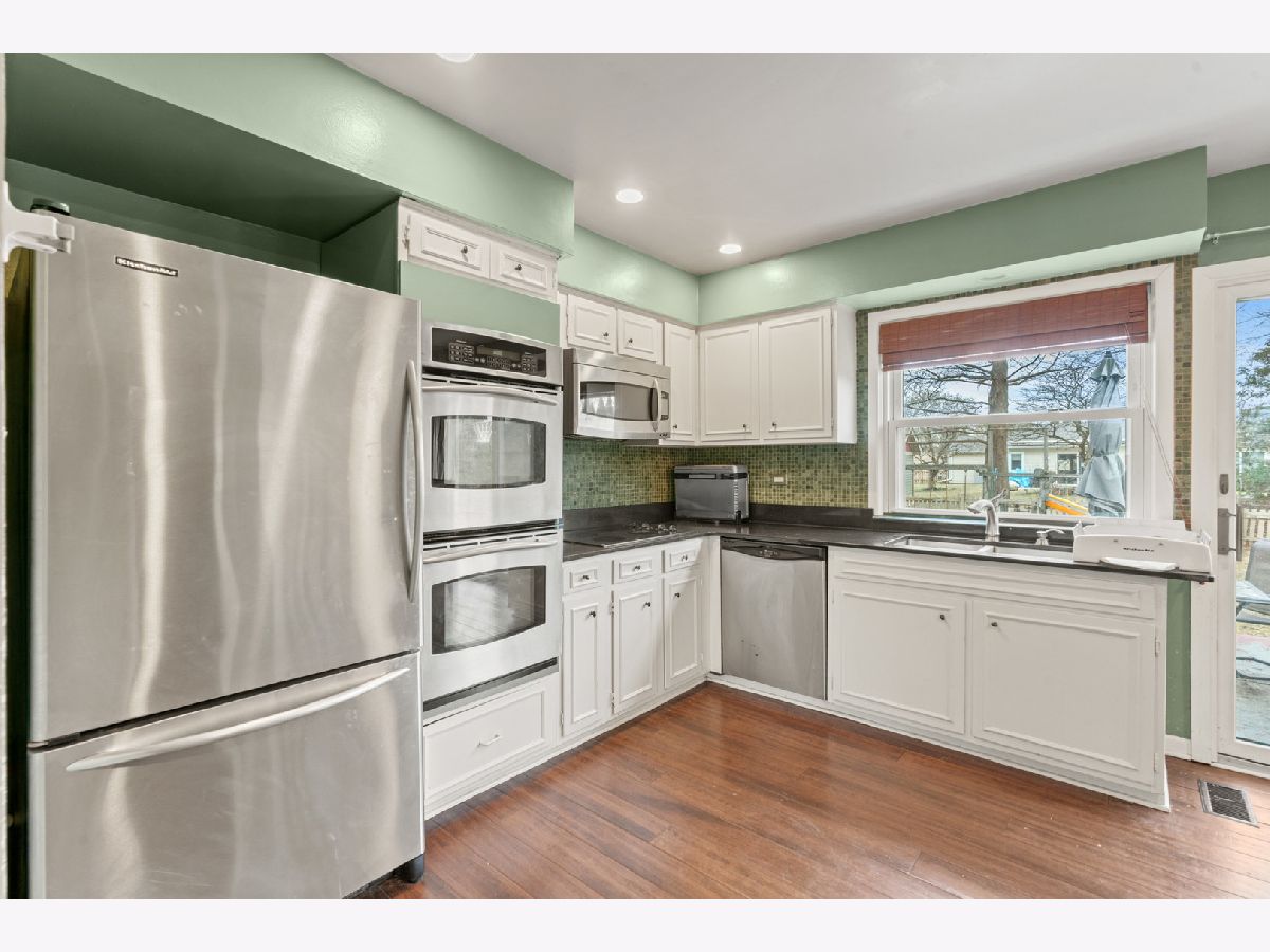 Flooded with natural light, this beautifully updated split-level home offers the perfect blend of style, comfort, and functionality. Step inside to find hardwood floors throughout, a bright and airy eat-in kitchen with stainless steel appliances, and plenty of storage to keep everything organized. The spacious primary bedroom features ample closet space and easy access to the updated upstairs bathroom with a dual vanity. The lower level, with newer carpet (2023), is designed for both relaxation and entertaining, offering a large family room with a wood-burning fireplace and gas start, a fourth bedroom, a full bathroom, and a convenient laundry area. The home is also wired for an EV charger for added convenience. Outside, the fenced backyard is perfect for outdoor gatherings, with plenty of space to enjoy the seasons. A new shed (2023) provides additional storage, and the water heater was replaced in 2023, ensuring peace of mind. Ideally located near parks, forest preserves, shopping, and dining, this home truly has it all. Don't miss your chance to make it yours-schedule your showing today!