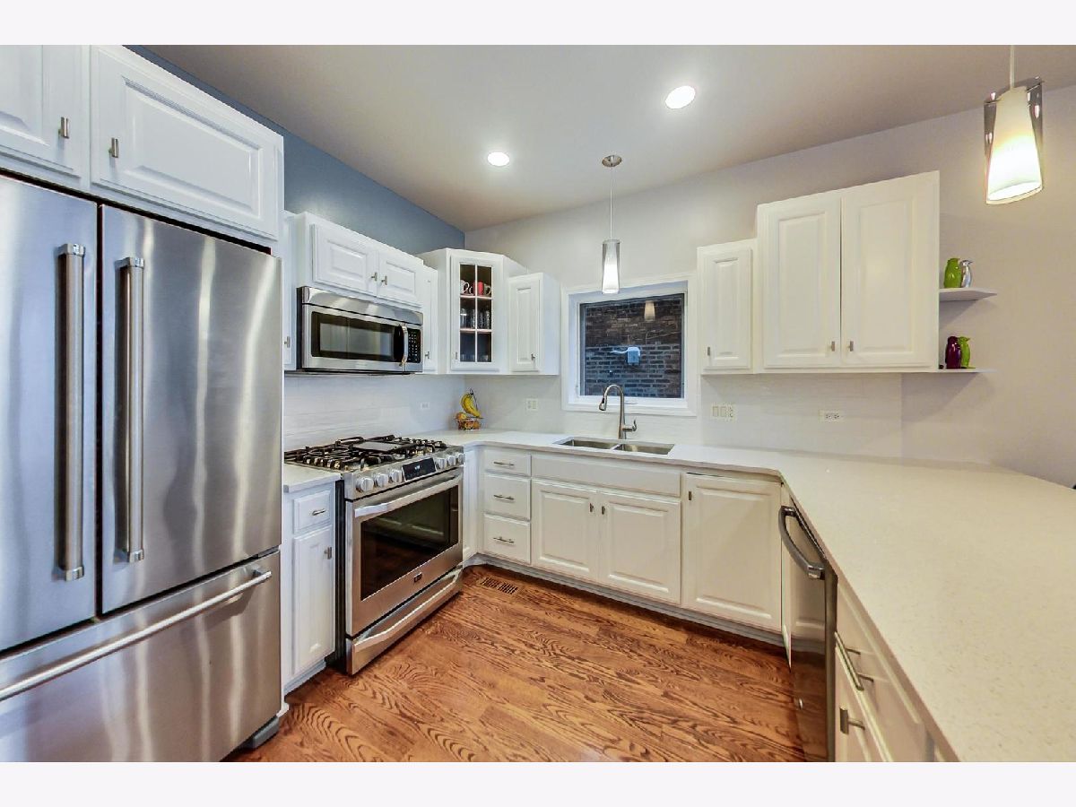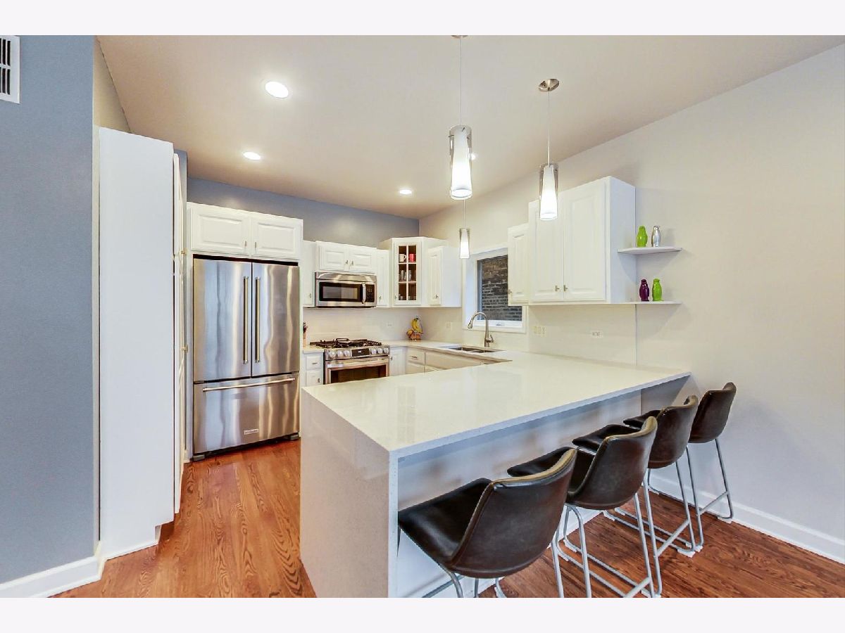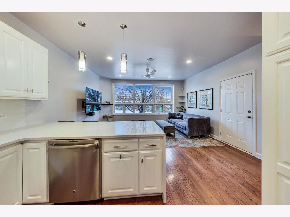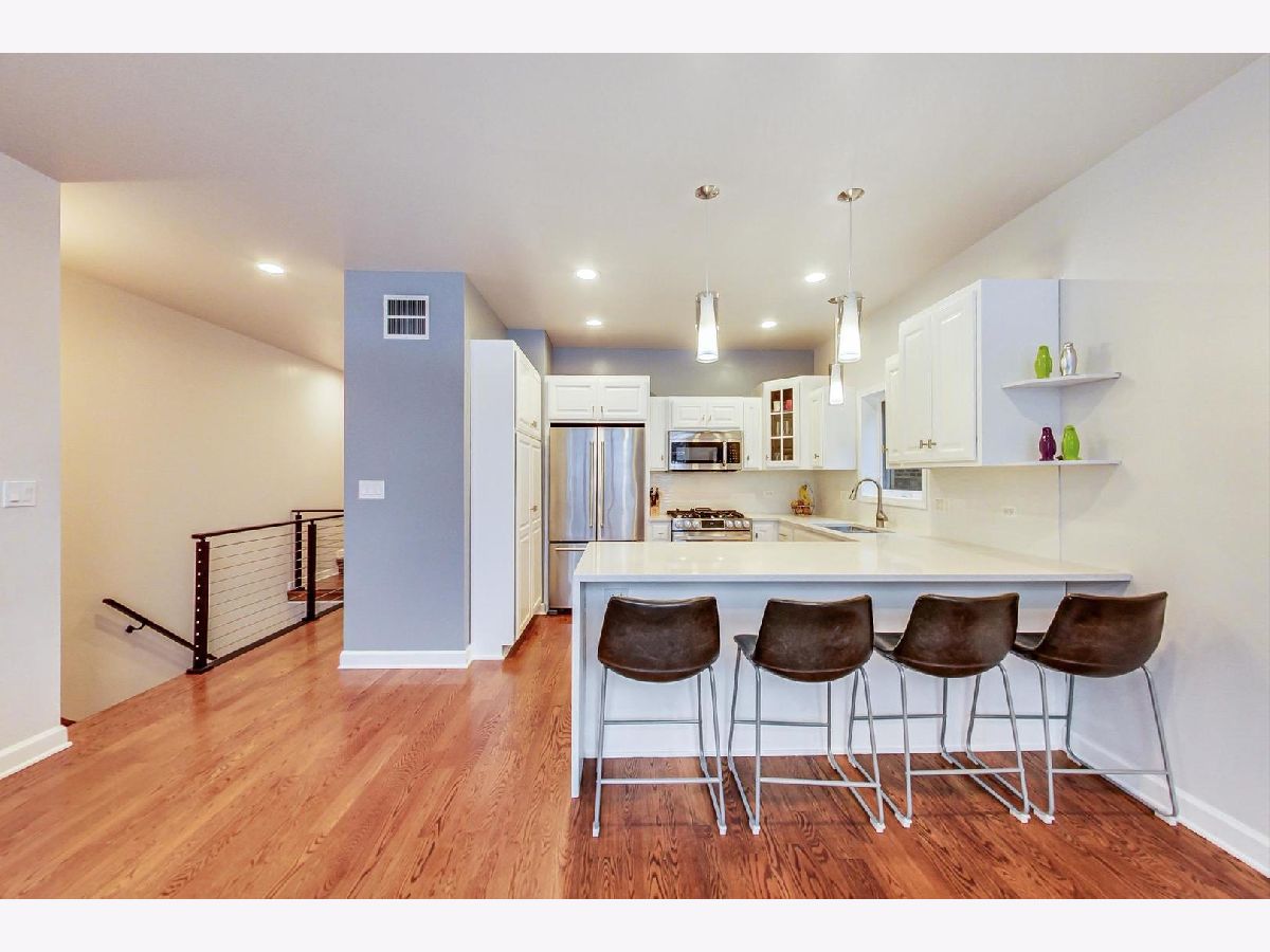 **TAKE A VIRTUAL 3D TOUR** Rare opportunity to get in on this ready to move-in, upgraded duplex in the heart of Pilsen. 1 garage parking and 1 outdoor parking included! Remodeled kitchen and baths! Bright open kitchen with upgraded white Quartz countertops extended down to the floor, and a brand new LG stove. The large attached island lends itself to easy entertaining and an open floor plan combines the kitchen into the living/dining space on the main level. Primary bedroom with fully renovated and upgraded en suite bathroom. Walk-in shower expanded in size, new tile throughout, new double sink vanity and fixtures, and the addition of ceiling tile. Enjoy living areas located on both levels and a gas fireplace creates a great ambiance in the family room. The railing has been updated to a sleek & modern style. New decking on the expansive outdoor terrace that has a sunny southern exposure. New ceramic tile on the lower level. Elevated ceiling heights of 9' on the main level and just over 9' on the lower level produce a truly open feel. Walk-in laundry room that includes full-size, side by side LG washer and dryer. Located within walking distance to shops, restaurants, public transportation as well as close proximity to major streets and highways.
