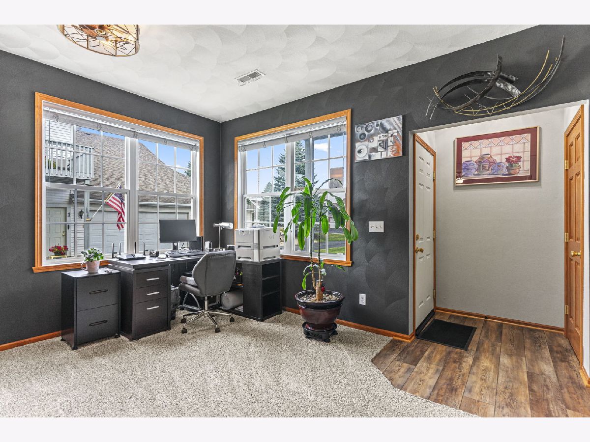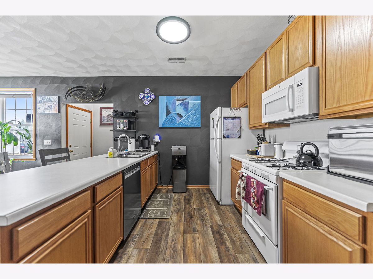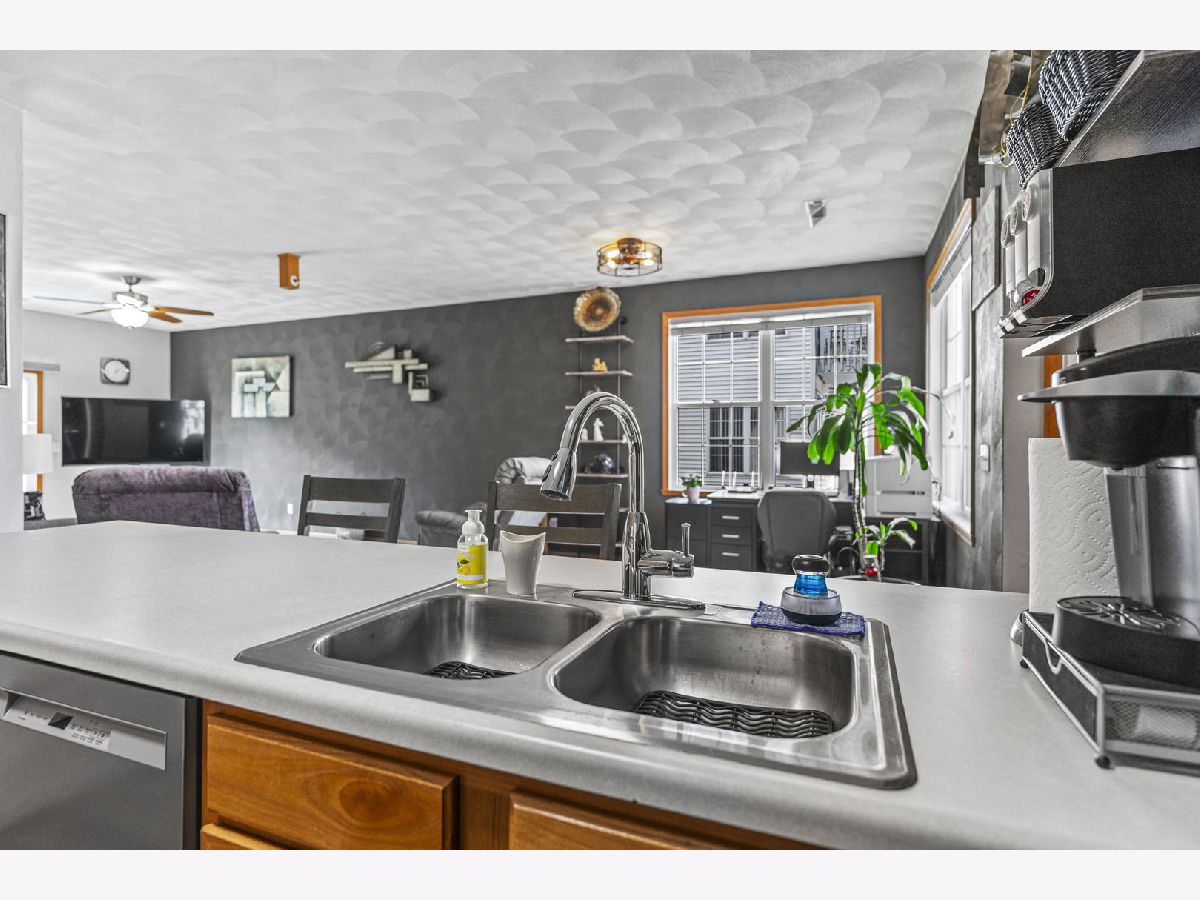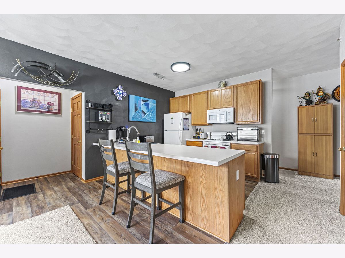 Meticulously Maintained Lower-Level Condo in a Prime Location. This beautifully cared-for condo offers 1,376 square feet of comfortable living space. Step into the inviting foyer and enjoy the open floor plan with laminate floors, a spacious living room, and abundant natural light. The living room seamlessly connects to the dining room and kitchen, creating the perfect space for relaxing or entertaining. The kitchen boasts updated appliances, a breakfast bar, ample cabinet and counter space, and a convenient pantry. The condo includes two spacious bedrooms. The primary bedroom offers a walk-in closet and en-suite full bath, while the second bedroom is outfitted with cozy carpet and generous closet space. A second full bath in neutral decor adds to the functionality and appeal. At the end of the hallway, you'll find a utility room equipped with a washer, dryer, and water softener. Updates in 2023 include: flooring, water heater, water softener, dishwasher, washer, dryer, storm door. Updates in 2024 include: blinds and curtains, carpet, bathroom faucets, showerheads, mirrors, light fixtures, and new ceiling fans and new garage door springs in 2025.