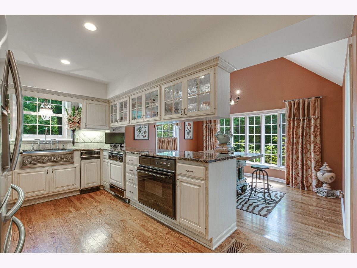 A quick close is possible on one of the best streets in Libertyville! Thornbury Village is precisely one of those coveted locations by those "In the Know". An enchantingly updated and expanded vintage home on 2 wooded acres offers beauty, privacy and convenience. Tucked just minutes away from Libertyville's vibrant downtown, it's a hidden gem nestled amongst forest preserves and an extensive trail system, yet just a snap to the train station and expressways. This 4,200+ square foot charmer is resplendent with big rooms, great light, hardwood floors, 4 fireplaces, and a huge master suite with a fireplace, huge walk-in, and a skylit bath that defines luxury. A flowing floor plan lets you take in all the views this special property has to give and offers architectural delights that include French windows and doors, vintage mantels, and carefully conserved elements of the original home. There are many places to enjoy great moments in life - a large dining room with fireplace and bay window...Library with fireplace...Great room with a huge fireplace and spectacular, 1850's fireplace surround that was salvaged from a southern plantation home. In addition, there are modern touches like a 2nd floor addition offering an exercise room, hobby room, and a lovely laundry. The kitchen and breakfast room are a sunny and warm space with granite counters, bay window, and volume ceiling. On the outdoor side of life, you'll enjoy a huge 3 season porch, extensive gardens, a deck with flagstone knee wall and a big garage. It's true seclusion, plus award-winning Libertyville schools! Take a drive up the long, winding driveway, step inside and enjoy the tranquility. Arrange for your private viewing, and get ready to enjoy the good life!
