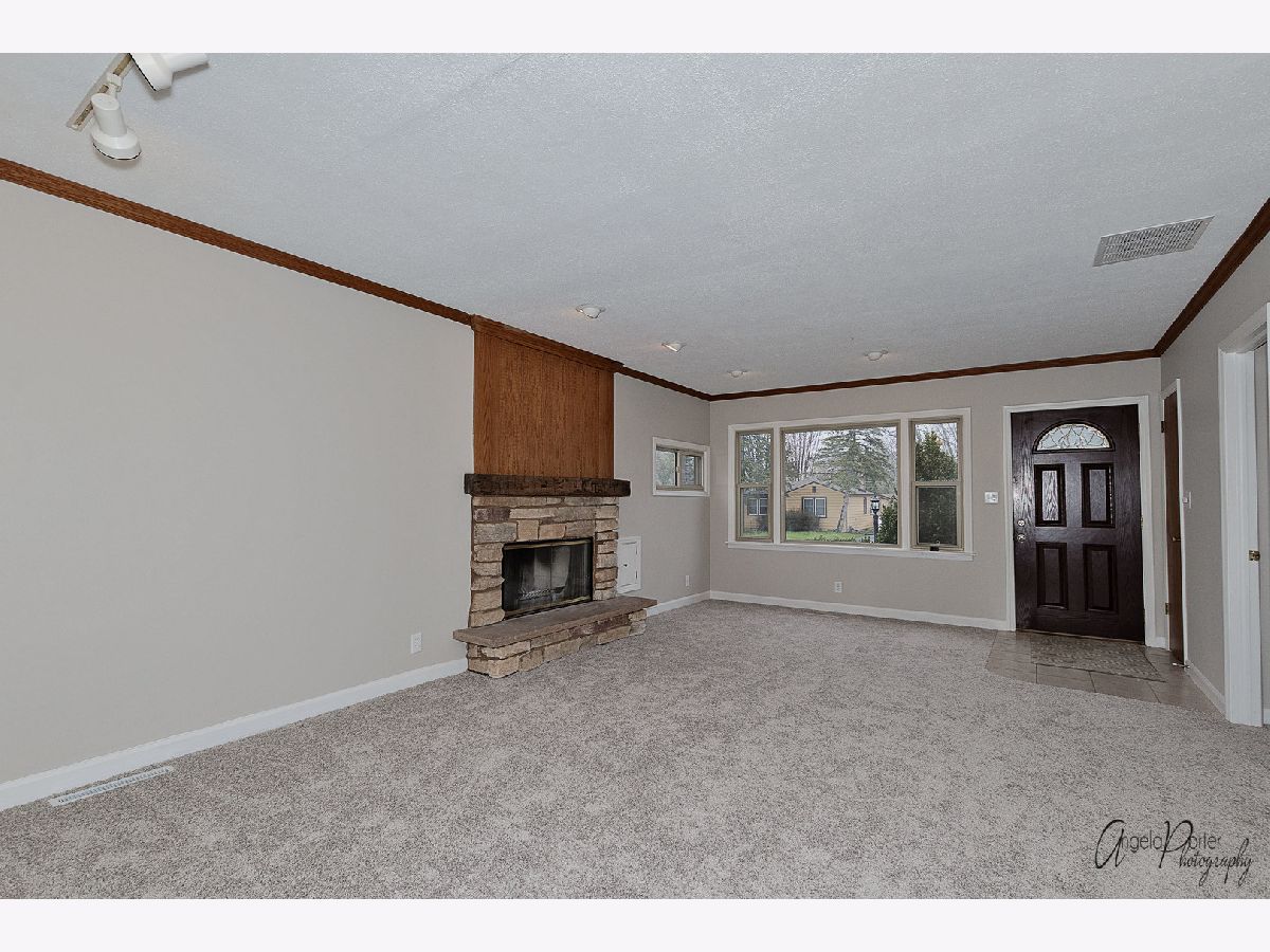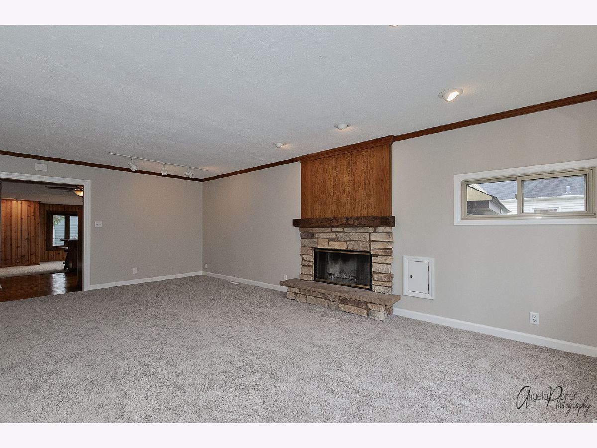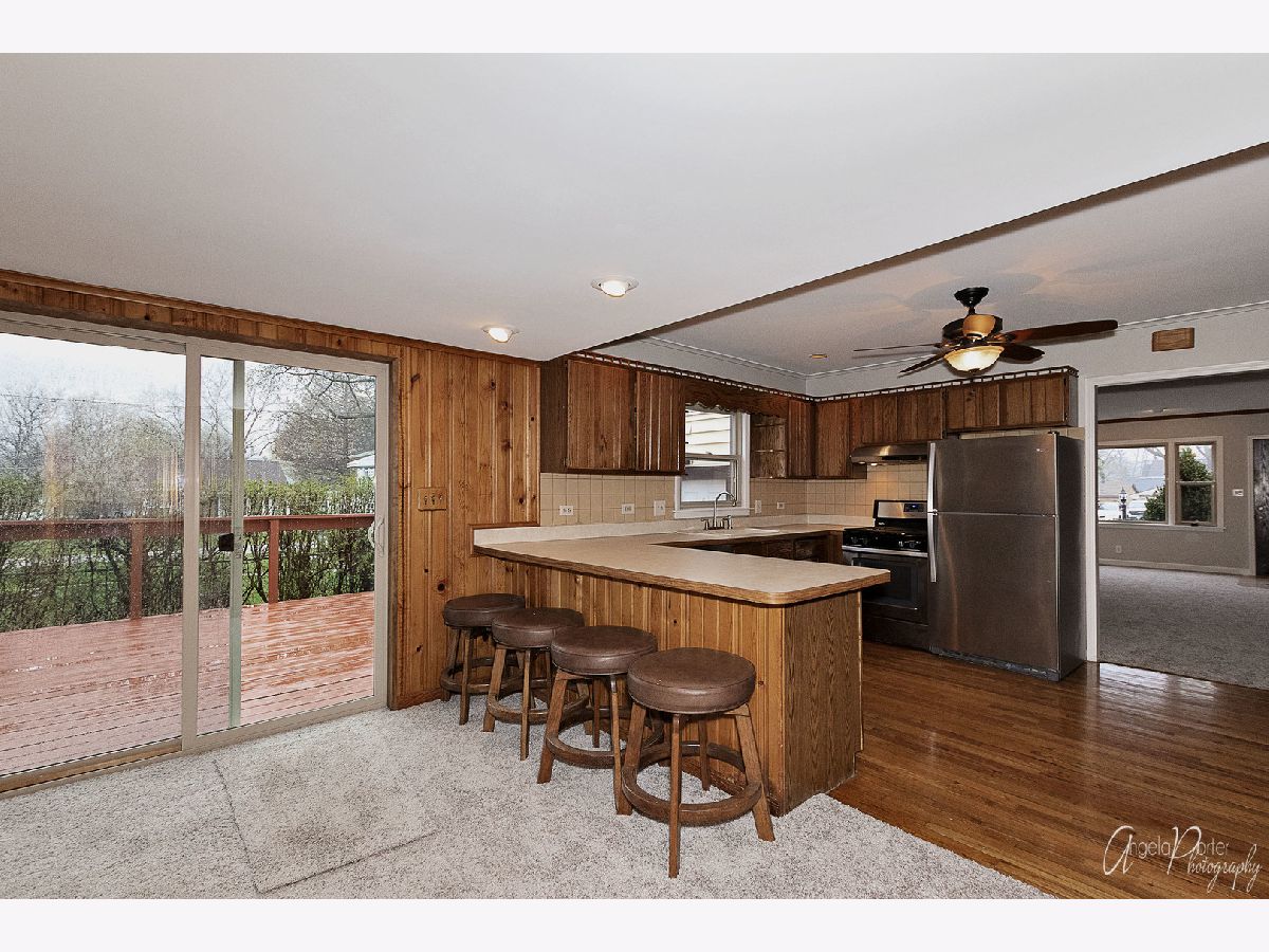 Ranch with Lake & Beach Rights! Fresh Paint & New Carpet throughout. Large Living Room w/crown molding, Fireplace and Picture window. Kitchen with Hardwood Floors, Breakfast Bar, Plenty of Cabinets & Stainless Steel Appliances; Stove, Refrigerator & Dishwasher. Spacious Sized Eating area with Window seat overlooking the Back yard. Patio Door going out to a large Deck. Laundry Room with utility tub and washer/dryer included, folding table & cabinets. Detached Garage, Shed, Fenced Yard, Dog Kennel, Fire Pit & Large Deck. Steps to Beautiful Forest Preserve!