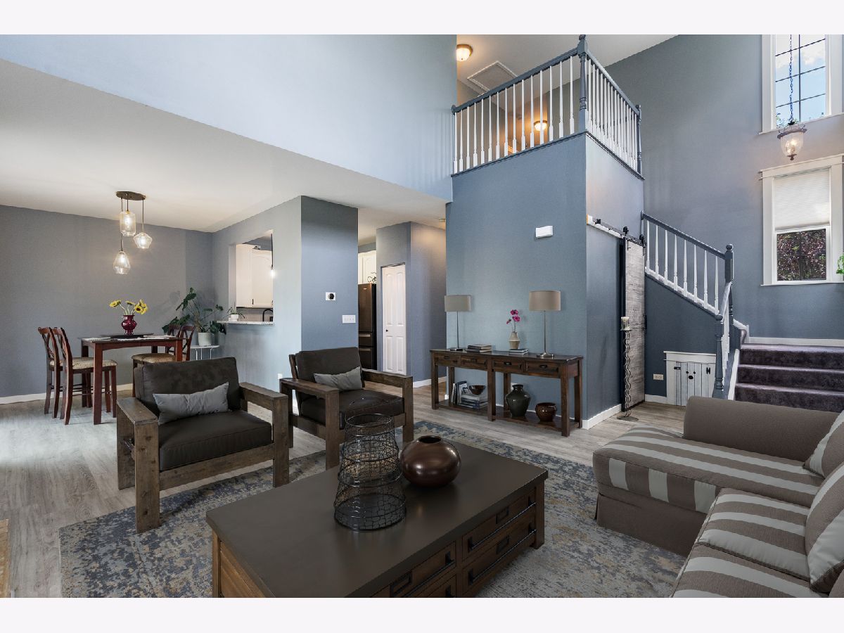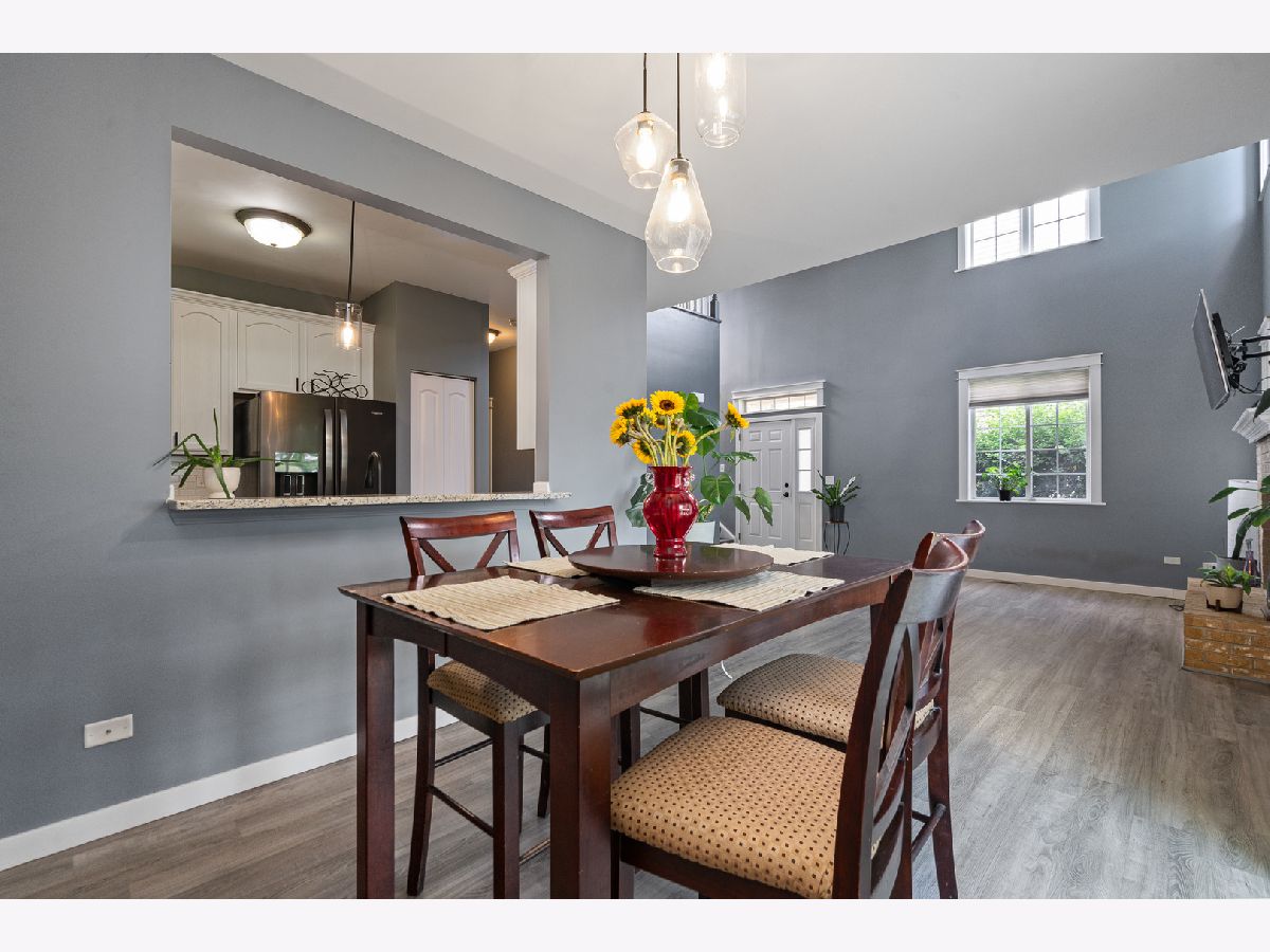 Prepare to be impressed by this beautifully updated and meticulously maintained 3-bedroom, 2.5-bath end-unit townhome located in a sought-after neighborhood served by award-winning New Lenox elementary schools. Offering the perfect blend of style, space, and comfort, this home features an open and airy floor plan with luxury vinyl plank flooring throughout and a dramatic two-story living room with a cozy gas-start fireplace that sets the tone for elegant living. The stunning kitchen boasts 42-inch white cabinetry, dark stainless steel appliances, granite countertops, and a pantry closet-ideal for any home chef. The adjacent dining area features a brand-new Anderson patio door that opens to a concrete patio with expansive views of the huge yard and serene open space-perfect for outdoor entertaining or peaceful relaxation. The main level also includes an updated powder room and a convenient laundry room complete with a utility sink. Upstairs, you'll find a spacious loft that overlooks the living room below, a vaulted master suite with a large walk-in closet and private bath, and a second full bath with an oversized shower. Additional highlights include a two-car attached garage, a new air conditioner (2023), new water heater (2021), and a brand-new garbage disposal (2025). With easy access to interstates, shopping and dining, this home is a rare find that combines luxury, functionality, and location. Don't miss it!