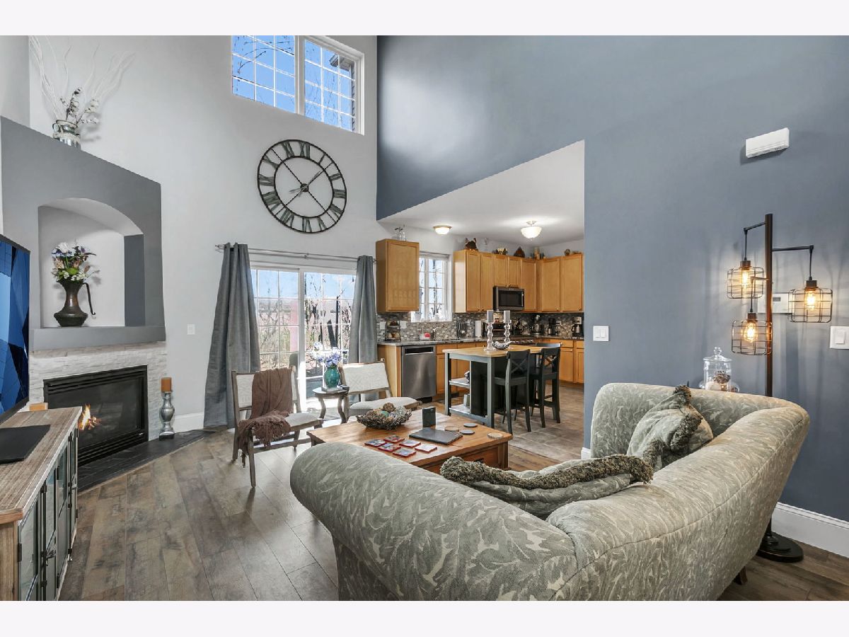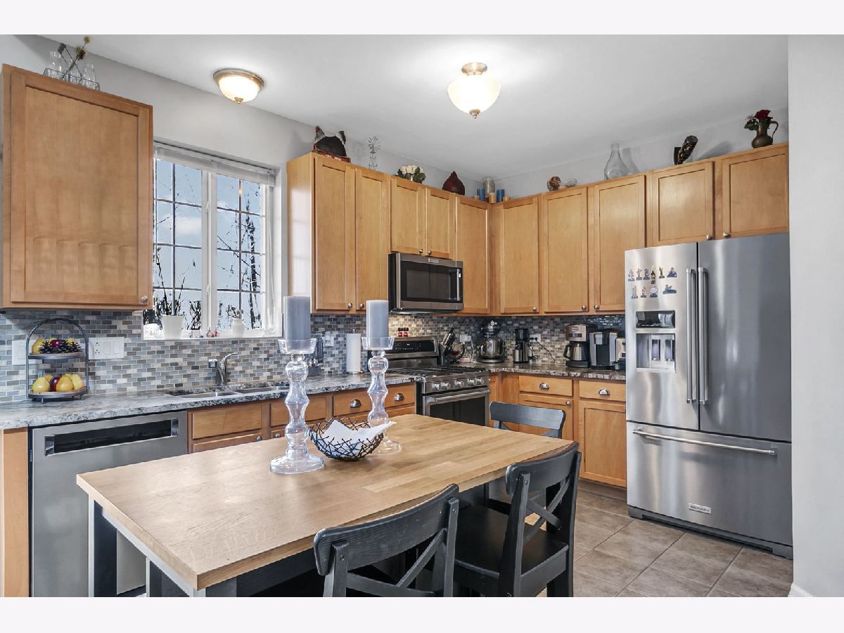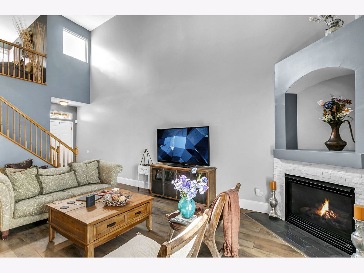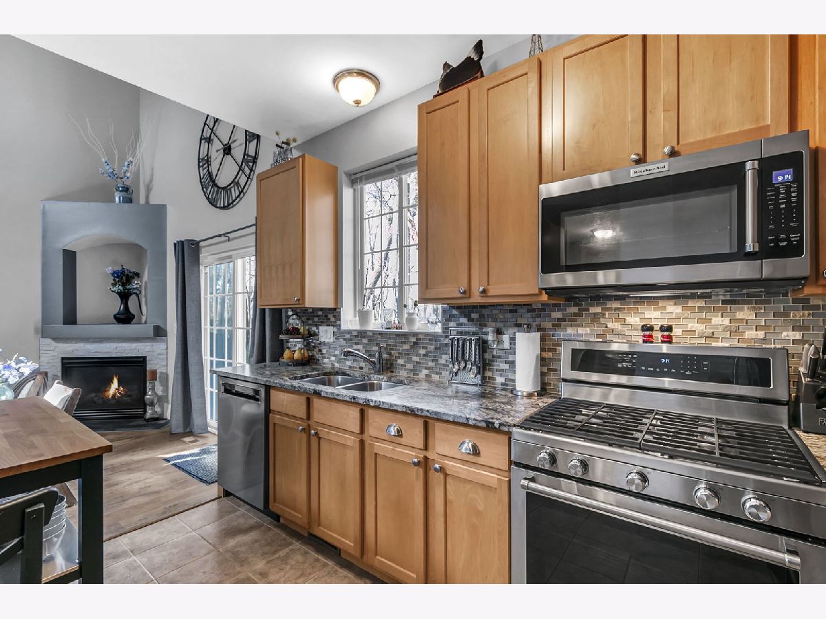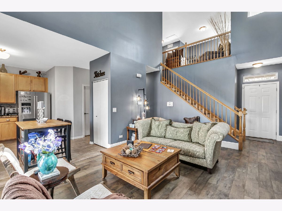 Wonderful townhome with over $22k in original upgrades for Premium Lot backing to wooded area, Custom Fireplace, Ensuite Primary Bath, and Upgraded 42" Maple kitchen cabinets. A simple open floor plan perfect for decorating and entertaining. Enjoy a huge Living Room w/soaring 2-story Vaulted Ceiling, cozy newly updated Fireplace surround and sliding glass doors leading to quiet, tranquil patio overlooking woods and walking path. The large Eat-in Kitchen, perfect for a counter height table/chairs, features new KitchenAid Stainless Steel Appliances (2020), KitchenAid Fridge (2022) and stylish newer Granite Counters with Custom Tile Backsplash! You'll also find a convenient 1st floor powder room, laundry/utility room and attached 2 car garage with lots of storage. A lovely decorative staircase leads you upstairs featuring a large Primary Bedroom with Double Closets, Lighted Ceiling Fan and Remodeled Bath with Custom Tile Surround (2019). In the 2nd Bedroom you'll find sunny windows, Lighted Ceiling Fan, and convenient Hall Bath. Lastly, you'll find a great Loft, perfect for Study, TV, or just a place to relax. Newer Wood Flooring in LR, BRs and Loft and lovely paint colors throughout! Updated HWH (2021), Garage Door Opener (2022). Convenient location minutes to shopping, schools, 10 minutes to Metra stations, less than 2 miles to I355. Easy to Show. Check us out today!