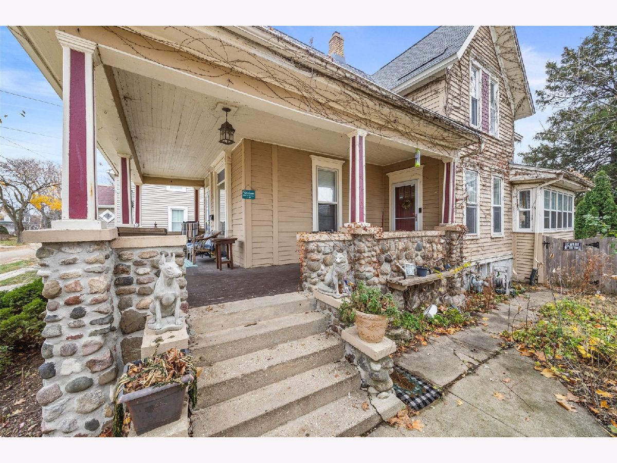 Wow! Great opportunity to own this beautiful vintage home in the very popular North East end of Elgin! Just a block to the bike path, Fox River and very quick access to I-90! Awesome wrap around front porch great for summer nights with cobblestone accent on exterior! Updated kitchen with custom 42" maple cabinetry, planning desk, tile backsplash! Separate formal dining area with custom built ins! Cozy living room with picture window and crown! 1st floor den/possible 4th bedroom with double French doors and direct access to full remodeled bath with walk in shower and oversized vanity! Back enclosed porch with wall of windows and built in bench seating great for unloading before entering the home! Large master bedroom! Gracious size secondary bedrooms and 3rd bedroom has a walk in flex play/craft room overlooking the backyard! Updated 2nd floor hall bathroom! Full unfinished basement great for storage! Awesome deep fenced lot! Oversized 2 1/2 finished garage! Separate brick patio area! Warmth and character through out! Quick access to downtown and train! Make this your dream home!