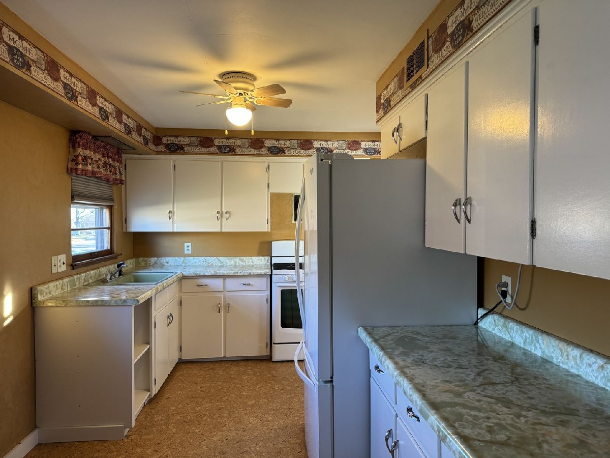 Look at this GEM! It is a precious 2 bedroom, 2 bath ranch home with spacious dining room and living room. Large master bedroom has updated flooring, a nice sized closet and 3/4 bath. Main bathroom was updated in 2022. Kitchen has an abundance of cabinets that are freshly painted. The dining room could be converted back to a 3rd bedroom if desired. There are several hardwood floors, some freshly painted rooms, new light fixtures and ceiling fans. New furnace 2020, AC 2021. 1 car detached garage and garden shed. The quiet neighborhood and large backyard complete this great property.