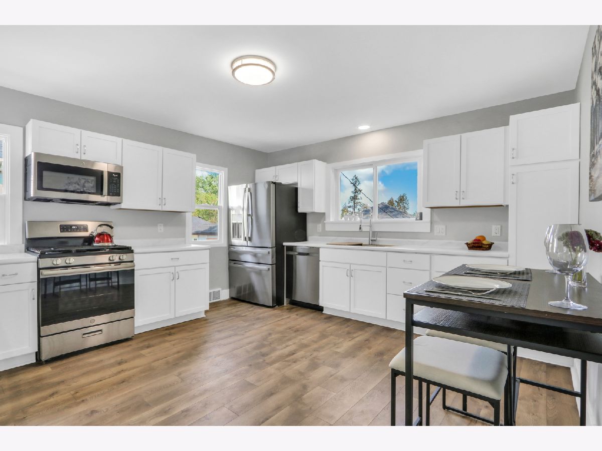 This highly appealing and updated 4 BR/3BA home is in a great location for your family, or small business, or combination of both. Features include new Kitchen Cabinets, Countertops, SS sink/faucet, newer SS appliances, All New Flooring, refinished Hardwood Floors upstairs, tray ceiling in DR, large bay window in LR, huge sunlit 4 season porch, first floor Master BR with on-suite, plus 2 additional remodeled bathrooms, laundry space on main floor and in the finished basement, Wet Bar with a new beverage fridge and granite tops, new driveway in 2021, new HVAC in 2020, new gutters, newer roof, siding and exterior doors, new 3 panel mission interior doors, and fresh paint throughout. Has over 1/4 acre with private fenced backyard, YET....Walk 1 block to Happening Downtown Antioch! Home can be repurposed for commercial use or keep a residence. Antique sales, professional office space, hair salon, candy shop, are all possible uses. Immerse your family in all things Antioch with this location. DQ visits, parade parties, fireworks viewing, downtown shopping, etc... and just 2 Blocks from Antioch HS. All for under $300k! Don't Miss Out - Will Go Fast!