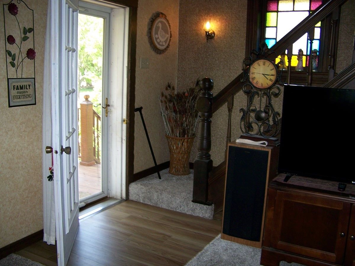 We have just listed this historic home known as the Kenzie property in an ideal location on the north side of Fairbury. Close to Prairie Central High School, Stafford swimming pool, walking trail and Fairview Haven Nursing Home this roomy 4 bedroom, two bath home has numerous recent updates including kitchen with breakfast counter all new appliances and beam ceiling plus dining area with wet bar, office area new flooring and beam ceiling; formal dining room with new laminate flooring and beam ceiling; living room with French Doors that open onto wrap around front and side porch, open stairway and also has beam ceiling and new flooring; family room with fireplace and patio doors; remodeled bath and utility room that opens onto the side porch. All of this is on the main level. A second bath with the 4 bedrooms is on the second level. Full basement. 2.5 car attached garage. For summer enjoyment there is a 24x4 above ground heated swimming pool with dining area that is all ready for you to jump in. It has a 20x30 privacy deck off the dining area. All newer replacement windows. New roof in 2021. High efficiency gas furnace with central air is 11 years old. This beautiful home has had all the major items completed and if you like plenty of room in a great north side location make that call today.
