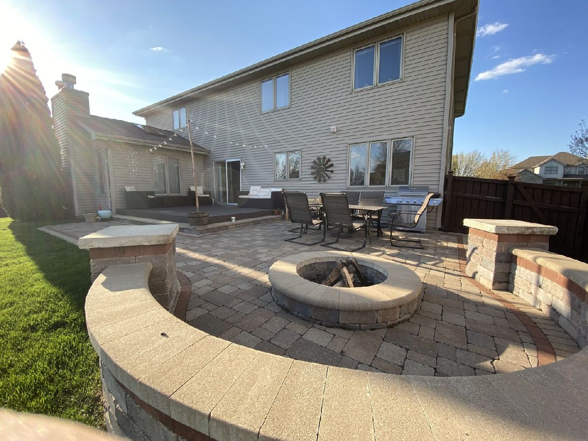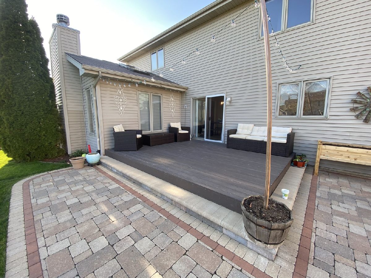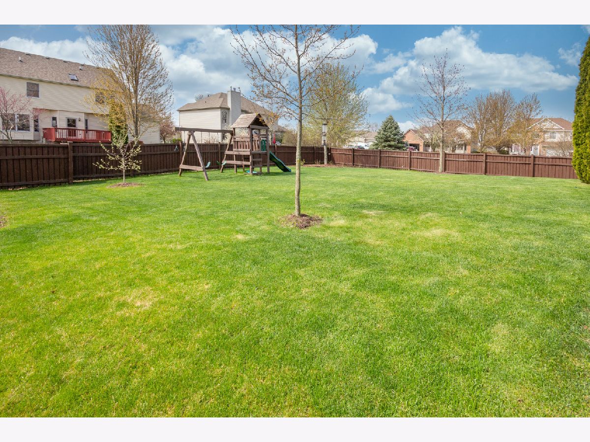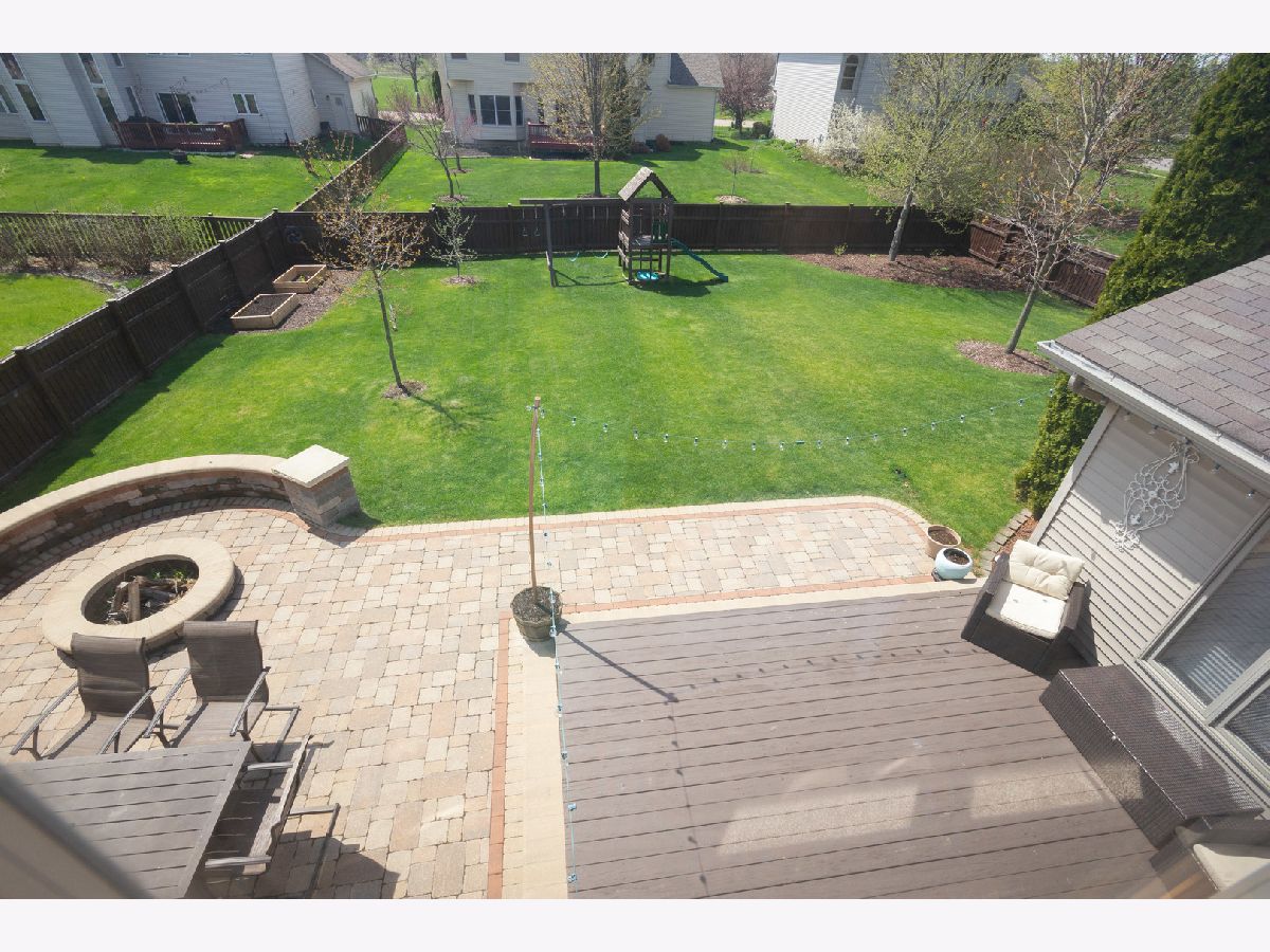 This almost 3,000 sf Deerpath Creek gem is right around the corner from one of the neighborhood parks and is on a cul de sac that bumps up to the nature preserve with a beautiful walking path. Inside this brick front home, you will be greeted with on trend white trim, new white quartz counters & a coordinating, updated back splash, stainless appliances, a new deep stainless sink & faucet. The beautiful, updated lighting highlights this fantastic kitchen where entertaining easy! The A/C & water heater are new, the hardwoods are upgraded with a dark trim accent and the focal point in the vaulted family room is the beautiful fireplace with a custom, floor to ceiling stone surround. There are skylights in the family room and the upstairs bathroom allowing for so much natural light. The first floor has a private office, 1st floor laundry room and spectacular powder room with bowl sink. Upstairs you will find 4 large bedrooms with the master boasting a walk in closet and its own private bathroom with double sinks, a jetted tub & separate shower. The carpet throughout the home is newer, the paint is fresh, 3/4 bedrooms have ceiling fans/lights and the front bedroom has new plank, vinyl flooring and a knock out custom window treatment. The basement is finished and has a separate room for storage with built in shelving and a large workbench. Wait until you see outdoor oasis in the private, fenced backyard! The owners updated & expanded the patio area to include an additional gathering space with a sitting wall and a built in fire pit. This beautifully designed, custom, outdoor area provides privacy and plenty of room for everyone! The three car garage has so many cabinets, automatic openers on both garage doors, an access door to the backyard and a nice full driveway. This house is a complete package and will not disappoint!