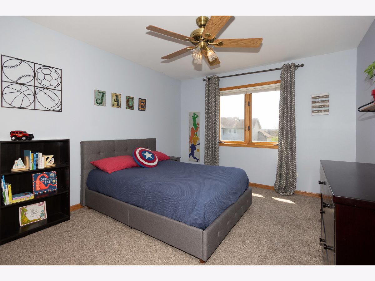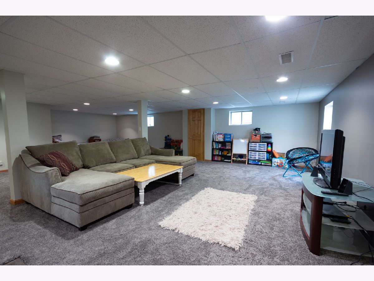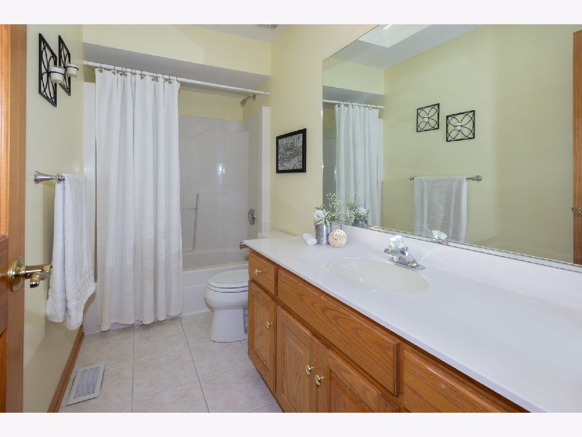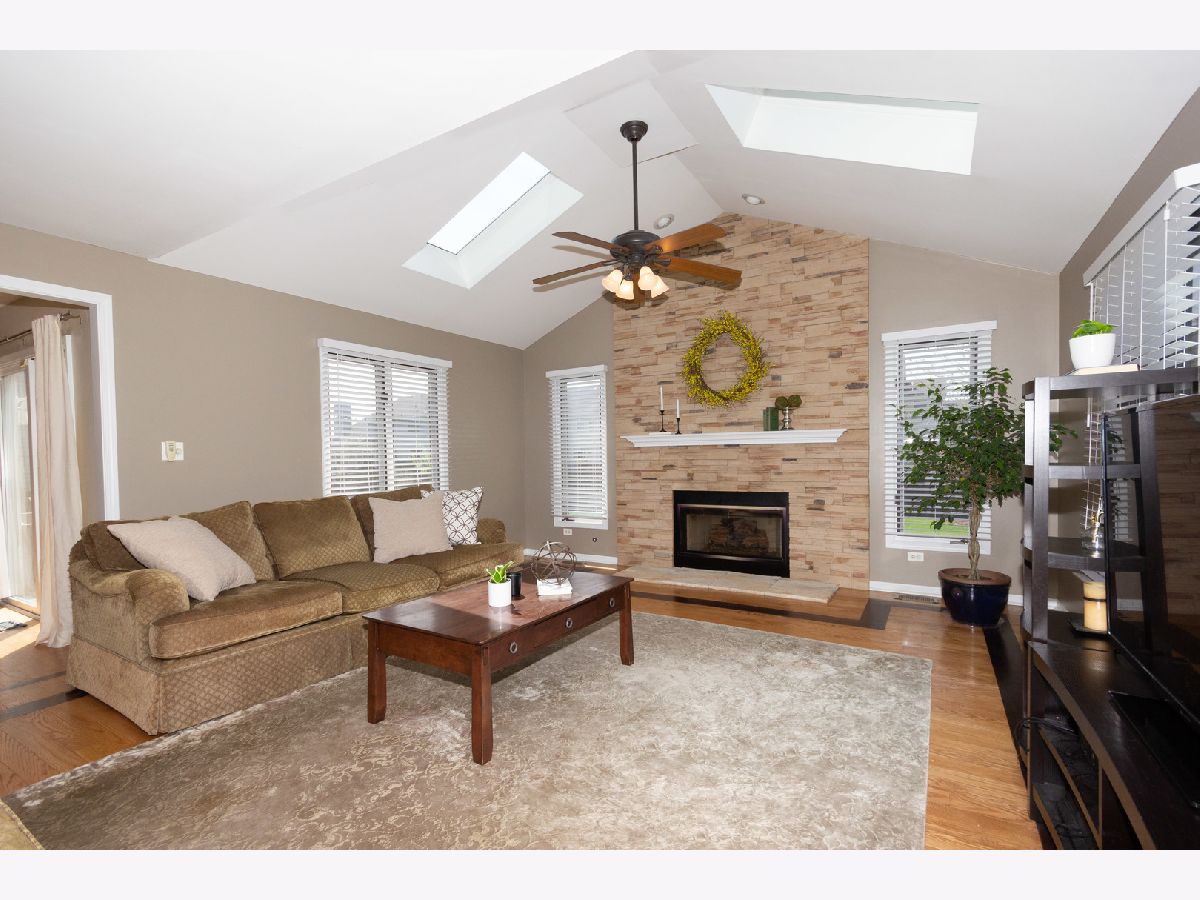 This almost 3,000 sf Deerpath Creek gem is right around the corner from one of the neighborhood parks and is on a cul de sac that bumps up to the nature preserve with a beautiful walking path. Inside this brick front home, you will be greeted with on trend white trim, new white quartz counters & a coordinating, updated back splash, stainless appliances, a new deep stainless sink & faucet. The beautiful, updated lighting highlights this fantastic kitchen where entertaining easy! The A/C & water heater are new, the hardwoods are upgraded with a dark trim accent and the focal point in the vaulted family room is the beautiful fireplace with a custom, floor to ceiling stone surround. There are skylights in the family room and the upstairs bathroom allowing for so much natural light. The first floor has a private office, 1st floor laundry room and spectacular powder room with bowl sink. Upstairs you will find 4 large bedrooms with the master boasting a walk in closet and its own private bathroom with double sinks, a jetted tub & separate shower. The carpet throughout the home is newer, the paint is fresh, 3/4 bedrooms have ceiling fans/lights and the front bedroom has new plank, vinyl flooring and a knock out custom window treatment. The basement is finished and has a separate room for storage with built in shelving and a large workbench. Wait until you see outdoor oasis in the private, fenced backyard! The owners updated & expanded the patio area to include an additional gathering space with a sitting wall and a built in fire pit. This beautifully designed, custom, outdoor area provides privacy and plenty of room for everyone! The three car garage has so many cabinets, automatic openers on both garage doors, an access door to the backyard and a nice full driveway. This house is a complete package and will not disappoint!