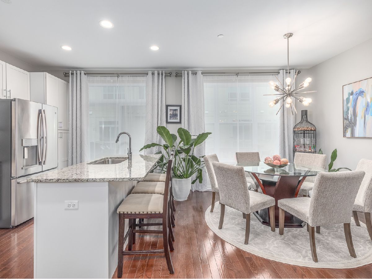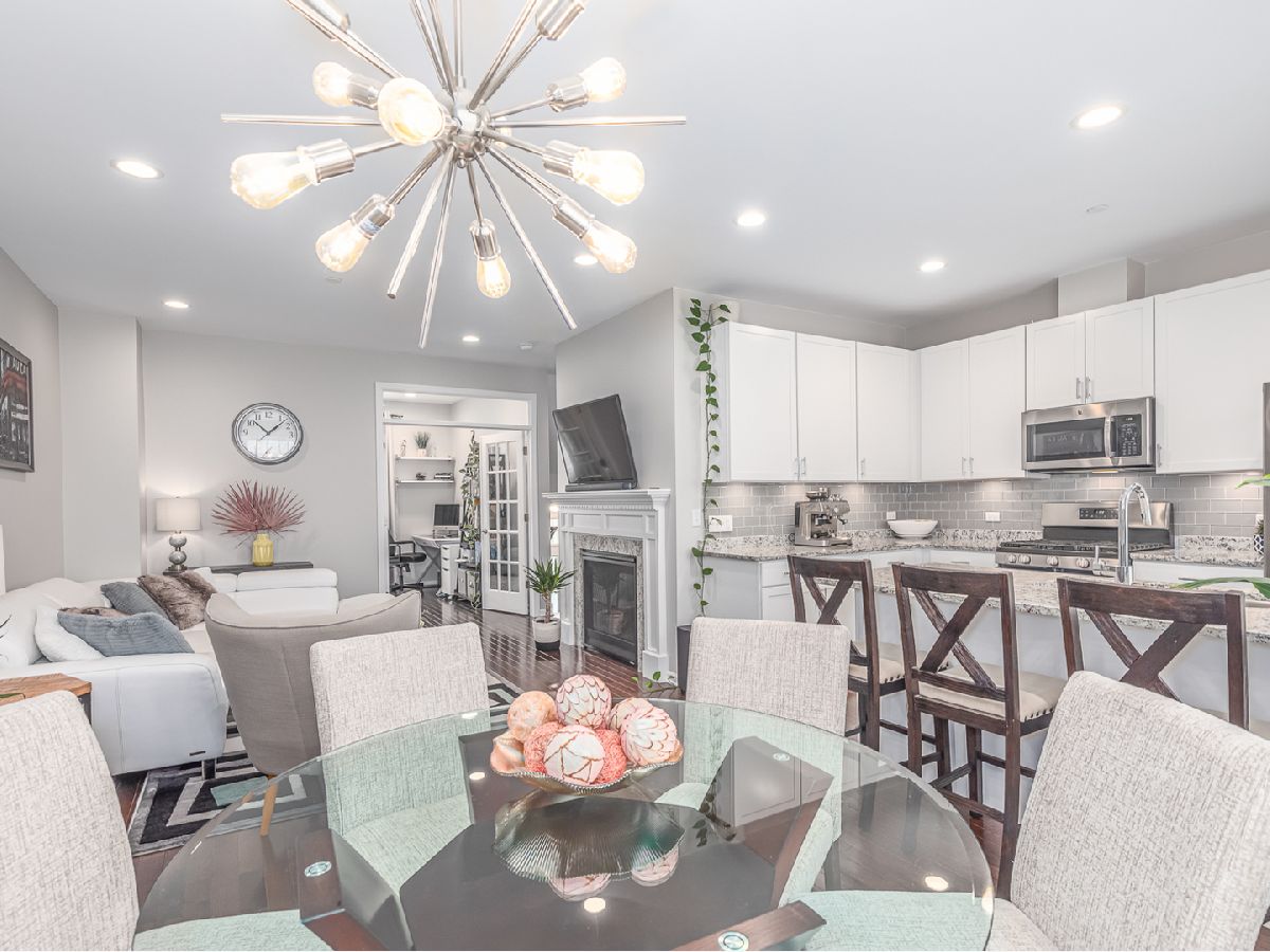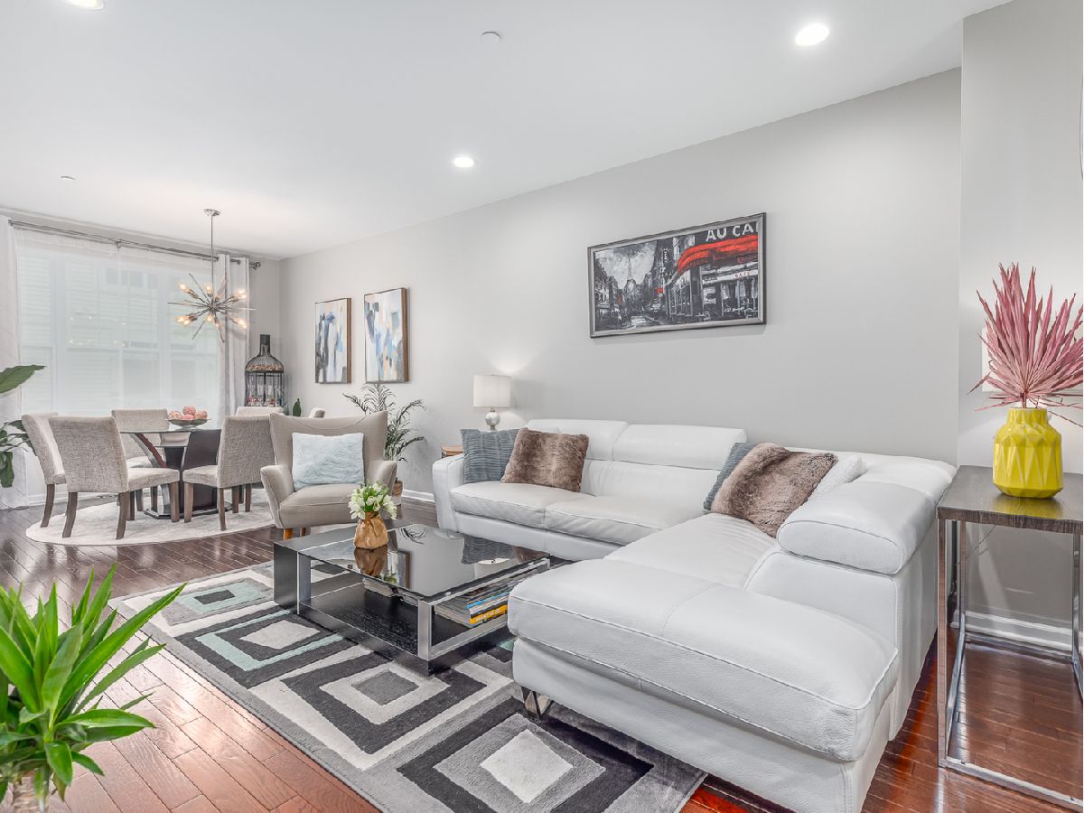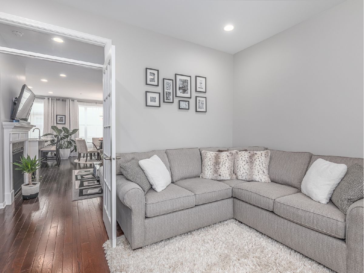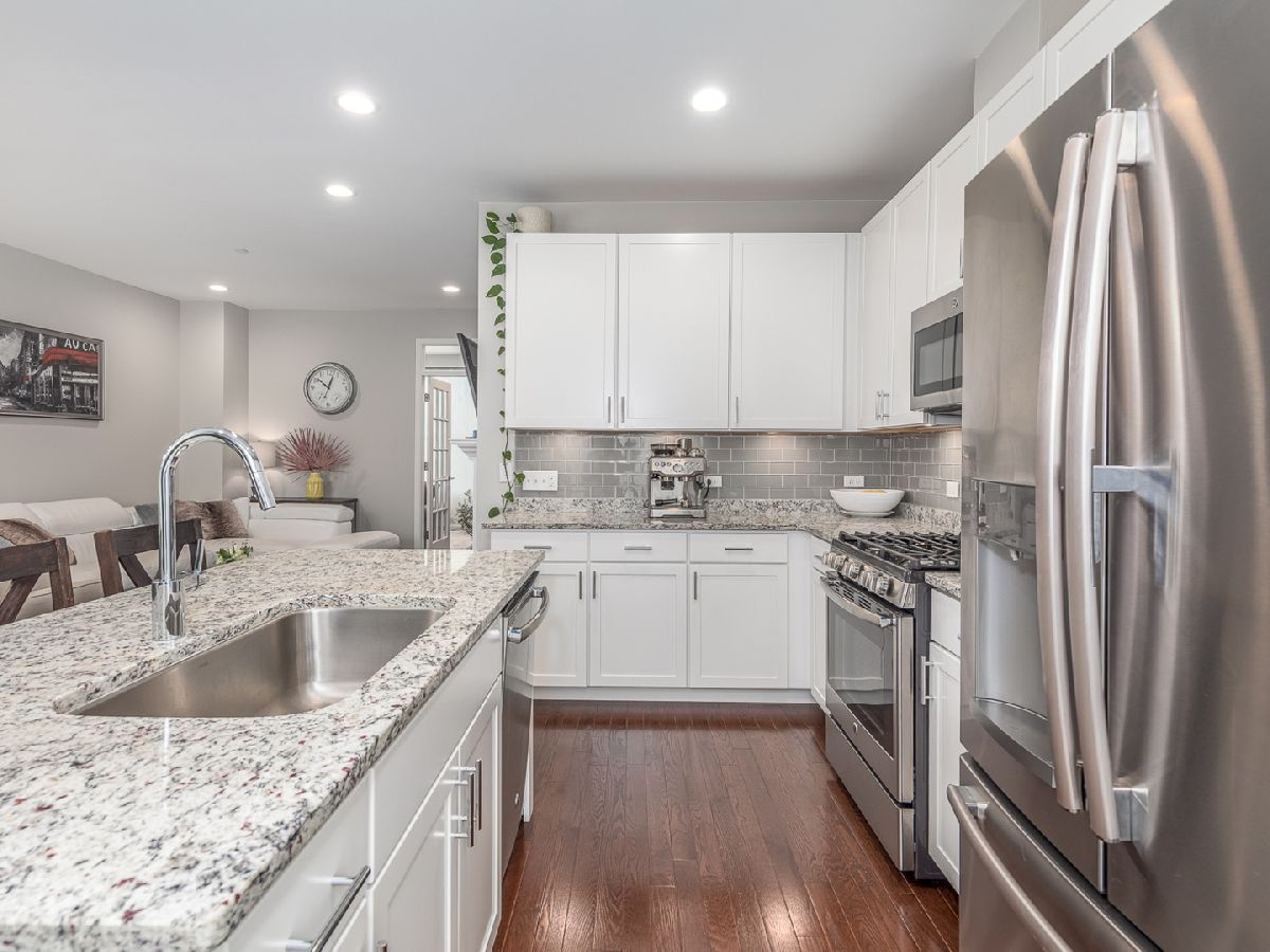 This incredible three-story Townhouse is better than NEW - Upgraded and customized by original owners with great design throughout. Welcoming two story foyer with stunning wood stairs leading up to the cozy Living room with fireplace, high ceilings and recessed lighting. Open concept kitchen features beautiful white 42" cabinets, stainless steel appliances, granite counters and entertaining island all open to dining room and sliding door access to extended balcony great for BBQ's. First floor also features updated 1/2 bathroom and hardwood floors thru-out the living room, dining room and first floor bedroom/office. Top floor busts two master bedroom suites, each with its own private full bath and convenient laundry closet which includes a top-of-the line washer/dryer. There are countless possibilities for your finished bonus room on the lower level. It can be used as a bedroom, family room, kids playroom, or an office! Two car oversized garage. The best part? You're within walking distance to the restaurants, shops, parks and so much more. Come tour today!