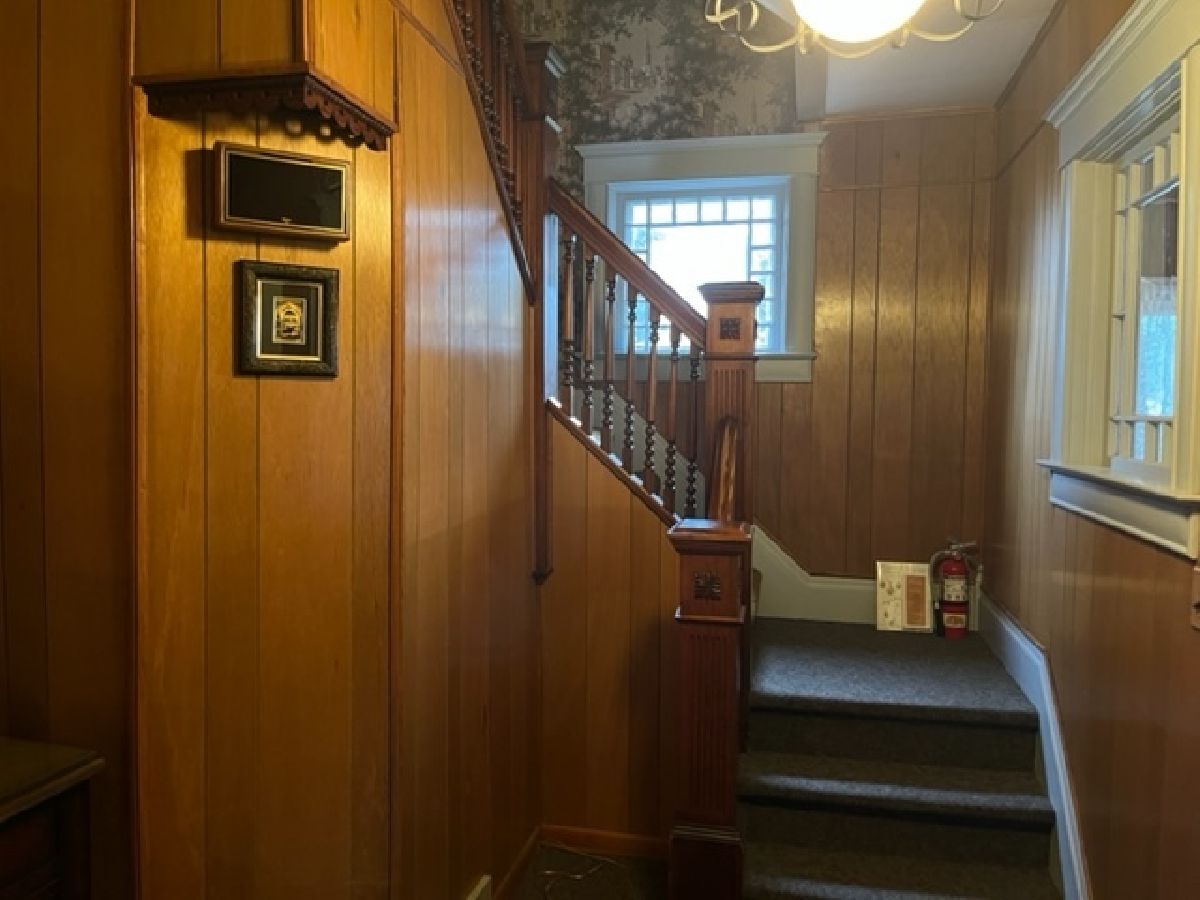 Great location for a business with living area upstairs. Former funeral home with full living quarters on large corner lot. Two car garage plus there is a one car attached garage. Could be made into a single family home or 2 apartments. Currently zoned commercial. Sold as-is