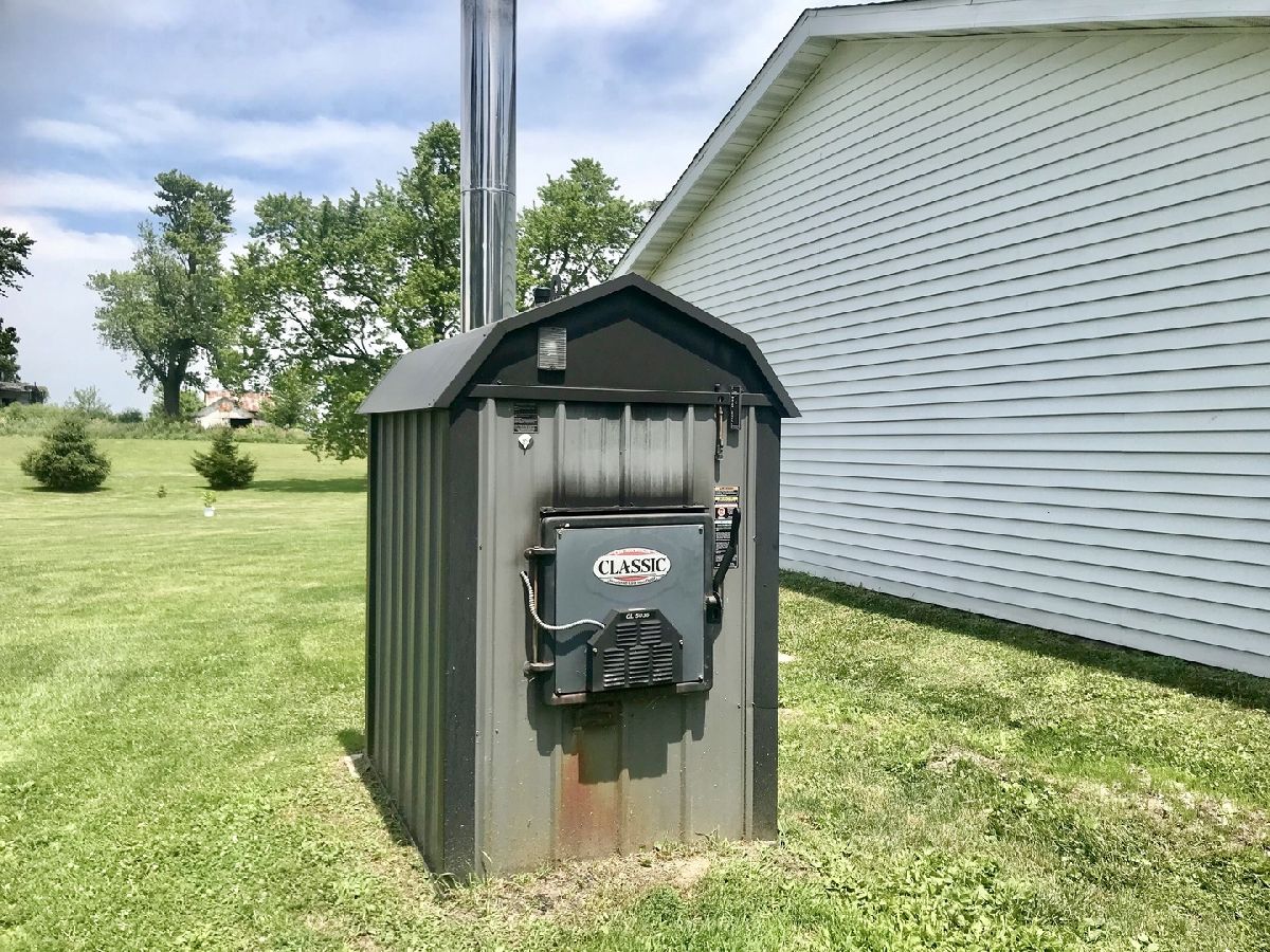 Nestled in the center of five spacious lots, this stunning home has the country setting you dreamt of with the convenience of town living. Built in 2009, the spacious 3 car 28' x 32' garage with in floor heat offers storage as well as workshop space and the additional 1.5 car garage adds to the benefits of this property. Another 3 bay outbuilding could provide many possibilities. Apple trees, hickory trees, blackberry bushes and evergreens galore adorn the well cared for landscaping. Watch your gas bill shrink to unheard of low levels by using the wood boiler which can heat the newer garage, entire home and hot water. Home has many updates including water heater in 2011, windows in 2012, ceiling fans in 2014, roof in 2009, wood boiler in 2009. 22' long enclosed porch is perfect for sitting and sipping your favorite beverage, living room with wood burning stove has plenty of space for entertaining and the 4 bedrooms and two full baths allow for room for family or guests.