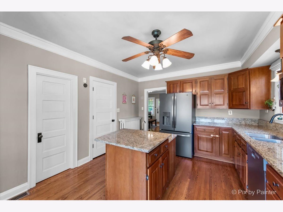 Charming ranch home with 2 bedrooms, 1 full and 2 half baths, full finished basement, 3-car garage and desirable D303 Schools! A lovely enclosed porch welcomes you. Step inside the home to abundant windows, a neutral paint palette and crown moulding and beautiful hardwood floors that flow throughout the home. Well-appointed kitchen offers ample cabinets and granite counters, center island with 2nd sink, stainless steel appliances, walk-in pantry and eat-in area with large windows. Master suite has a huge closet with built-in storage and an ensuite half bath. 2nd sizable bedroom, a full hall bath with shower over tub combo completes the main floor. The basement, finished in 2023, has a family room with exposed ceiling, laundry/utility room, and a powder room. Relax outdoors on the brick paver patio or in the lush greenspace of the fully fenced backyard. 2 garage buildings offer space for 3 cars or plenty of storage. Great location between Downtowns St Charles and Geneva for endless shopping and dining and nearby the beautiful Fox River.