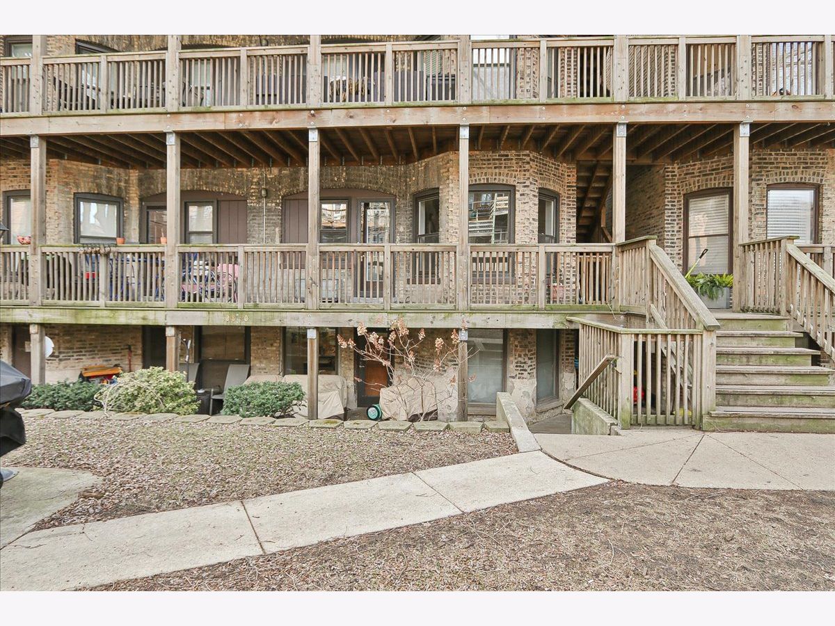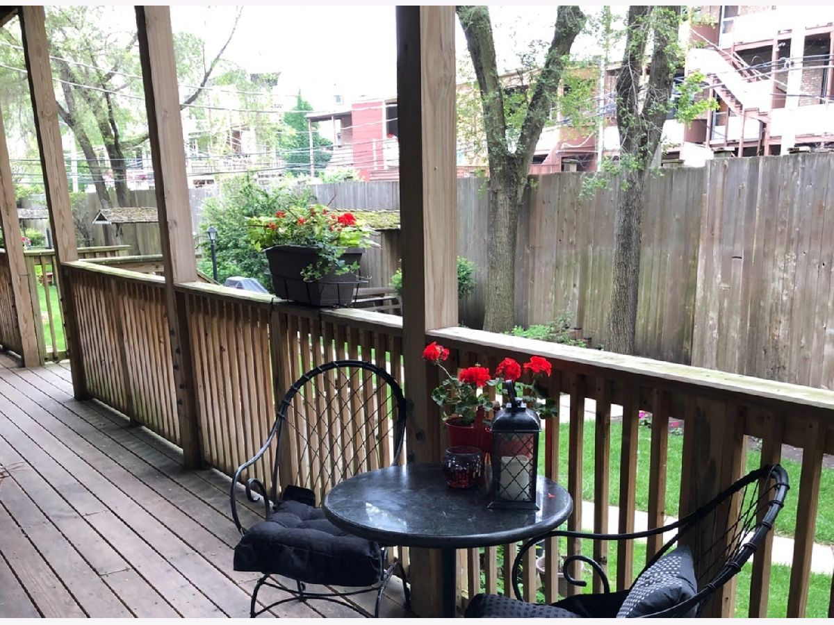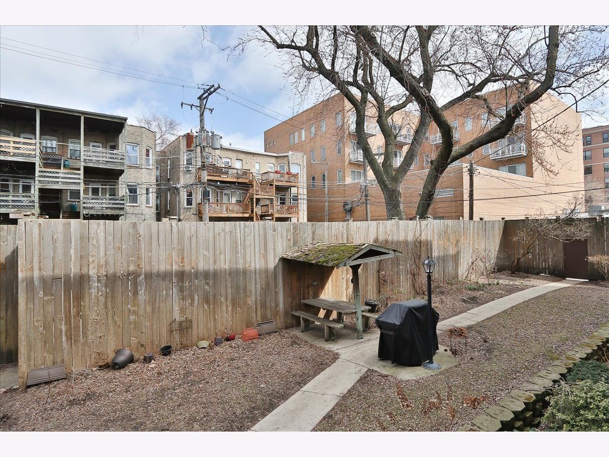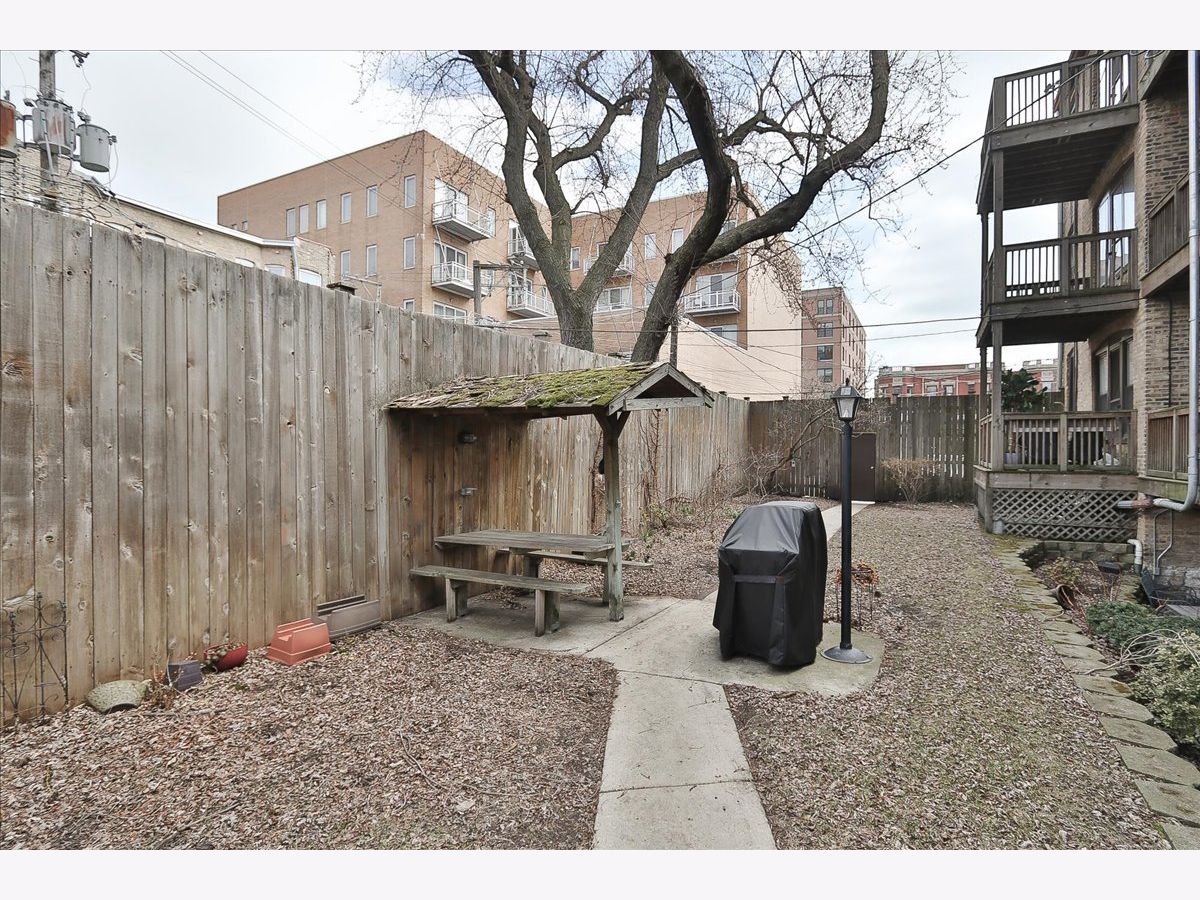 This condo is situated on a quiet tree lined street in Lakeview. You will love the light that streams into this lovely south facing condo. Once you enter the foyer you will be greeted by a formal living dining area. Enjoy the fresh air from Juliet balcony and in the winter enjoy your own wood burning fireplace with raised hearth. So cozy. This condo is located on a raised first floor. Alleviating too many steps and providing security at the same time. The updated kitchen features 42" timeless cherry cabinets, granite counters, stainless steel appliances, stainless sink, some glass fronts with lights, and under cabinet lighting. Breakfast bar and table space. The kitchen leads out to the large deck area. Fabulous for your own container garden and seating. Two nice sized bedrooms. The En-suite full bath was completely updated in 2024 with a new Blond vanity, subway tiles, niches and flooring. You will love the glass block window for natural light. Wait until you see the back yards and green space. Very unique, a rare city oasis. Fabulous new grill to enjoy for your year round grilling desires. Two laundry rooms to choose from. Windows were replaced. Freshly painted in Benjamin Moore London Fog and China White. To top it off a brand new furnace. This unit is ready to go. One designated parking spot included on East side of building. Back entrance to common area is a convenient way to access your unit. Steps to Wrigley, Gallagher Way, Lakefront, Southport Corridor, Public Transportation, Restaurants, Nightlife, shopping and parks. You can't miss! A fabulous walking neighborhood. Love where you live!