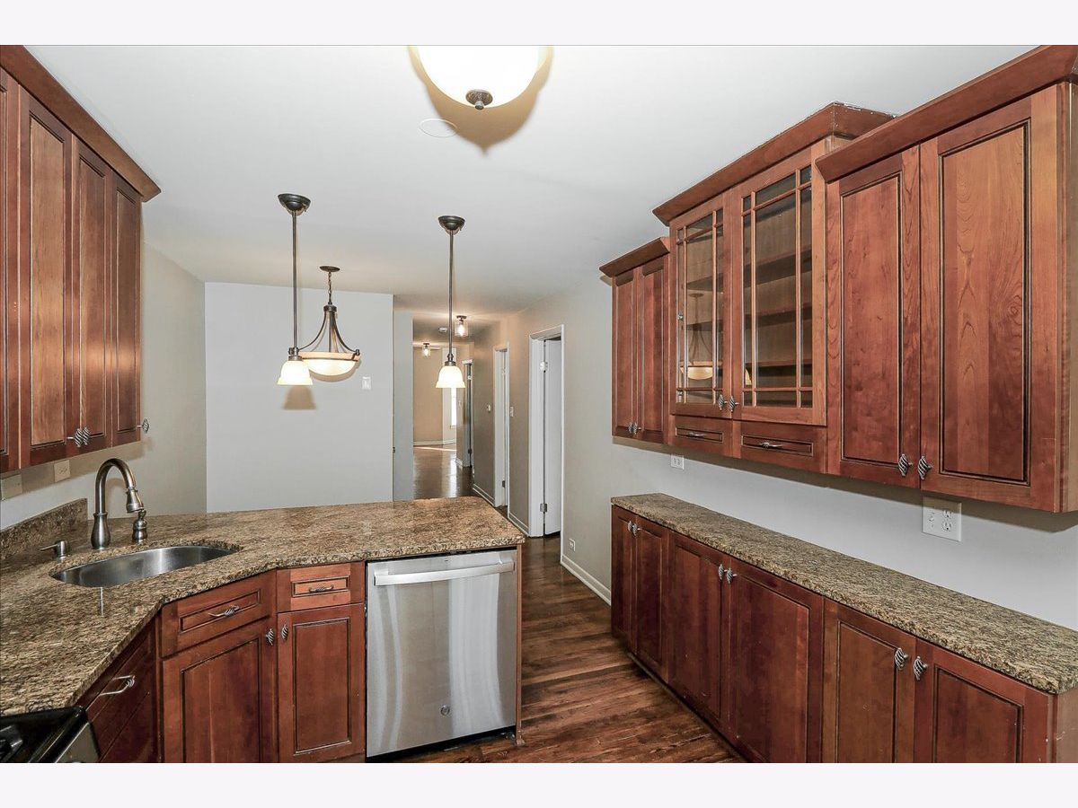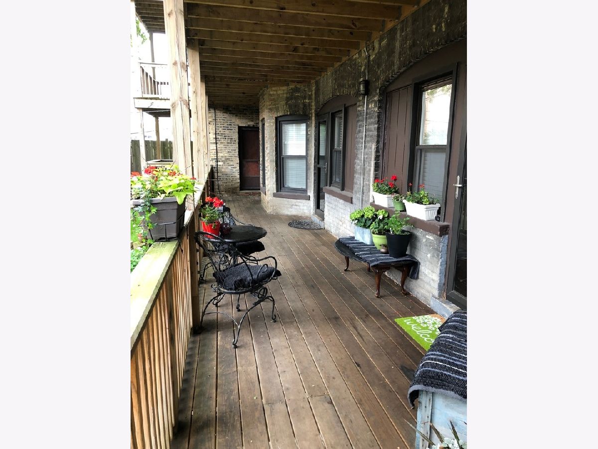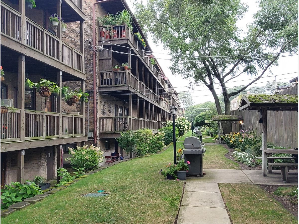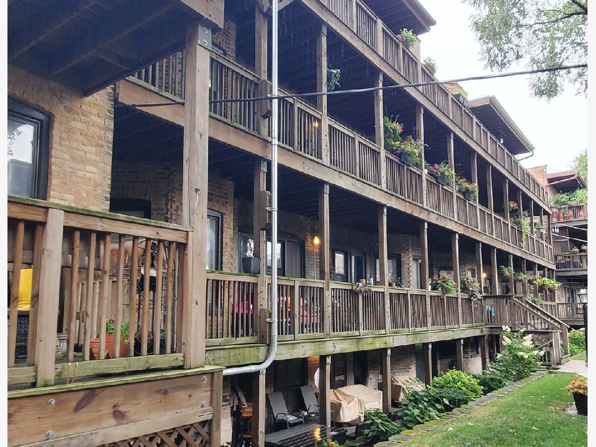This condo is situated on a quiet tree lined street in Lakeview. You will love the light that streams into this lovely south facing condo. Once you enter the foyer you will be greeted by a formal living dining area. Enjoy the fresh air from Juliet balcony and in the winter enjoy your own wood burning fireplace with raised hearth. So cozy. This condo is located on a raised first floor. Alleviating too many steps and providing security at the same time. The updated kitchen features 42" timeless cherry cabinets, granite counters, stainless steel appliances, stainless sink, some glass fronts with lights, and under cabinet lighting. Breakfast bar and table space. The kitchen leads out to the large deck area. Fabulous for your own container garden and seating. Two nice sized bedrooms. The En-suite full bath was completely updated in 2024 with a new Blond vanity, subway tiles, niches and flooring. You will love the glass block window for natural light. Wait until you see the back yards and green space. Very unique, a rare city oasis. Fabulous new grill to enjoy for your year round grilling desires. Two laundry rooms to choose from. Windows were replaced. Freshly painted in Benjamin Moore London Fog and China White. To top it off a brand new furnace. This unit is ready to go. One designated parking spot included on East side of building. Back entrance to common area is a convenient way to access your unit. Steps to Wrigley, Gallagher Way, Lakefront, Southport Corridor, Public Transportation, Restaurants, Nightlife, shopping and parks. You can't miss! A fabulous walking neighborhood. Love where you live!