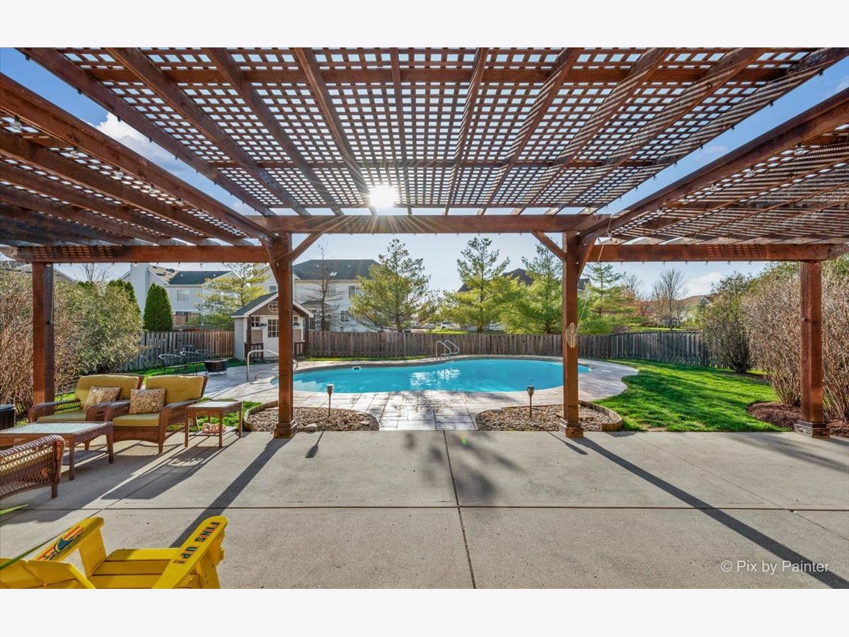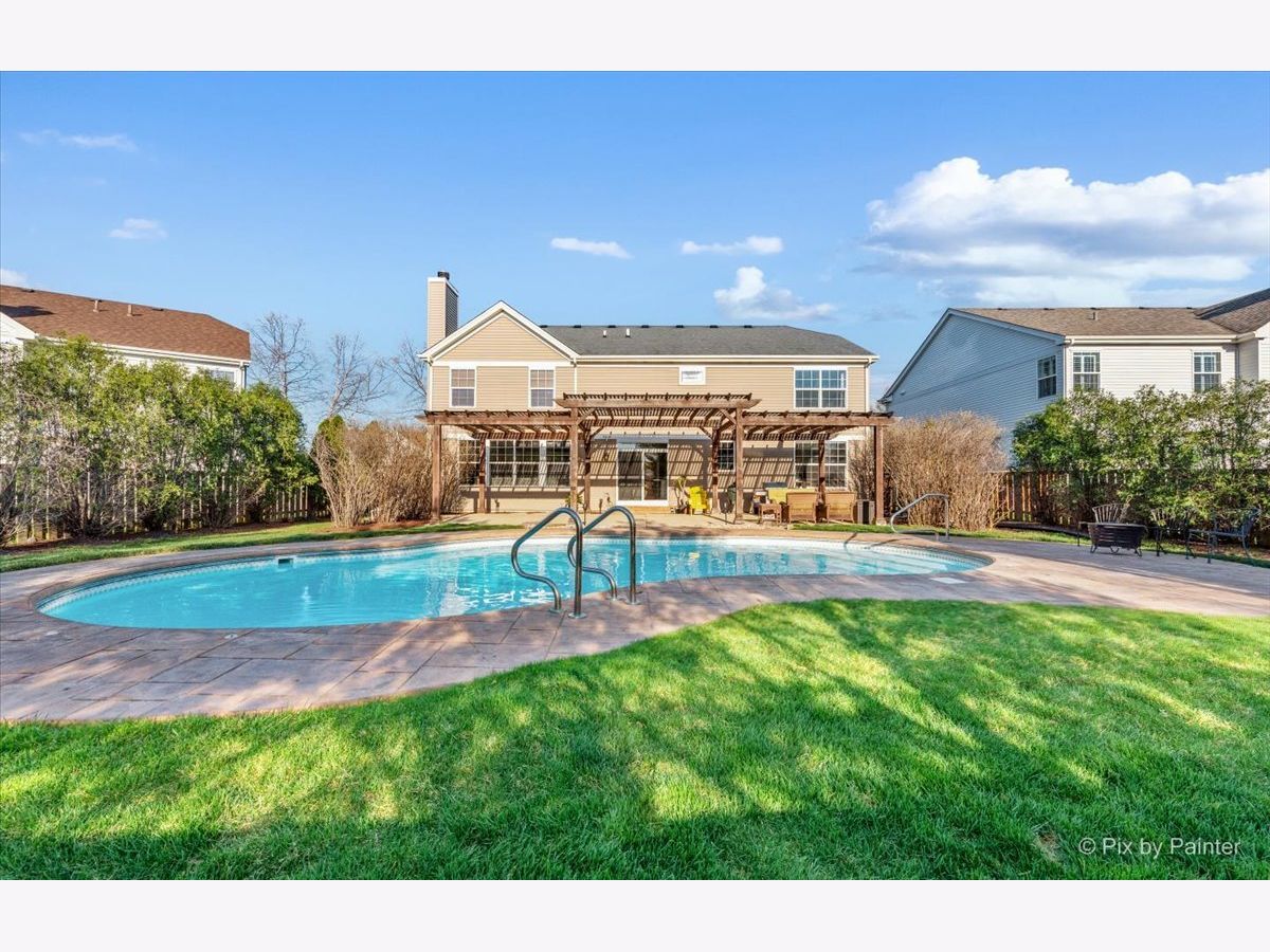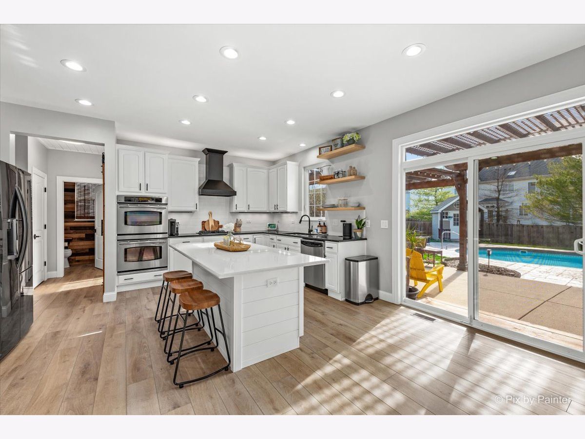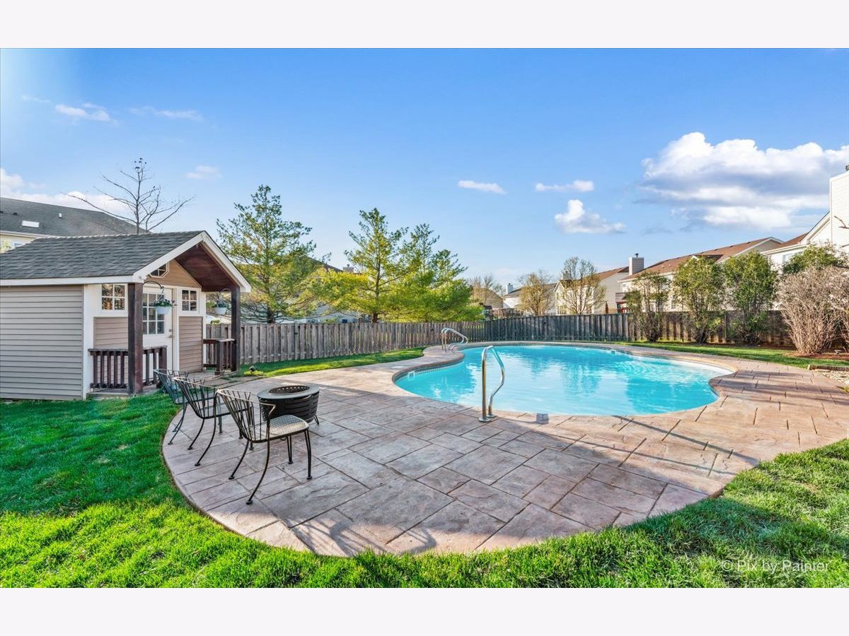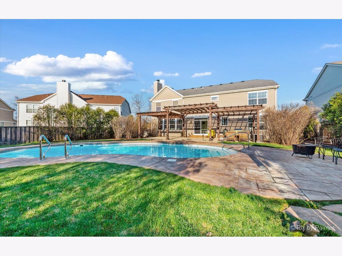 It's time to live your best life in this entertainers dream! Own a slice of paradise in the highly sought after community of Huntley. This entire home is gorgeously remodeled, with a back yard resort like no other! This home is turnkey & the current owners did not miss one detail! Upon entering you will be welcomed by an oversized front door & a grand two story entryway with the most stunning chandelier. Your eyes won't know which aesthetic detail to take in first, but I can promise you, it'll be the showstopper!! A beautiful custom (DUAL) staircase. You will be fascinated by the beautiful details beginning with board & batten trim, hardwood steps, modern wrought iron spindles while over looking the two story front entrance. The entire main level is light, bright and airy with so much natural light. Every inch has been freshly painted w/high quality Sherwin Williams neutral colors. Top of the line~ new wide plank flooring runs throughout the entire main level, upgraded 6" baseboards, brand new white 2 panel/solid wood interior doors throughout the entire home along with upgraded large casing & black matte hardware. You will love how the 2-story living room flows into the expansive dining area & is surrounded by a bay window, allowing the most beautiful natural light to shine through, impressive shiplap wall, tray ceiling, elegant light fixture that compliments the entry way chandelier, & large enough to accommodate all those holiday gatherings. The heart of the home will not only impress your guests, but aspiring chefs & entertainers alike will love all of the counter space, generous amount of upgraded 42" white cabinets with crown molding with custom lighting & Modern solid white oak open shelving. Take in the breathtaking views of the backyard oasis while washing dishes. Another showstopper is the stunning custom black hood range, which compliments the brand new backsplash, SS appliances/double oven, gas cooktop, oversized custom center island/quartz countertop with plenty of seating~ LARGE Walk in pantry with custom door & wood shelving, microwave, built in wine fridge. This large open kitchen space flows directly into the family room. Custom stone floor-ceiling fireplace, w/white mantel. Get cozy & snuggle up on the couch next to a real wood burning (also gas) fireplace on those chilly nights. Completing the first floor is an office/den space with a custom feature wall and directly next to the fully remodeled half bath on the main level. From the kitchen, large sliding glass doors lead you directly out to your Staycation's dream! Custom in-ground saltwater pool entirely flanked by stamped concrete patio! Adorable custom shed to hold all the pool toys. Custom Pergola runs entire rear length of home with patio large enough to hold multiple patio sets. Extensive professional landscaping, LARGE Fenced in yard, walk-way to front gate & side entrance into the garage of every mans dream! Commercial grade epoxy flooring, painted, 3 cars! Let's take the back staircase off the kitchen to the 2nd floor. You'll first be impressed by the way your feet feel on the new premium quality plush carpeting & instantly will admire all of the bright natural light, along with the stunning upgraded decor light fixtures throughout each room/hallway/bathroom. Crown molding in every bedroom. Cathedral master suite has a large sitting room, his & her walk-in closets, deluxe bath with dual vanities, soak/jacuzzi tub & separate shower. 3 overly sized bedrooms (2)with walk in closets, extremely large 2nd floor laundry room fully remodeled with custom cabinetry, vanity/sink, shiplap wall, wood look/porcelain plank tile, new top load washer/dryer. 2nd full bath soaking tub/shower, custom vanity with built in cabinetry, dual sinks, upgraded sink fixtures, new toilet, porcelain wood look plank tile, custom shelving, shiplap wall with dual upgraded mirrors & lighting. Full finished basement! This house has it ALL~HURRY THIS HOME WILL NOT LAST~ Agent Owned