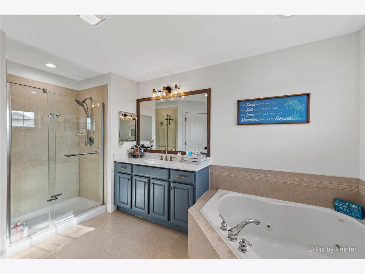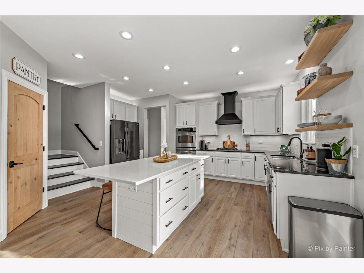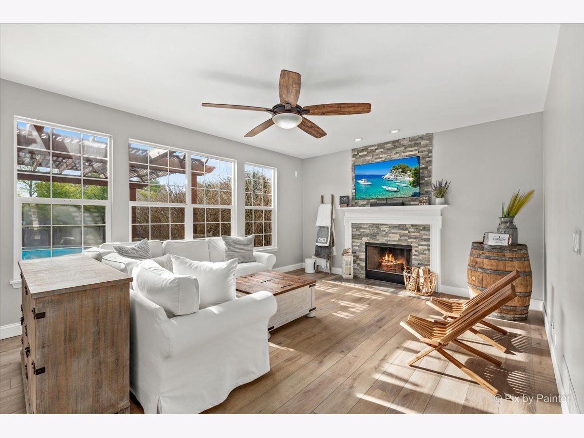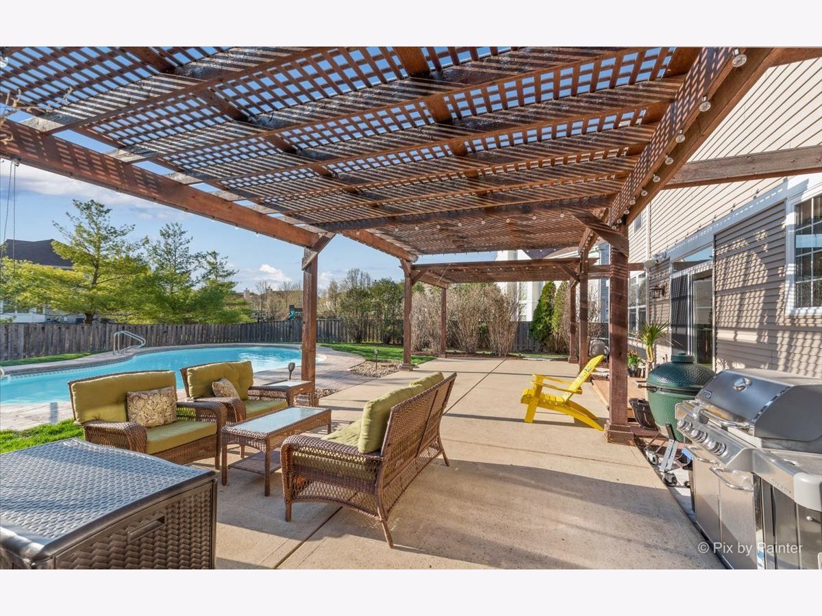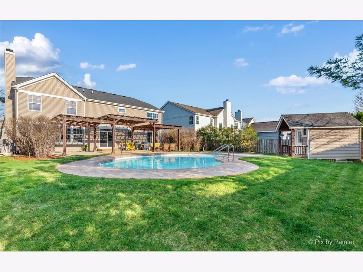 It's time to live your best life in this entertainers dream! Own a slice of paradise in the highly sought after community of Huntley. This entire home is gorgeously remodeled, with a back yard resort like no other! This home is turnkey & the current owners did not miss one detail! Upon entering you will be welcomed by an oversized front door & a grand two story entryway with the most stunning chandelier. Your eyes won't know which aesthetic detail to take in first, but I can promise you, it'll be the showstopper!! A beautiful custom (DUAL) staircase. You will be fascinated by the beautiful details beginning with board & batten trim, hardwood steps, modern wrought iron spindles while over looking the two story front entrance. The entire main level is light, bright and airy with so much natural light. Every inch has been freshly painted w/high quality Sherwin Williams neutral colors. Top of the line~ new wide plank flooring runs throughout the entire main level, upgraded 6" baseboards, brand new white 2 panel/solid wood interior doors throughout the entire home along with upgraded large casing & black matte hardware. You will love how the 2-story living room flows into the expansive dining area & is surrounded by a bay window, allowing the most beautiful natural light to shine through, impressive shiplap wall, tray ceiling, elegant light fixture that compliments the entry way chandelier, & large enough to accommodate all those holiday gatherings. The heart of the home will not only impress your guests, but aspiring chefs & entertainers alike will love all of the counter space, generous amount of upgraded 42" white cabinets with crown molding with custom lighting & Modern solid white oak open shelving. Take in the breathtaking views of the backyard oasis while washing dishes. Another showstopper is the stunning custom black hood range, which compliments the brand new backsplash, SS appliances/double oven, gas cooktop, oversized custom center island/quartz countertop with plenty of seating~ LARGE Walk in pantry with custom door & wood shelving, microwave, built in wine fridge. This large open kitchen space flows directly into the family room. Custom stone floor-ceiling fireplace, w/white mantel. Get cozy & snuggle up on the couch next to a real wood burning (also gas) fireplace on those chilly nights. Completing the first floor is an office/den space with a custom feature wall and directly next to the fully remodeled half bath on the main level. From the kitchen, large sliding glass doors lead you directly out to your Staycation's dream! Custom in-ground saltwater pool entirely flanked by stamped concrete patio! Adorable custom shed to hold all the pool toys. Custom Pergola runs entire rear length of home with patio large enough to hold multiple patio sets. Extensive professional landscaping, LARGE Fenced in yard, walk-way to front gate & side entrance into the garage of every mans dream! Commercial grade epoxy flooring, painted, 3 cars! Let's take the back staircase off the kitchen to the 2nd floor. You'll first be impressed by the way your feet feel on the new premium quality plush carpeting & instantly will admire all of the bright natural light, along with the stunning upgraded decor light fixtures throughout each room/hallway/bathroom. Crown molding in every bedroom. Cathedral master suite has a large sitting room, his & her walk-in closets, deluxe bath with dual vanities, soak/jacuzzi tub & separate shower. 3 overly sized bedrooms (2)with walk in closets, extremely large 2nd floor laundry room fully remodeled with custom cabinetry, vanity/sink, shiplap wall, wood look/porcelain plank tile, new top load washer/dryer. 2nd full bath soaking tub/shower, custom vanity with built in cabinetry, dual sinks, upgraded sink fixtures, new toilet, porcelain wood look plank tile, custom shelving, shiplap wall with dual upgraded mirrors & lighting. Full finished basement! This house has it ALL~HURRY THIS HOME WILL NOT LAST~ Agent Owned
