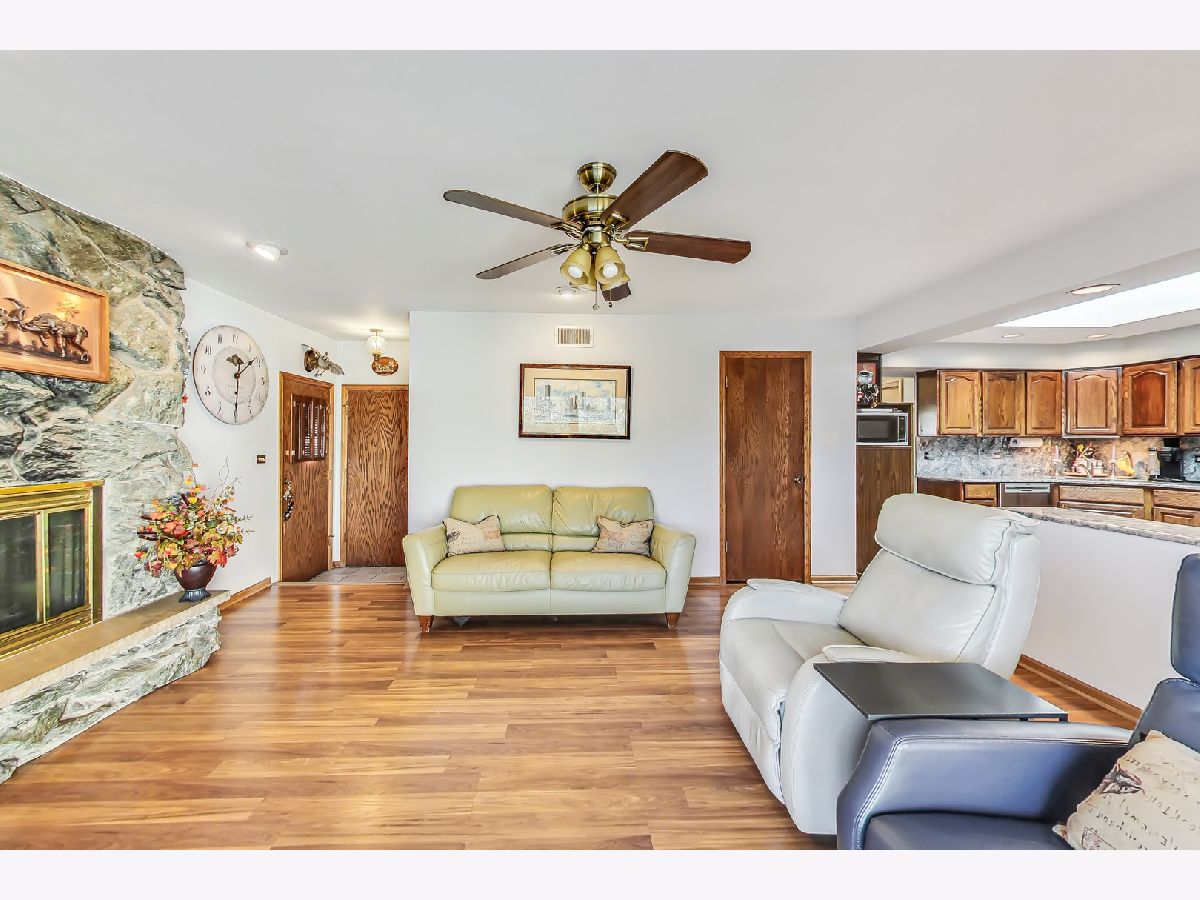 Don't miss the opportunity to explore this generously proportioned ranch-style home nestled in a sought-after neighborhood. This residence boasts three generously-sized bedrooms, including a primary suite with its own private bathroom, along with two additional full bathrooms. You'll find gleaming hardwood floors that extend throughout the living room, dining room, and all bedrooms. The open-concept kitchen, perfect for casual dining, offers a seamless connection to the inviting family room, complete with a cozy fireplace and sliding glass doors leading to a charming brick paver patio. A fully finished basement provides ample space for various needs and storage requirements. You'll also benefit from a convenient two-car attached garage. The property features a beautifully manicured lawn both in the front and rear. Don't delay; schedule your viewing today and discover the possibilities of this wonderful home! Windows 2018, Roof 2010, A/C 2018, Furnace 2015, Tankless Water Heater 2010.