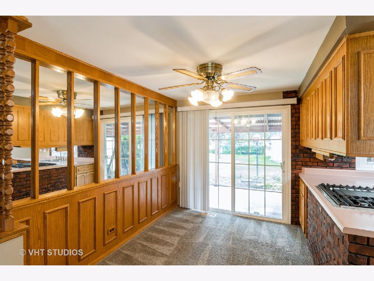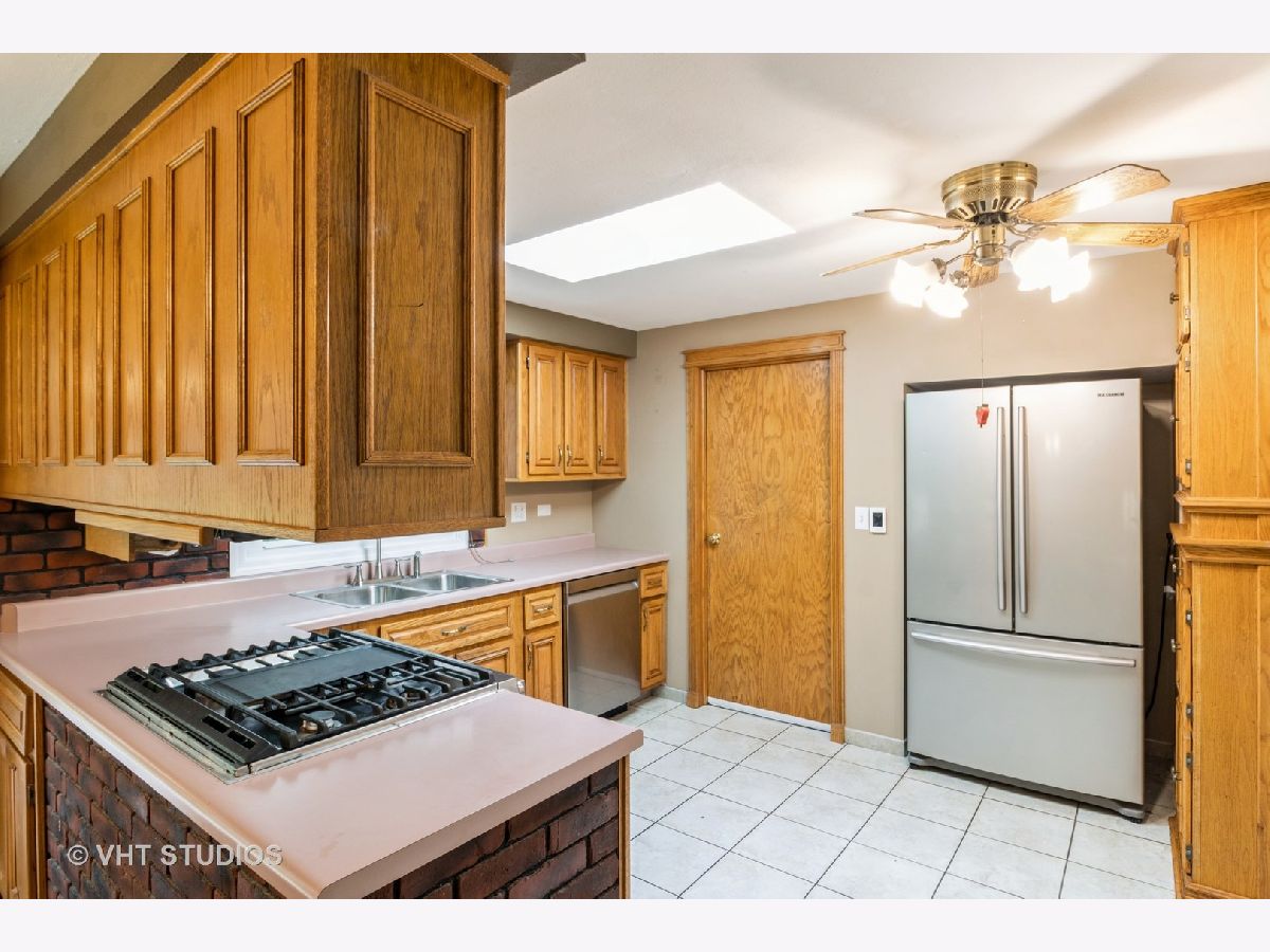 Popular split level floorplan with both a 1 car attached and 2 car detached garage! The original owner has added custom wood touches such as oak built-ins and doors. There is a skylight in the kitchen and living room. The kitchen has heated floors and stainless steel appliances. Walkout to yard from lower level family room. Covered patio. Hardwood floors under carpet in bedrooms. Windows have been replaced. Furnace approx. 6 yrs, Roof approx. 10 yrs. This home is conveniently located close to restaurants and park district waterpark. A well maintained home but Owner prefers to sell home as is.