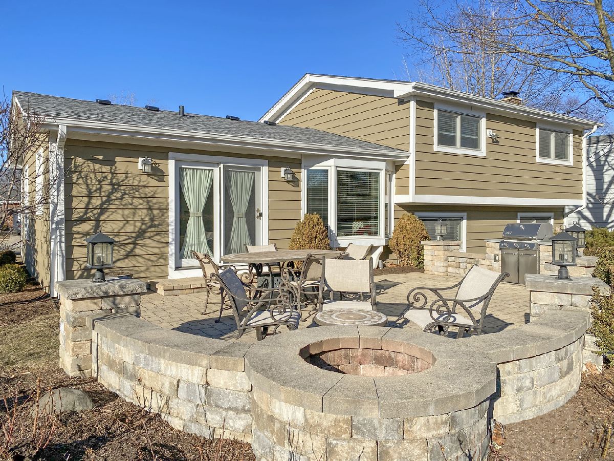 Move right in to this meticulously maintained tri-level home in a delightful neighborhood. Pristine oak hardwood flooring, ornate crown molding, and neutral colored walls provide a balanced, sophisticated palette throughout. An oversized picture window accentuates the sun-filled formal living room. The dining area is accompanied by a beautiful bay window, and flows seamlessly into the kitchen, creating a perfect entertaining space. The updated kitchen comes equipped with an abundance of handmade oak cabinetry and cream-colored Corian countertops. The second level houses three bedrooms, all with ample space to support a full suite of furniture. The capacious master sports two full-sized closets and easily fits a king sized bed. The upstairs bathroom has been recently remodeled with fresh tiling and a comfort-height dual vanity. On the lower level, an expansive family room, featuring a brick-faced fireplace, delivers a cozy yet spacious atmosphere. Adjoining this room is a second full bathroom with a newly installed vanity and walk-in shower. A fourth bedroom on the lower level could be used as an ideal home office. Step out back and you'll find a flawlessly designed custom brick patio. A built-in grill and fire pit are connected to gas lines for convenient use. A stunning row of arborvitaes form a natural privacy barrier and creates a truly secluded sanctuary. Situated in award winning school districts with a choice between Libertyville or Vernon Hills High School. Surrounded by parks, shopping locations, and exquisite dining experiences. Come see for yourself why many residents call this the perfect place to live.