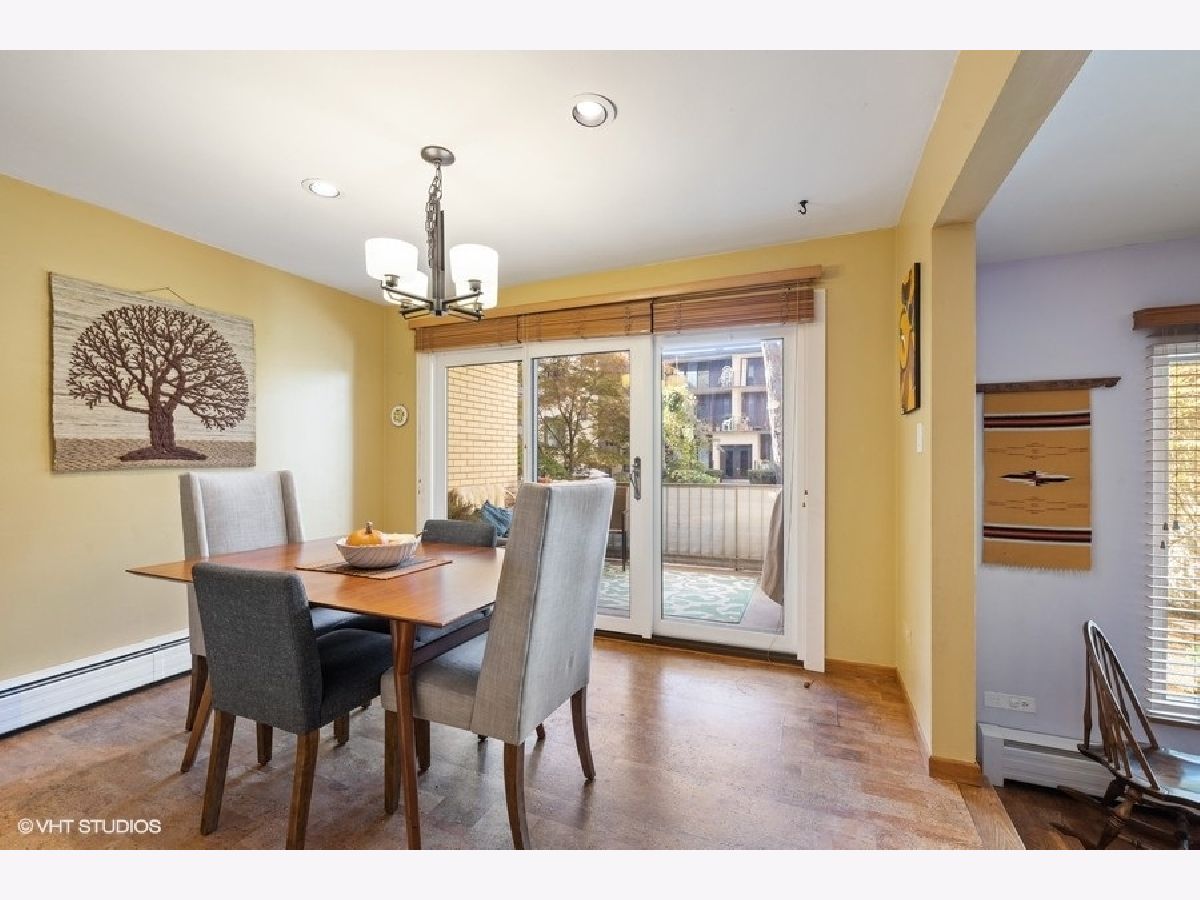 This gorgeous mid-century modern condo is located in the heart of beautiful downtown Oak Park. Clean lines, grand living space and bright windows grace this space. The long gallery foyer greats you and flows into the front sunken living room large enough for multiple conversation areas. The formal dining room is spectacular with its whole wall of window/sliding glass door to the private balcony. The newer cook's kitchen can handle your finest cuisine with stainless appliances and custom cabinetry. This unit has not just the full main bath, but it also has a half bath for guests. Two large bedrooms complete this amazing home and do not miss the in-unit washer and dryer! This condo comes with one exterior parking spot and a storage closet. Walk to all that is awesome about Oak Park... Green and Blue Lines, Metra, shops, fantastic dining, schools, parks and so much more!